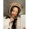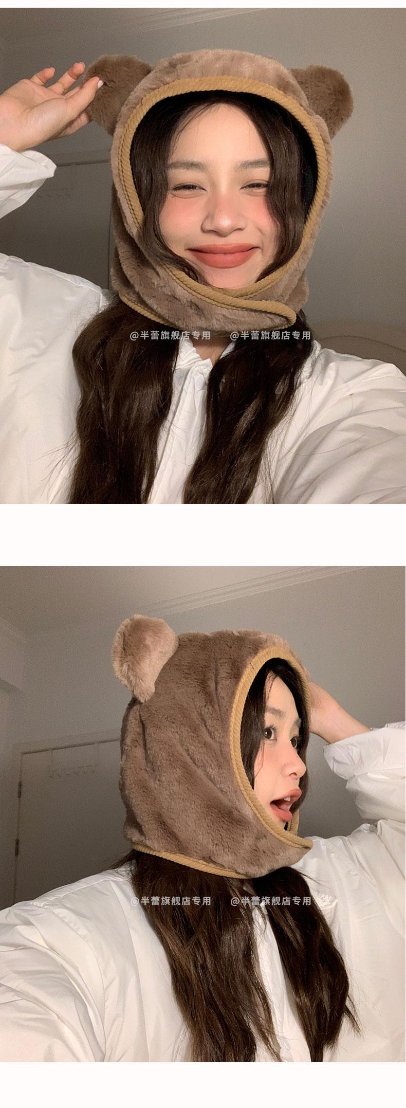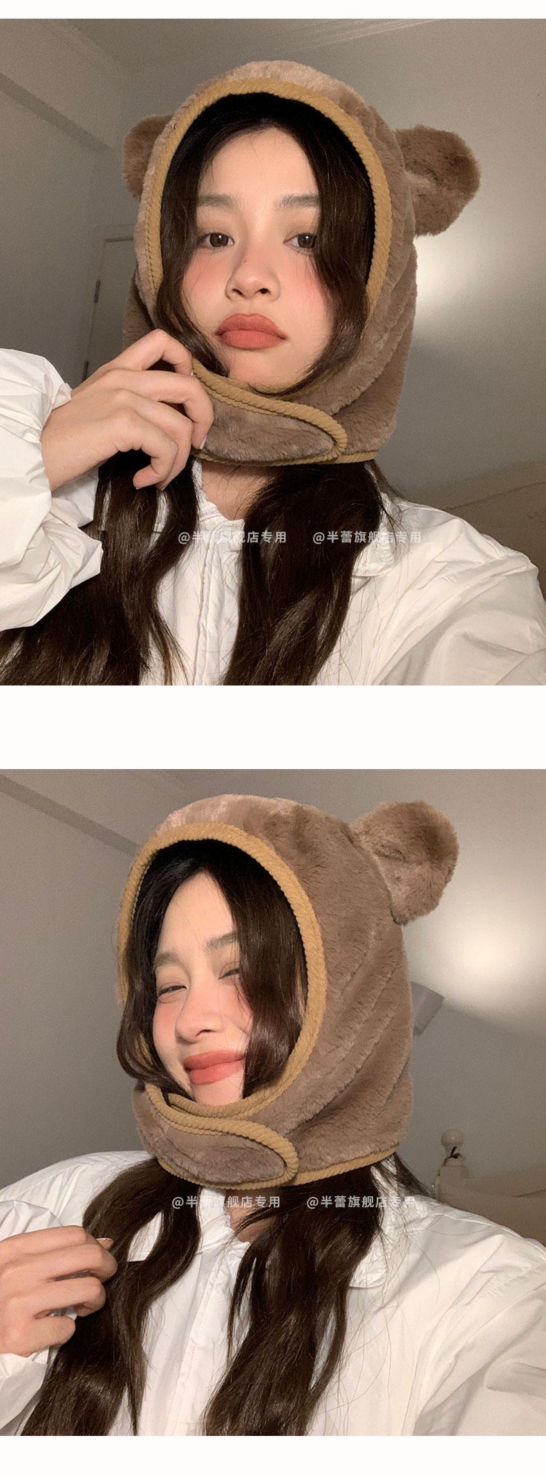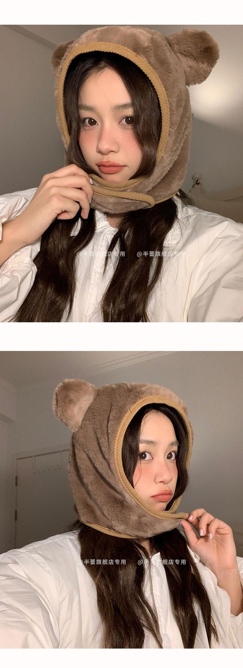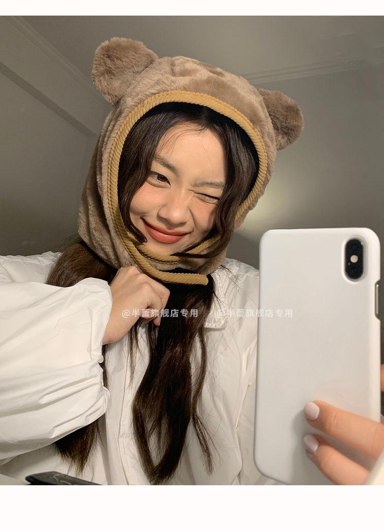 Sombrero pullover con orejas de oso 2023 para mujer, gorro de esquí de invierno, cálido, protección para las orejas, lindo dibujo animado de felpa, sombrero Lei Feng