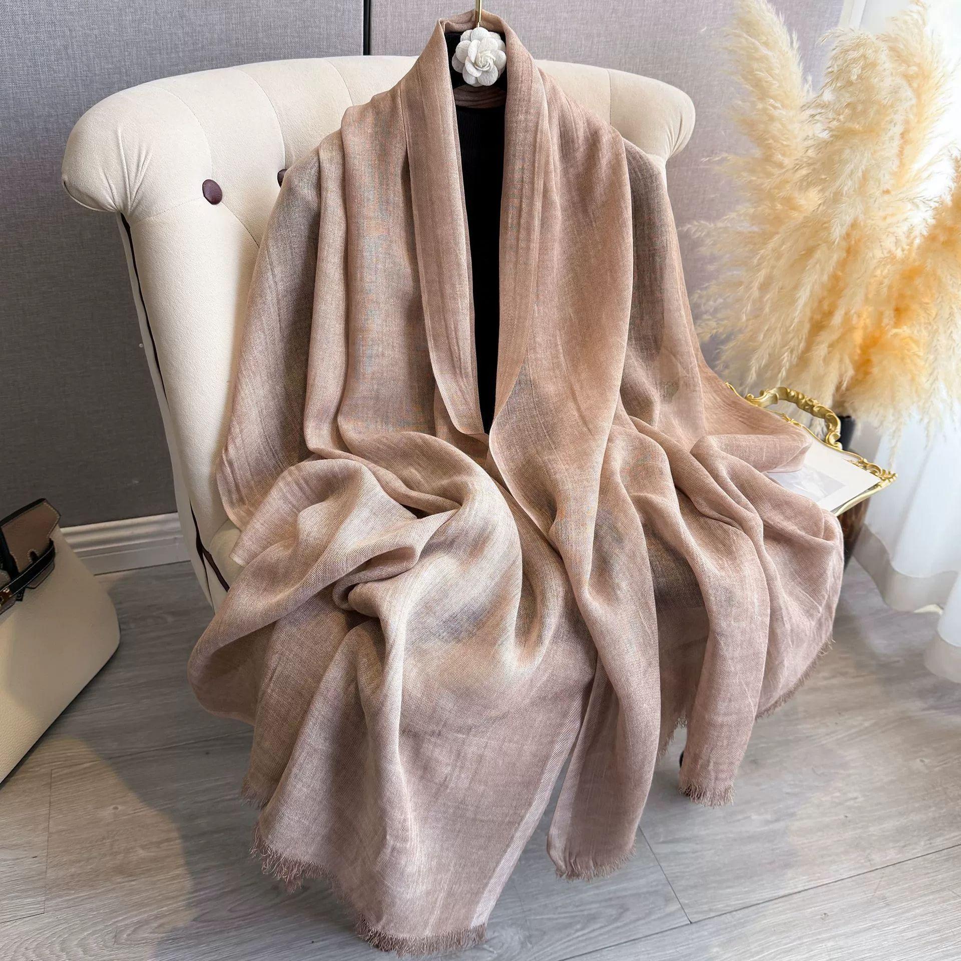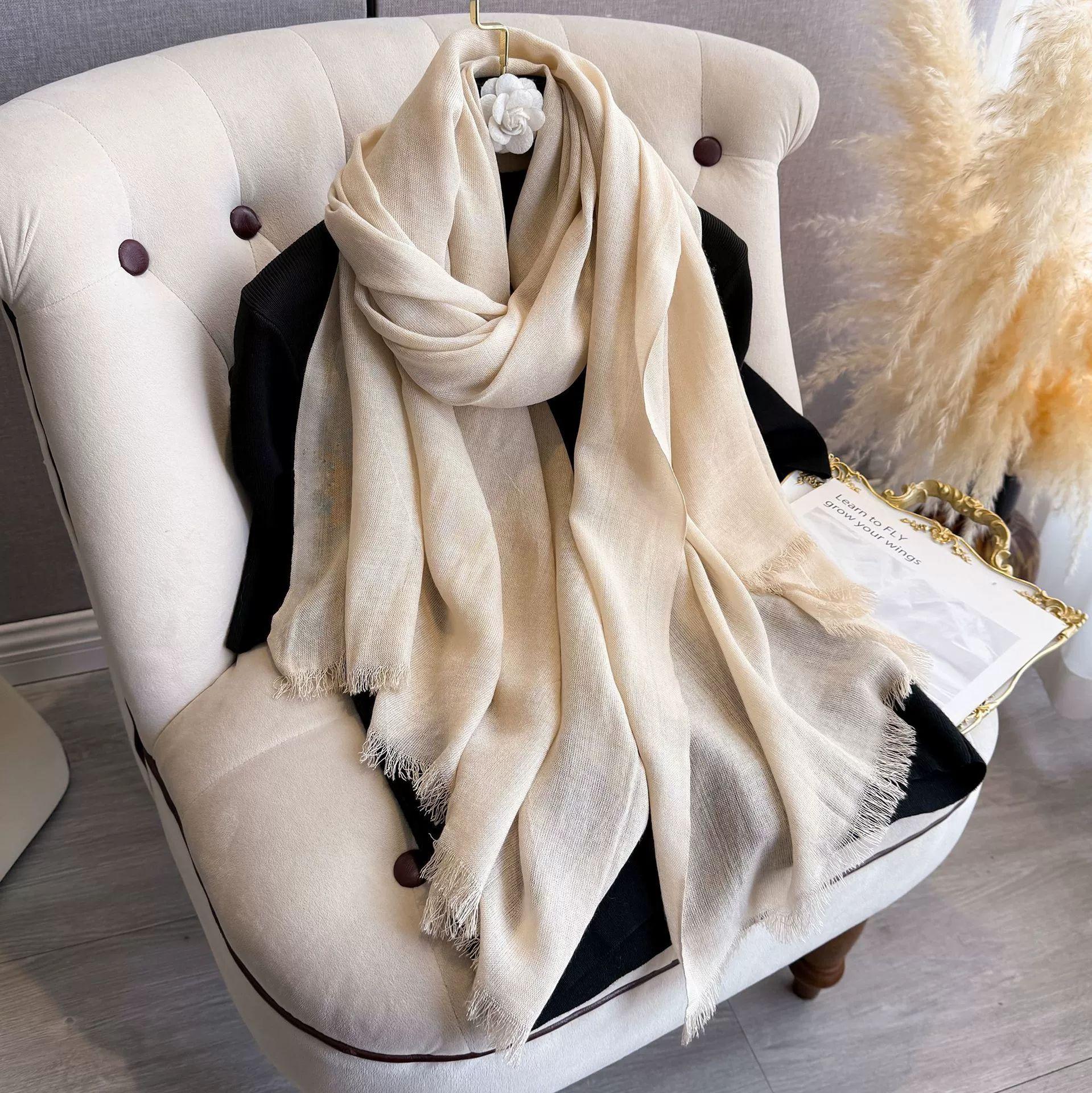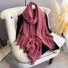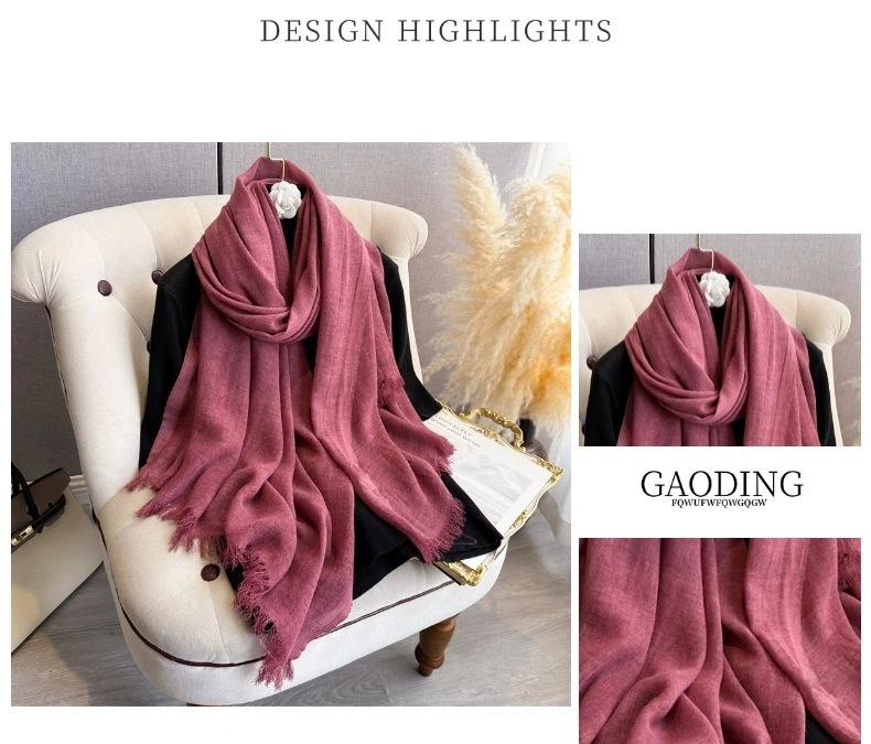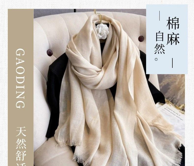 Bufanda de algodón y lino estilo coreano para mujer, chal largo de color liso, combinable con todo, informal, artística y fina, para primavera y verano.
