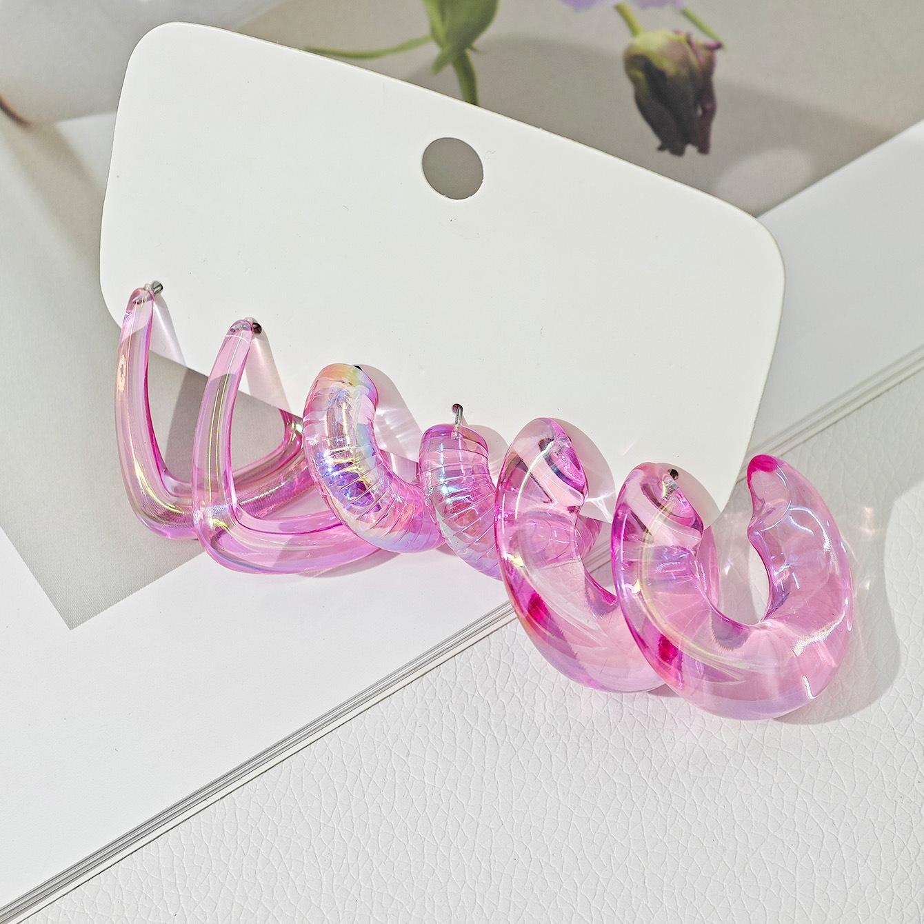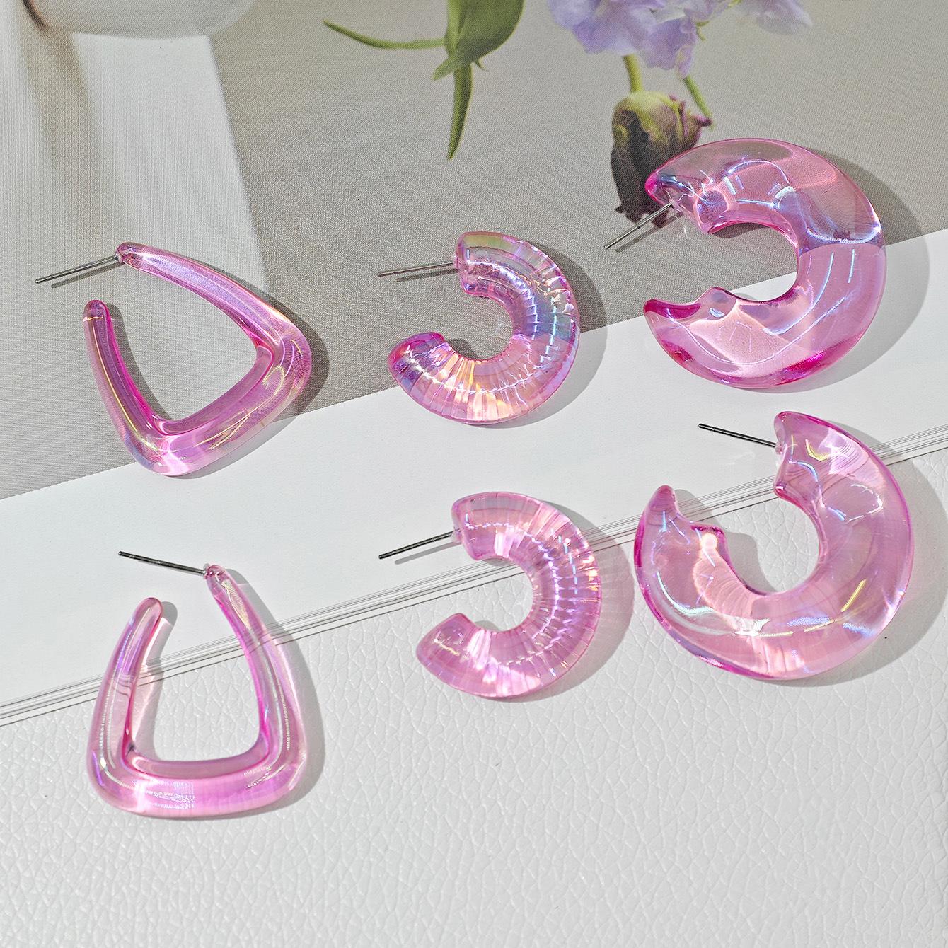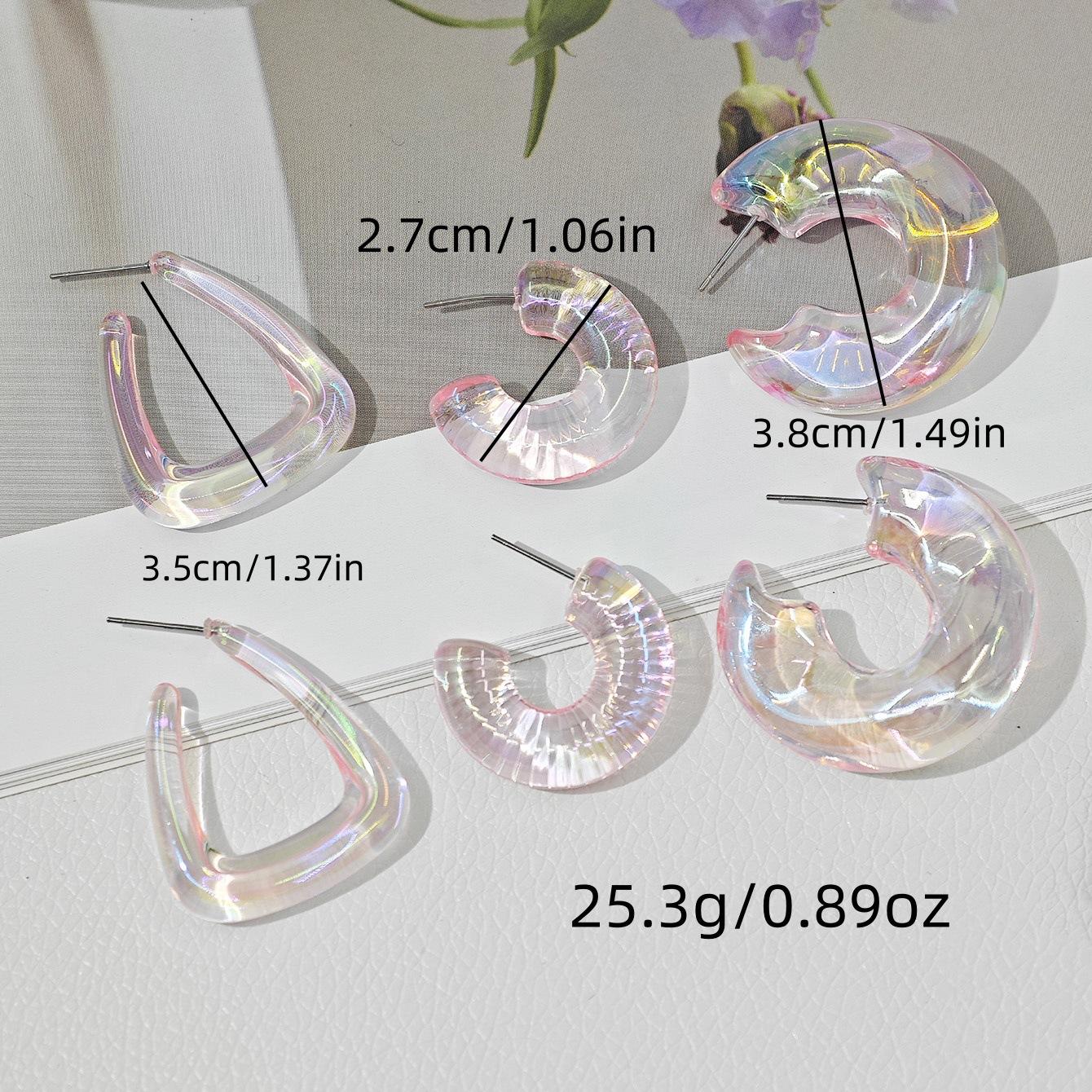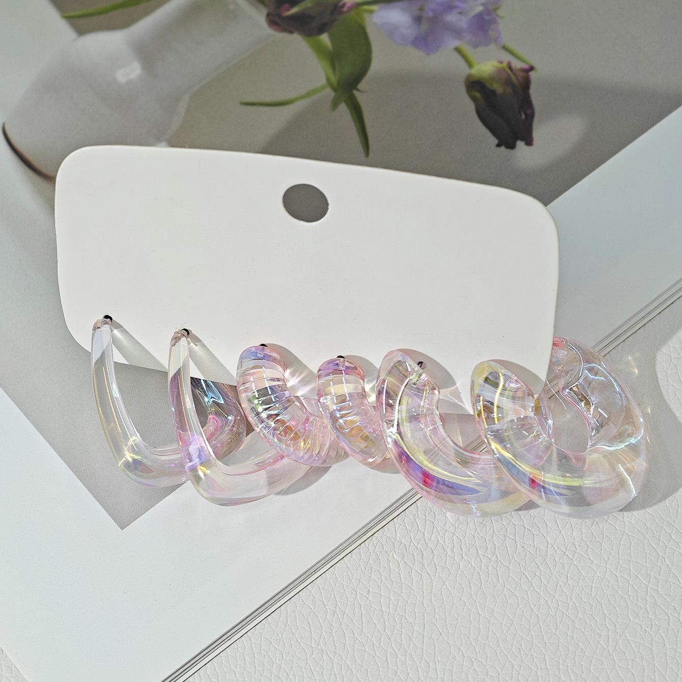 Arete Europeo y Americano Acrílico Color Mágico Transparente Tipo C Distintivo para la Oreja Primavera Temprana Círculo para Mujer Moda Casual Sencillo Arete para la Oreja