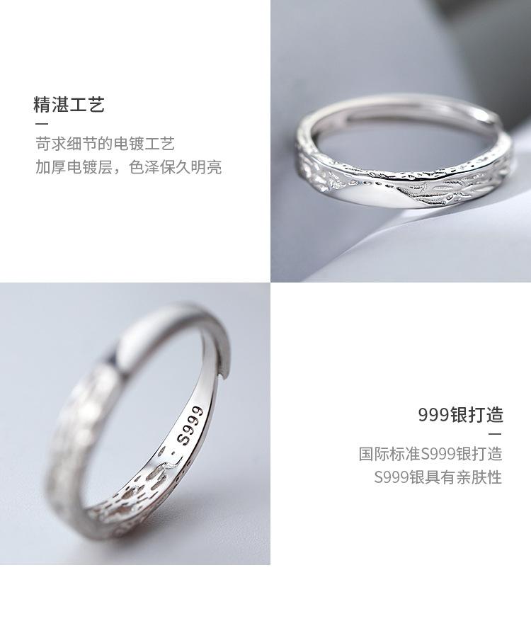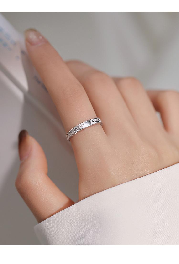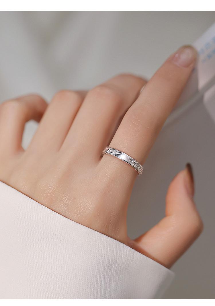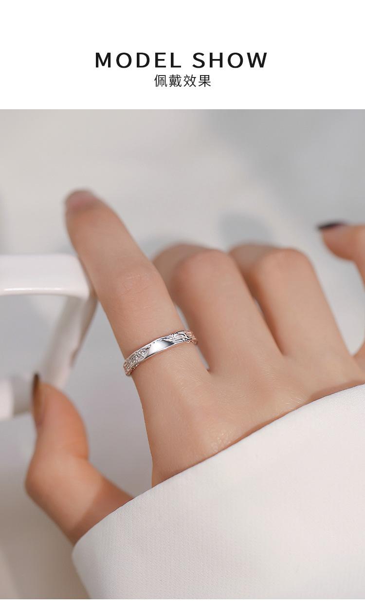 Anillo de plata de ley 999 con textura de pie, anillo abierto de lujo ligero para niñas, diseño de nicho, anillo de dedo avanzado, joyería