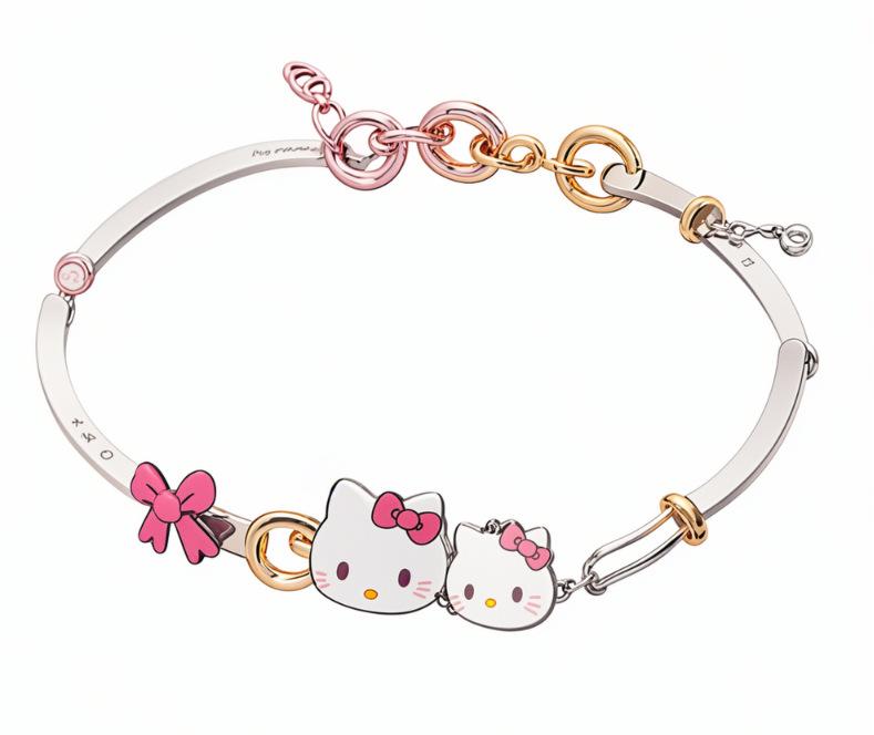 Pulsera de Hello Kitty de Sanrio, dibujos animados japoneses transfronterizos, aleación de zinc, con gotas de aceite, joyería de preventa