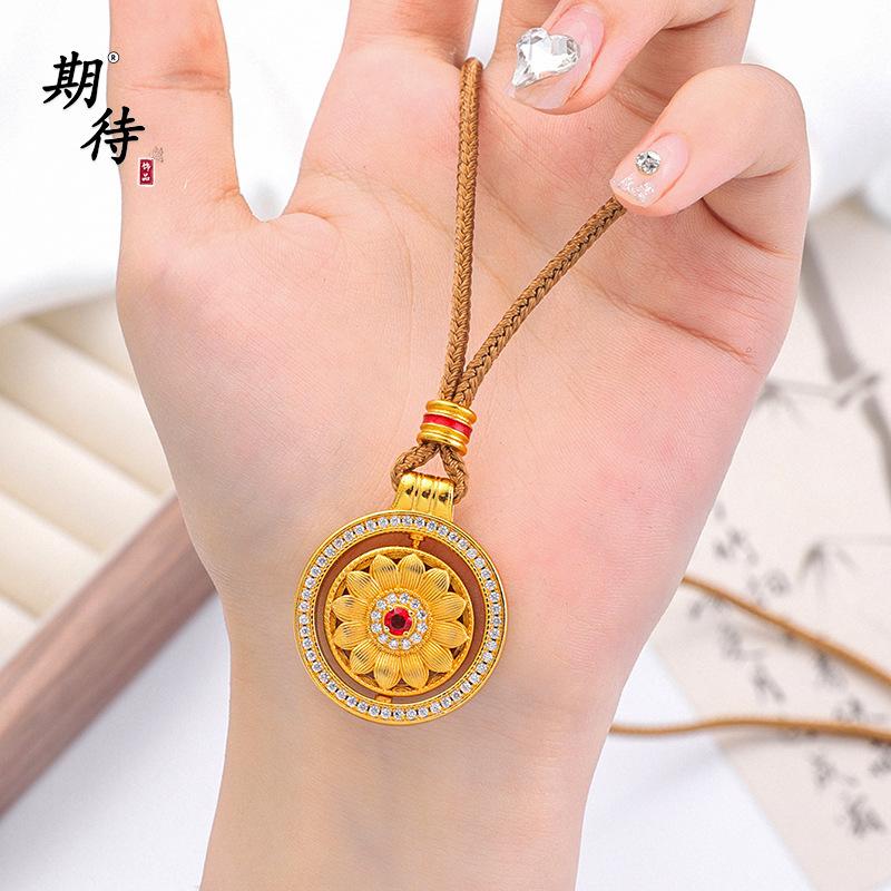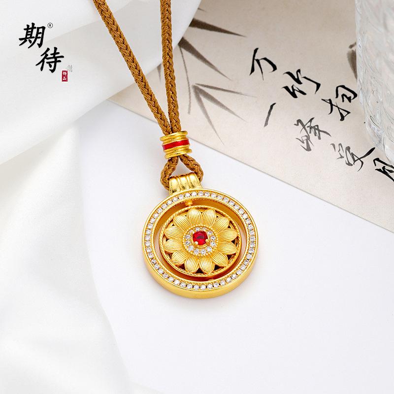 Tienda de oro con accesorios de bricolaje de oro, collar con colgante de girasol rojo con diamantes, cadena de suéter, colgante vintage de moda nacional
