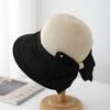 Sombrero de paja de verano para mujer de alta calidad y nuevo estilo 2025, sombrero de pescador con empalme, visera para el sol, sombrero para el sol con lazo