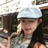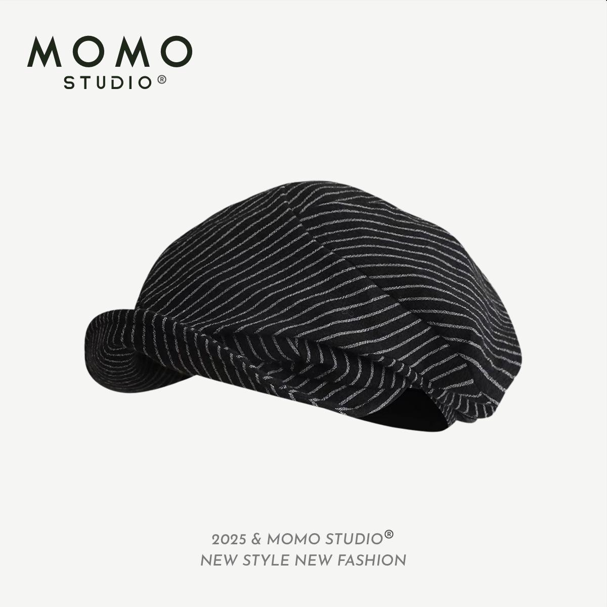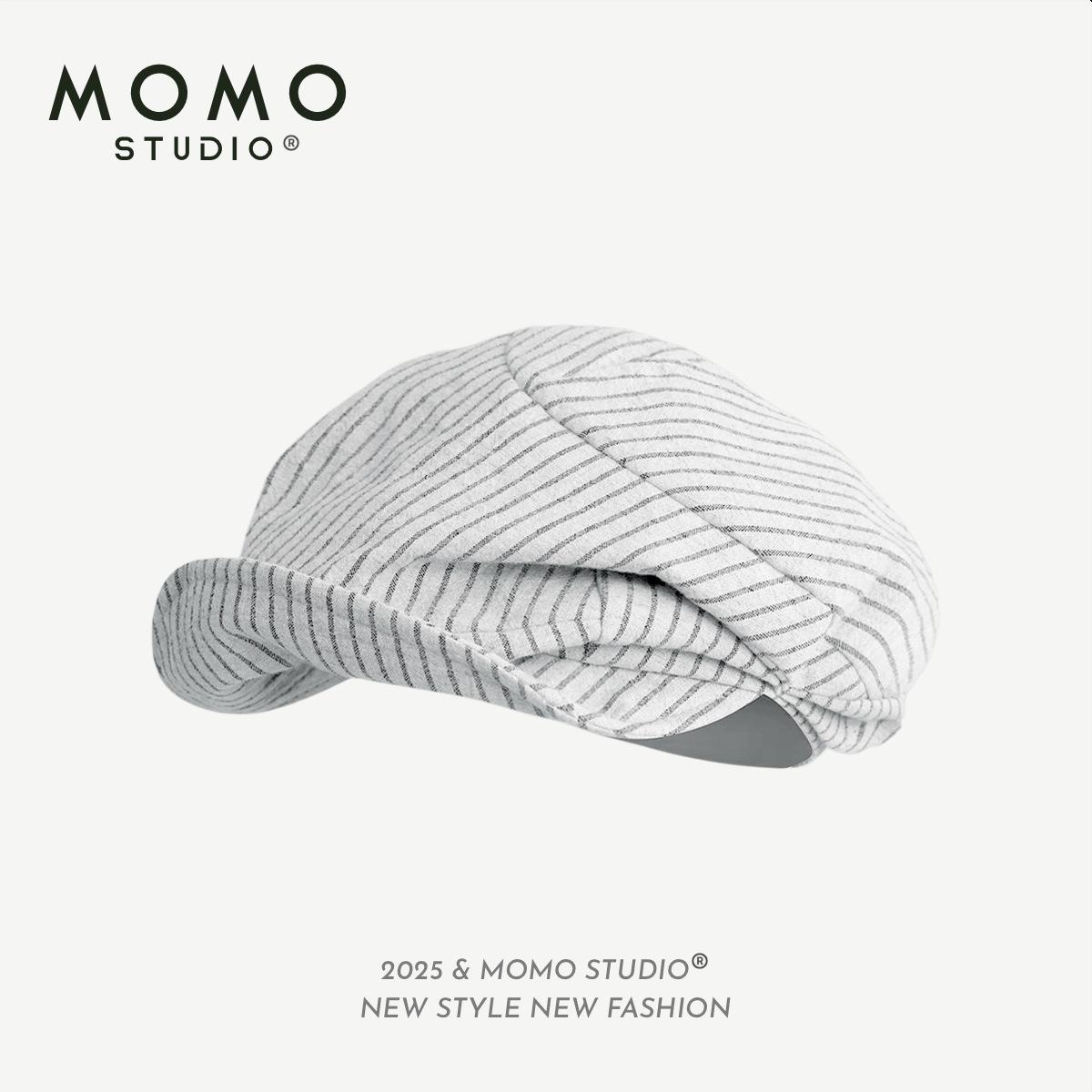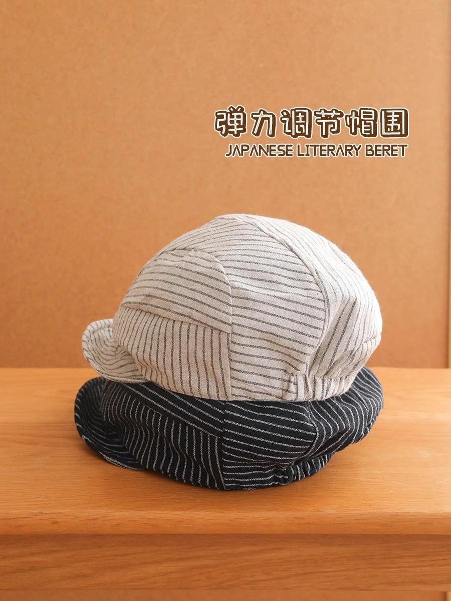 Gorra de Repartidor Rayada Vintage Japonesa Miss Mo Primavera y Verano Algodón Lino Transpirable Sombrero de Pintor Diseño Nicho Plisado Botón