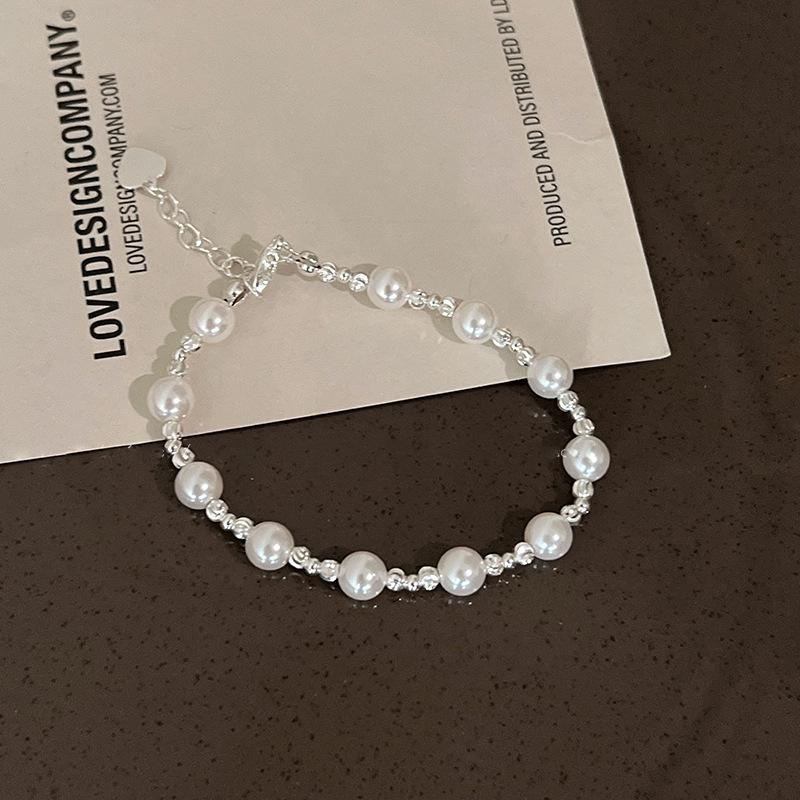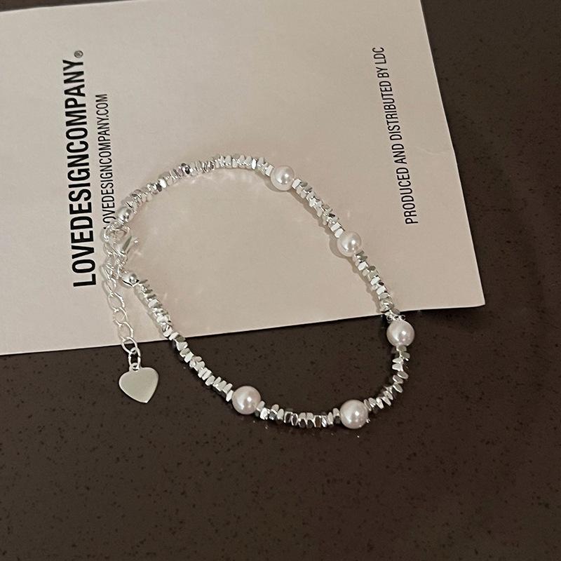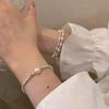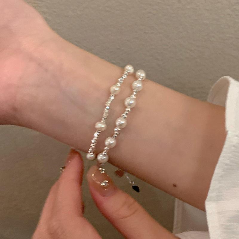 Pulsera de Perlas Plateadas Rotas para Mujer Diseño Nicho de Lujo Ligero Personalidad Simple Combinable de Alta Gama Elegante Pulsera de Novia