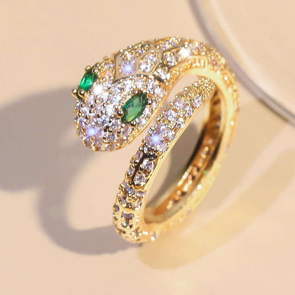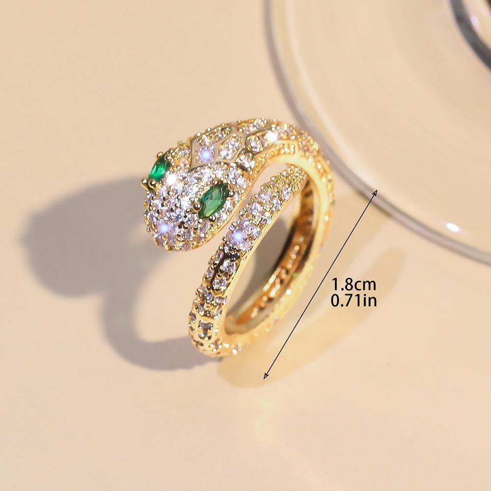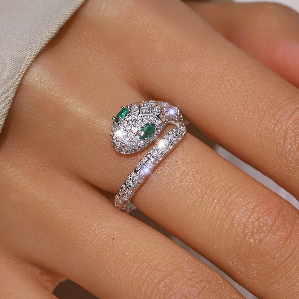 Anillo Abierto de Serpiente Seiko Zirconio de Montura Alta Trabajo Pesado Tesoro Cabeza de Serpiente Personalidad Transfronterizo Gama Alta Anillo Abierto Cabeza de Serpiente