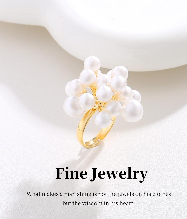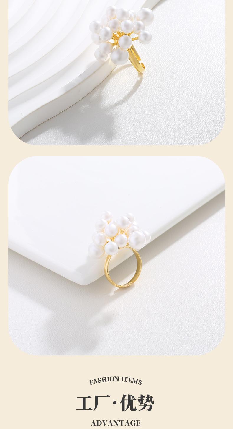 Anillo Abierto de Cuentas Múltiples Flor de Cuentas de Arroz Elegante Joyería de Mano Anillo de Temperamento para Mujer Nicho de Alta Gama Lujo Ligero Anillo para Dedo Índice Venta al por Mayor