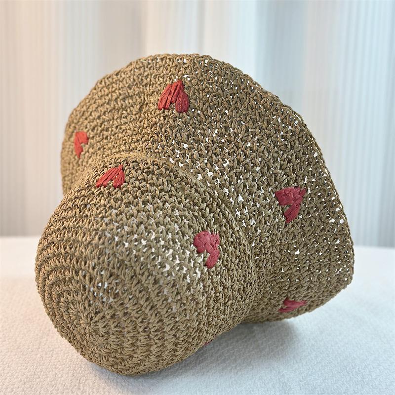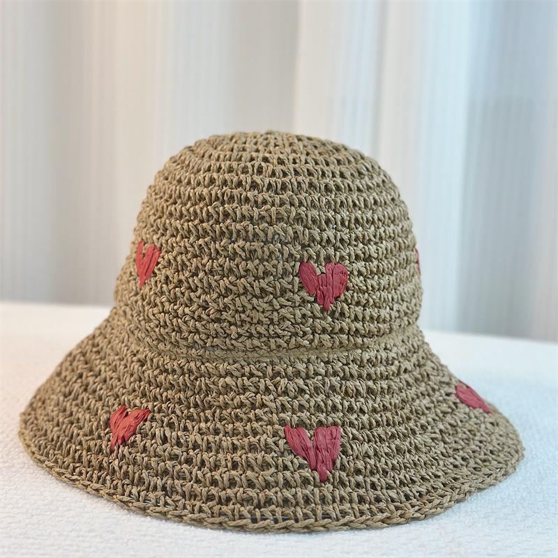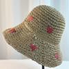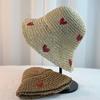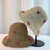 Sombrero de paja para mujer verano salida transpirable sombrilla ala ancha sombrero de pescador coreano amor jacquard paja de papel sombrero de cubo protector solar marea