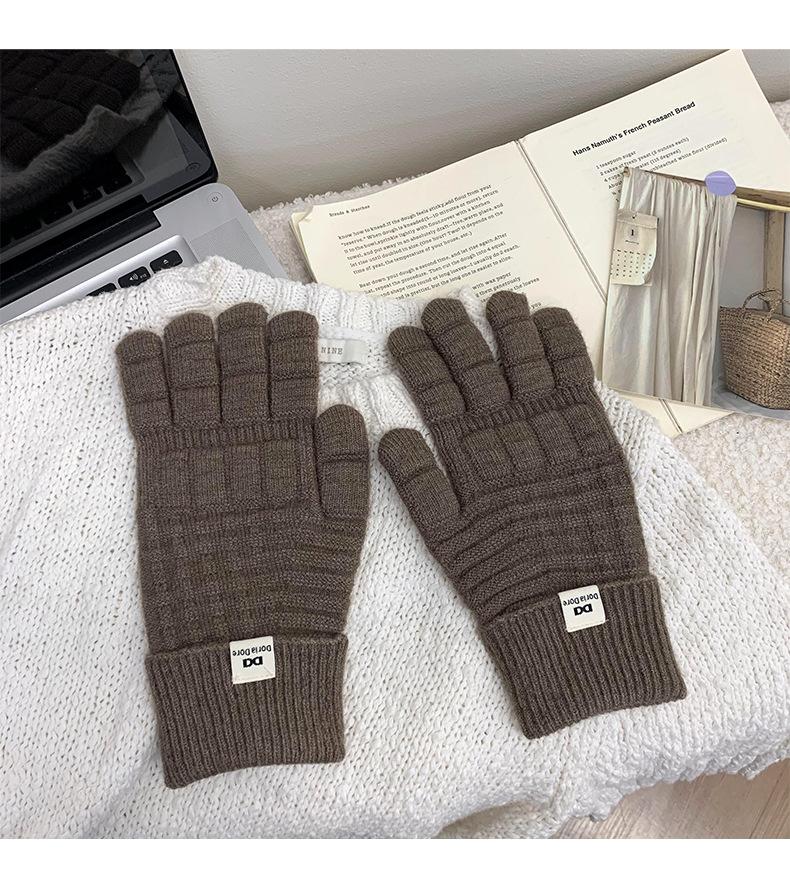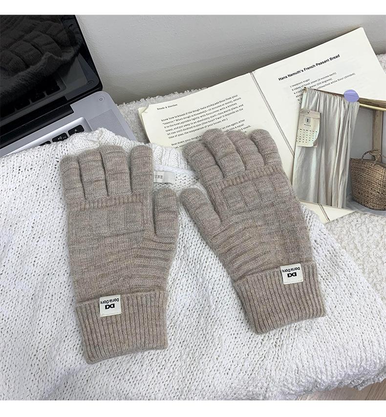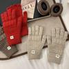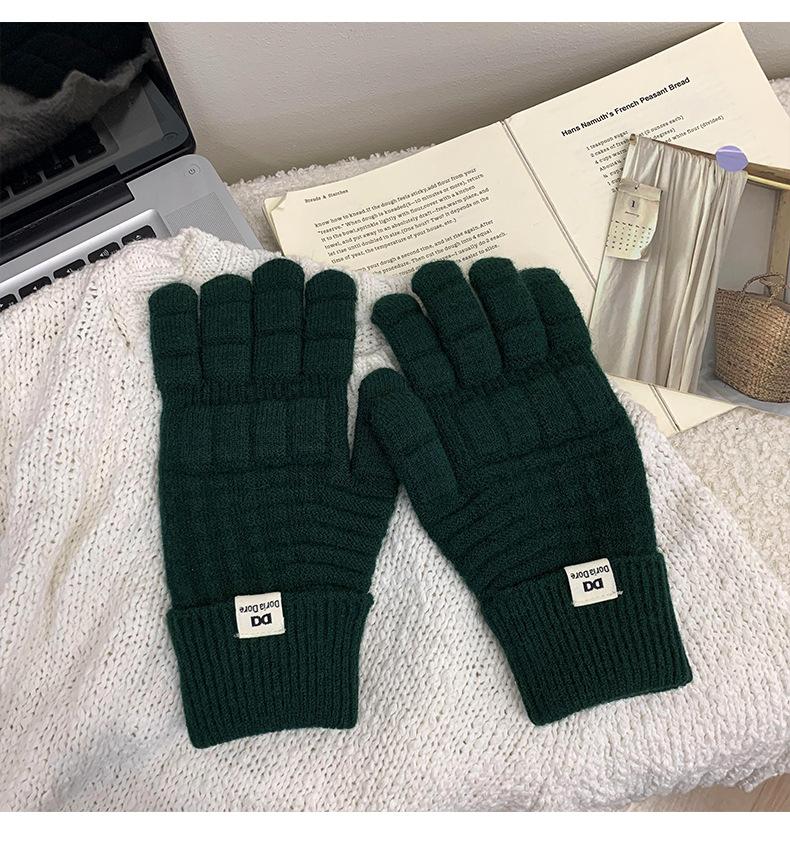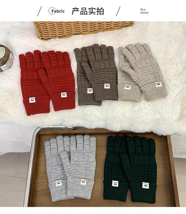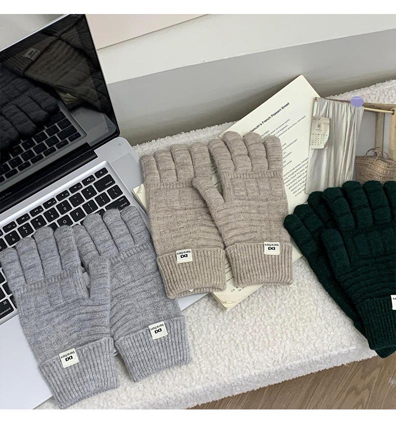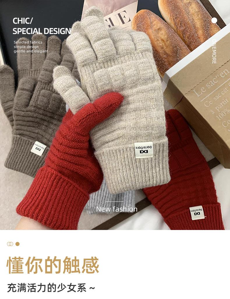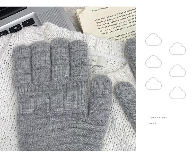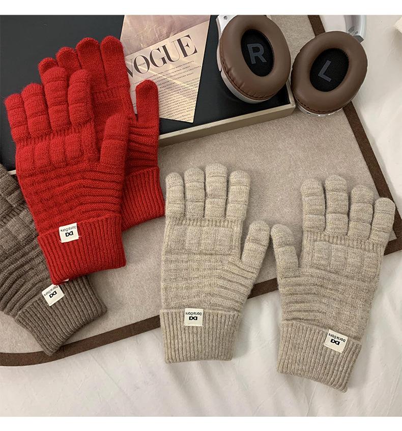 Guantes de punto de invierno, nuevos, estilo coreano, para todo tipo de clima, cálidos, de color sólido, con cinco dedos y diseño de gofres.