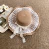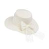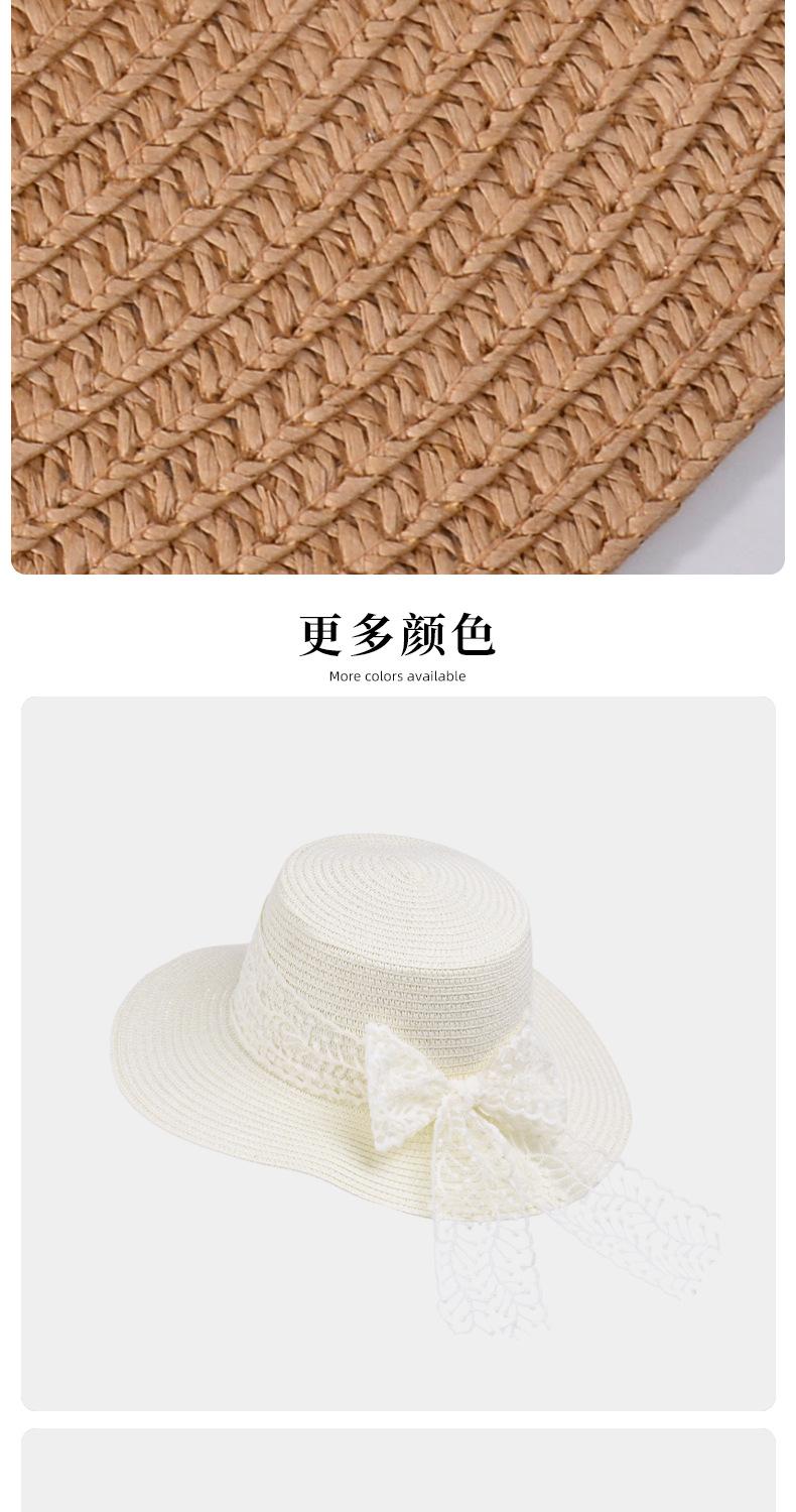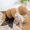 Sombrero de Paja de Copa Plana con Lazo de Encaje de Malla Elegante Estilo Francés para Mujer Verano Viaje Protección Solar Playa Sombrero Plano Trendy