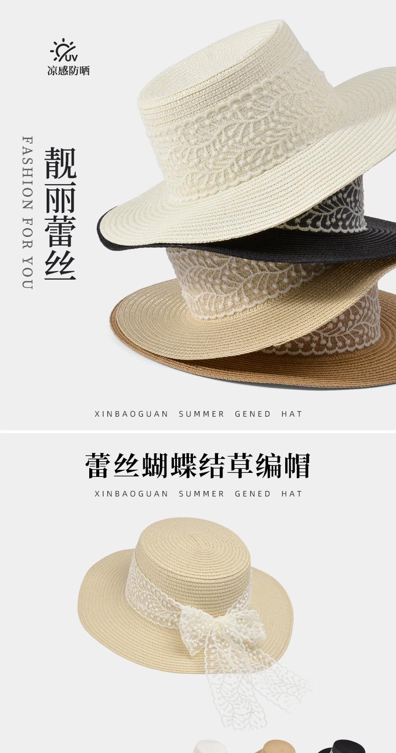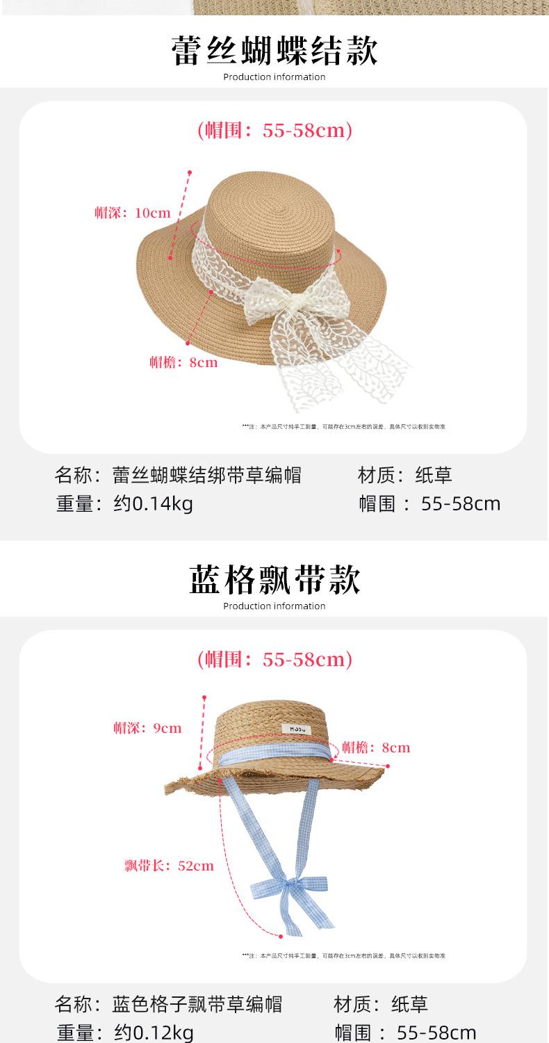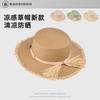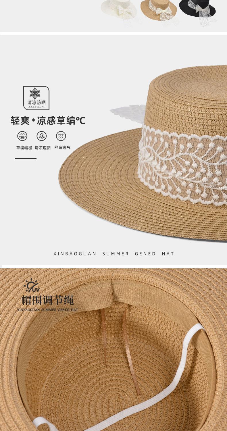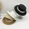 Hong kong style, Literary and artistic, British retro, French retro, Women's flat top straw hat, Straw hat girl