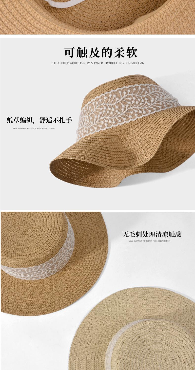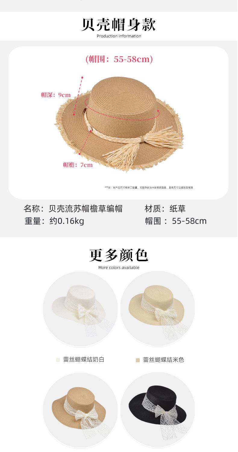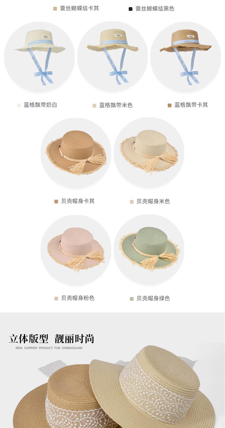 Hong kong style, Literary and artistic, British retro, French retro, Women's flat top straw hat, Straw hat girl