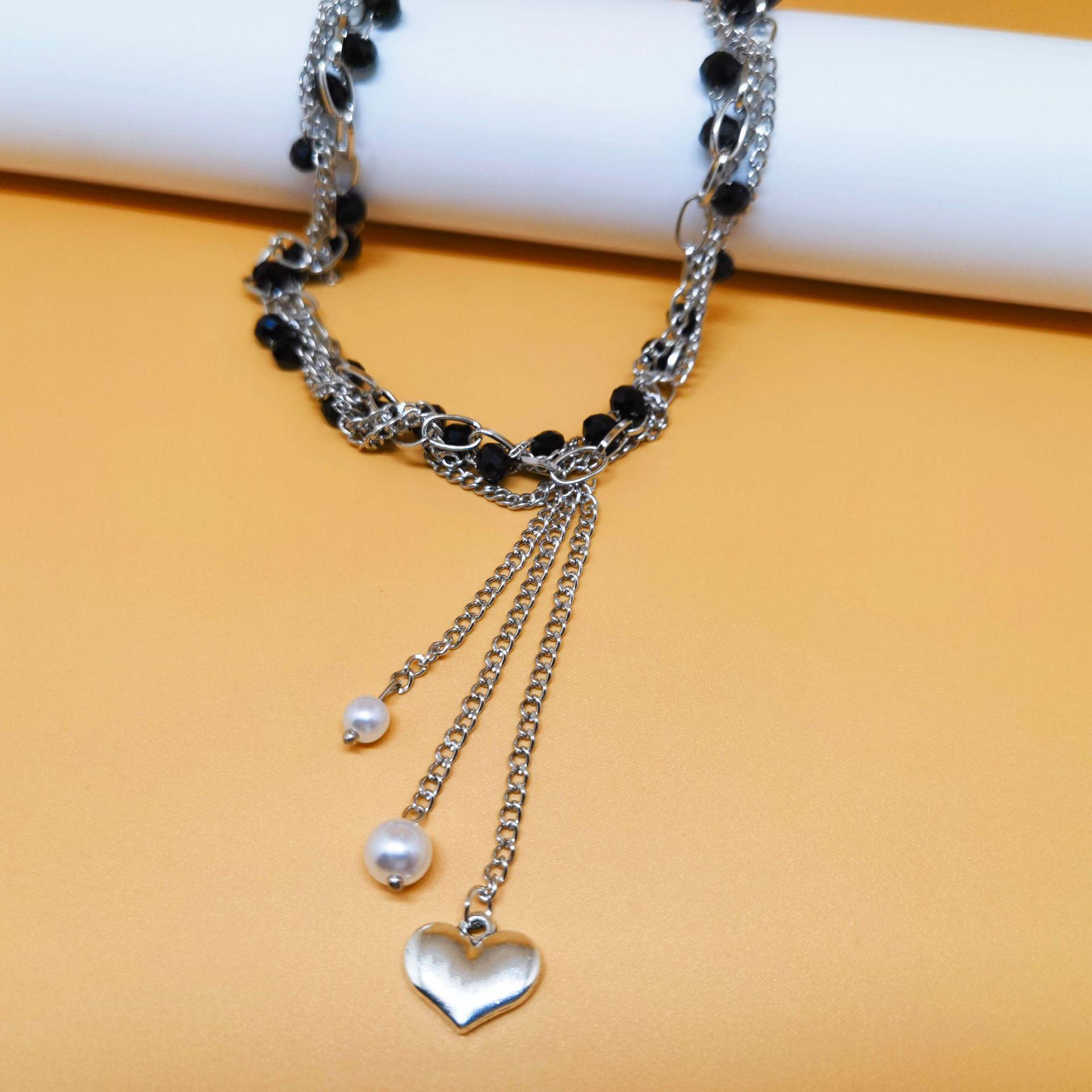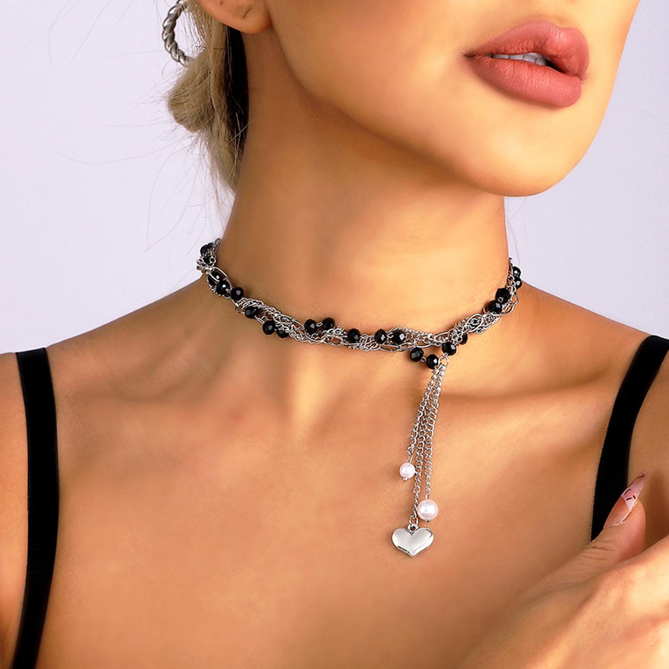 Joyería Transfronteriza Europea y Americana Borla Simple Moda de Alta Gama Collar con Colgante de Corazón Cadena para Clavícula Envuelta Collar de Aleación