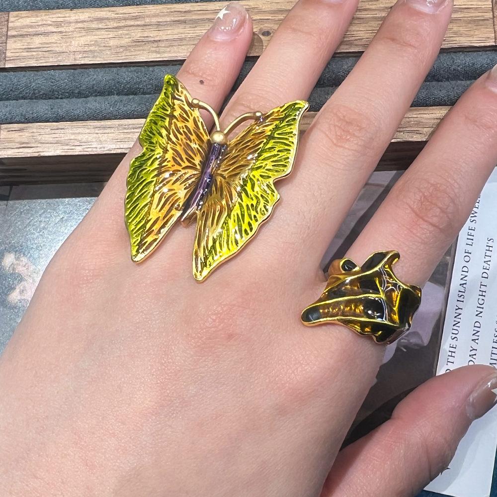Anillo de Mariposa de Moda Simple Europea y Americana Geometría Irregular de Alta Gama Retro Vintage Lujo Ligero Anillo de Corte