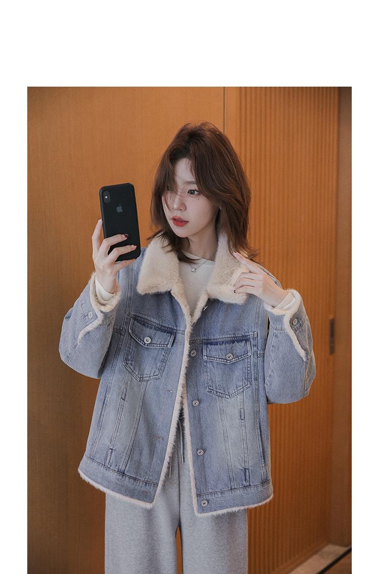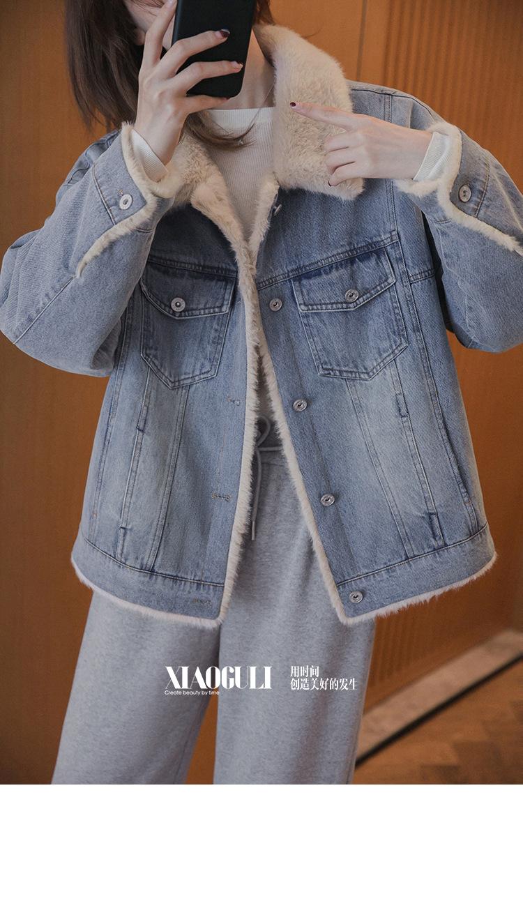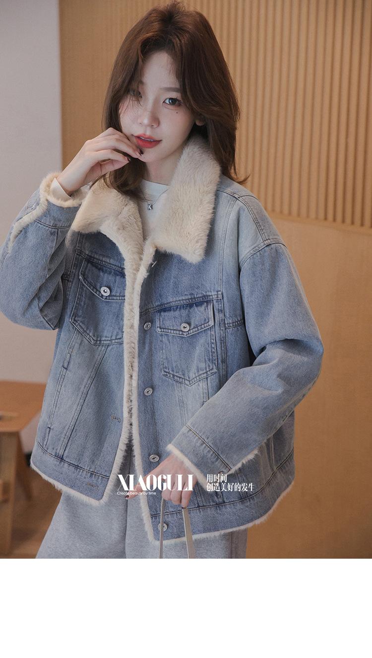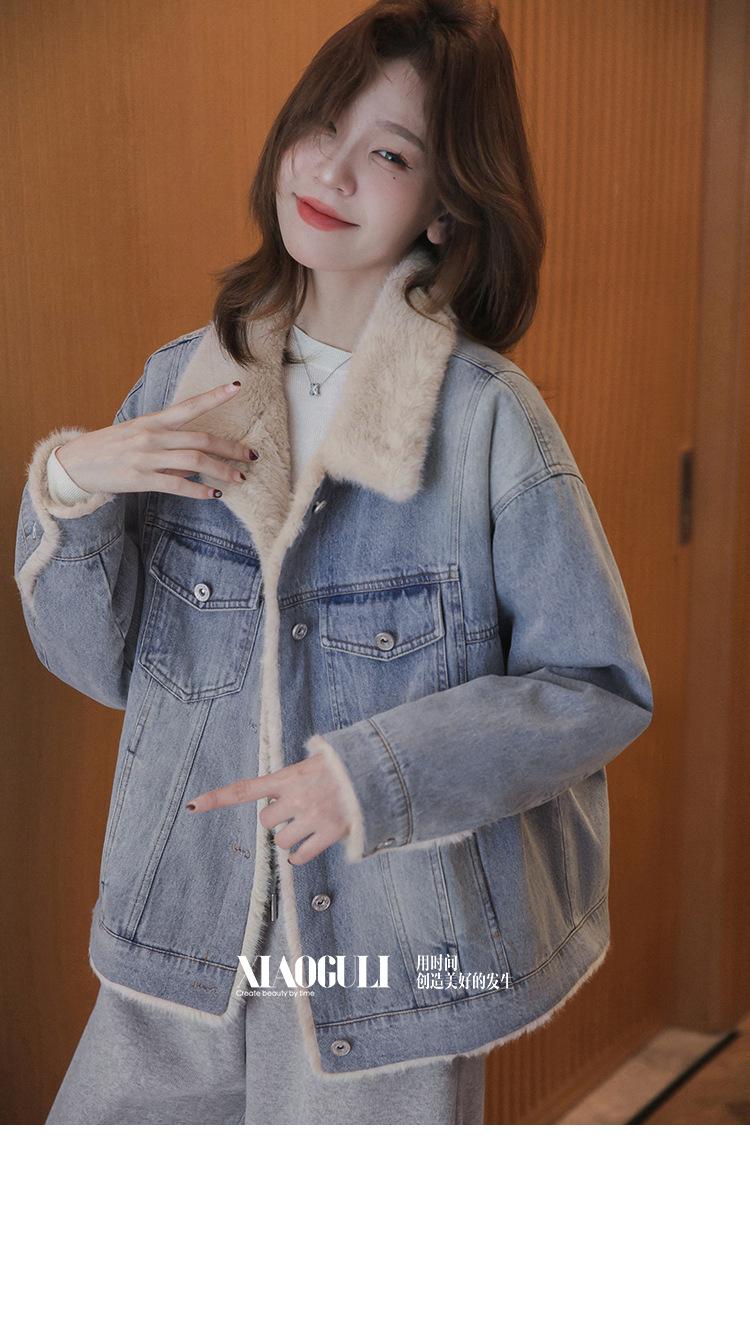Abrigo de mezclilla para mujer Invierno forrado de polar 2025 Invierno Nuevo Estilo Coreano Imitación Piel de Conejo Interior Estilo Coreano Abrigo Pequeño Grueso Mujer