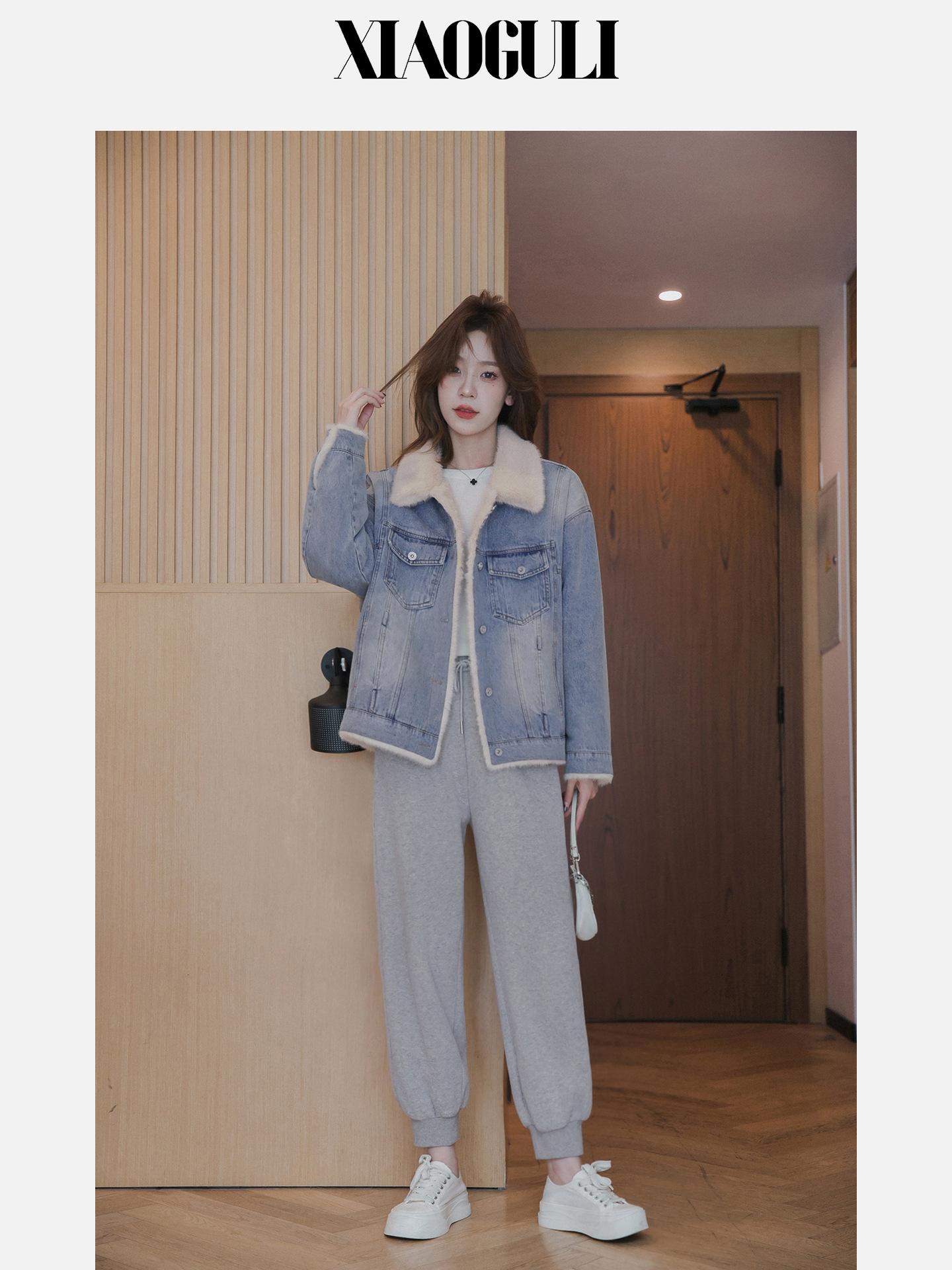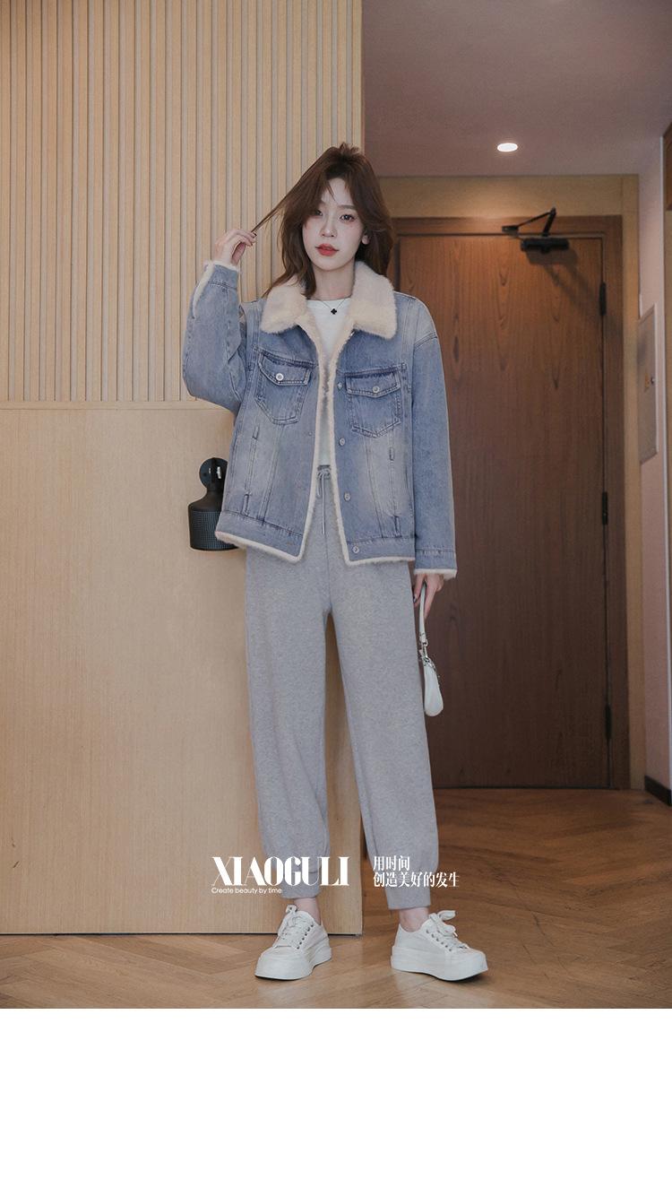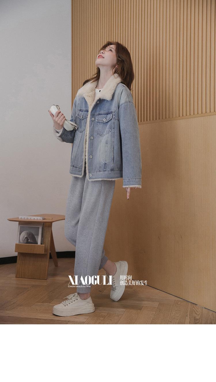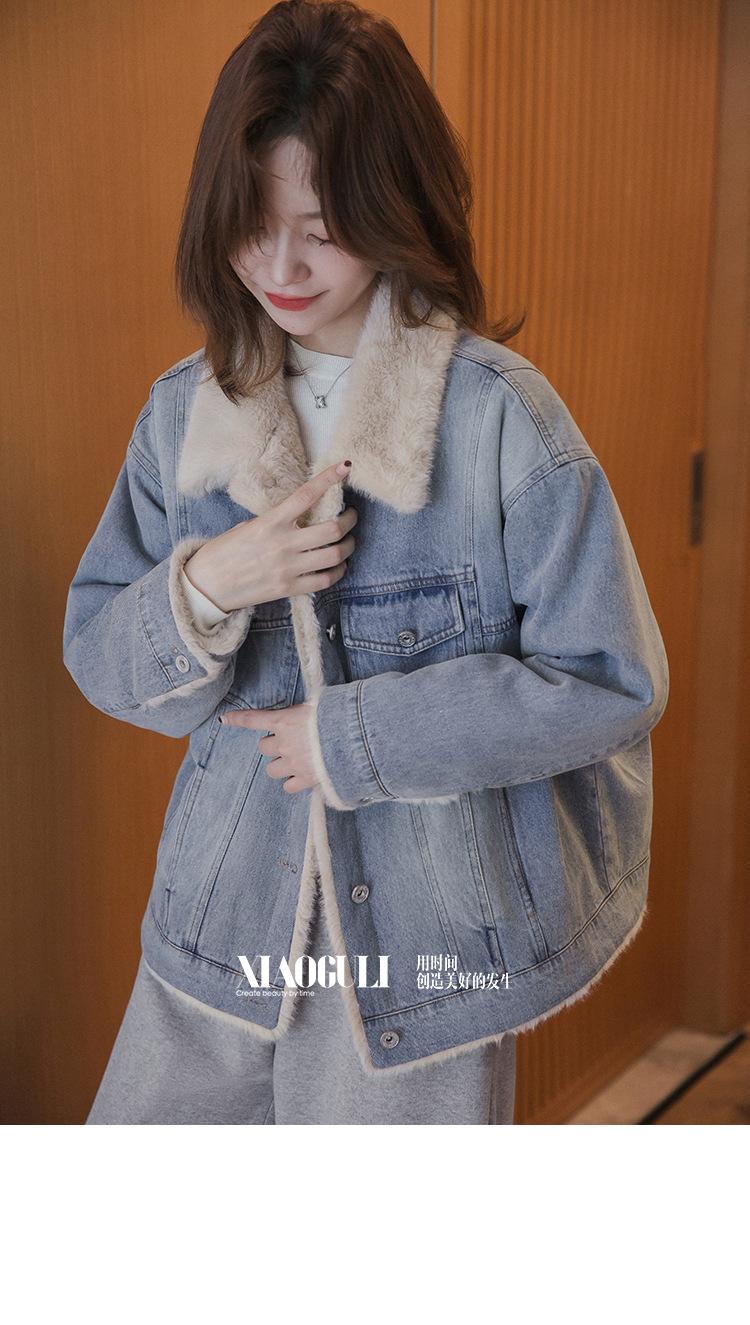 Abrigo de mezclilla para mujer Invierno forrado de polar 2025 Invierno Nuevo Estilo Coreano Imitación Piel de Conejo Interior Estilo Coreano Abrigo Pequeño Grueso Mujer