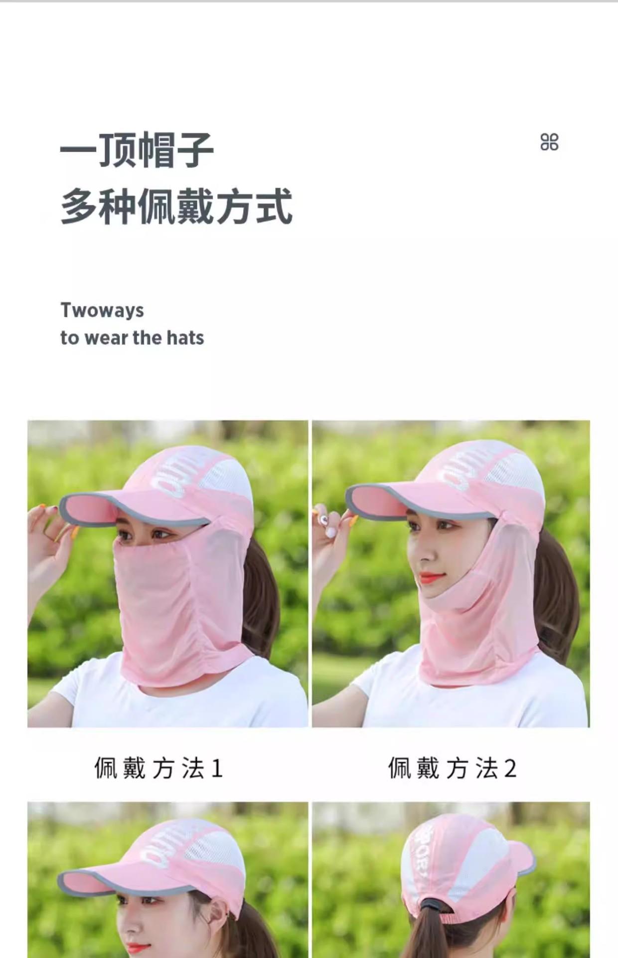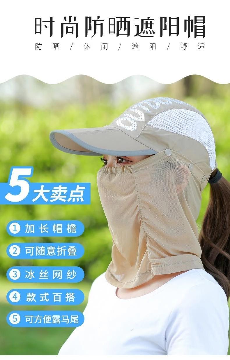 Sombrero parasol de verano para mujer, máscara solar, protector facial, gorra de béisbol transpirable, protección UV para exteriores, sombrero para ciclismo
