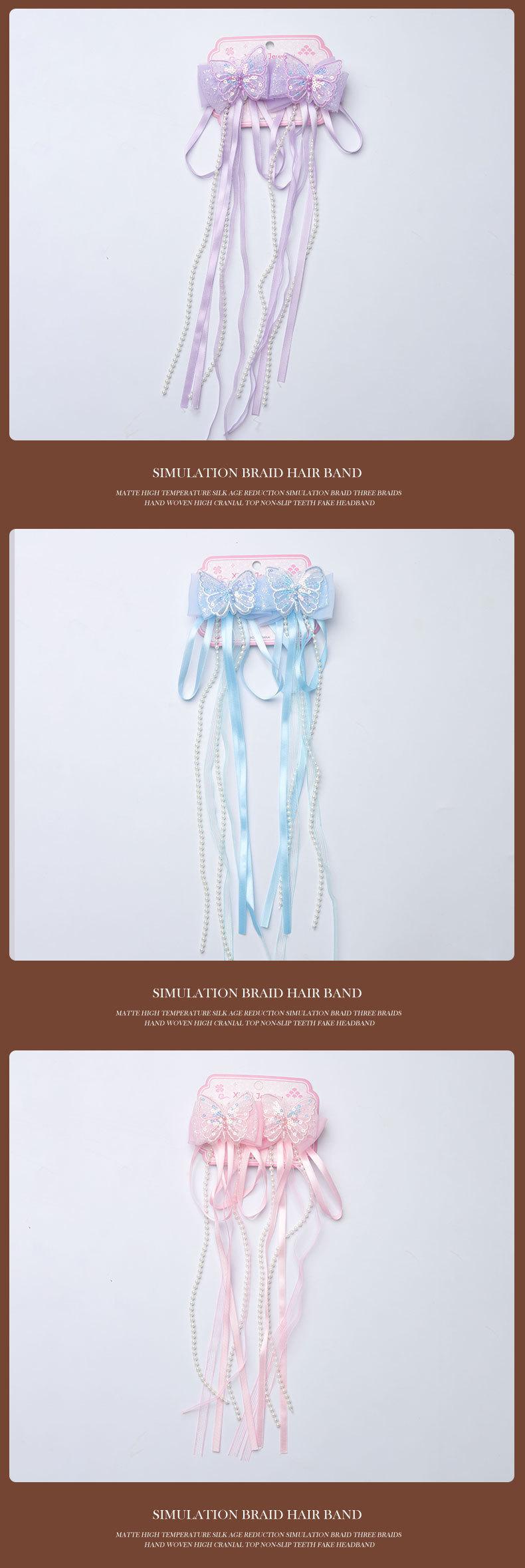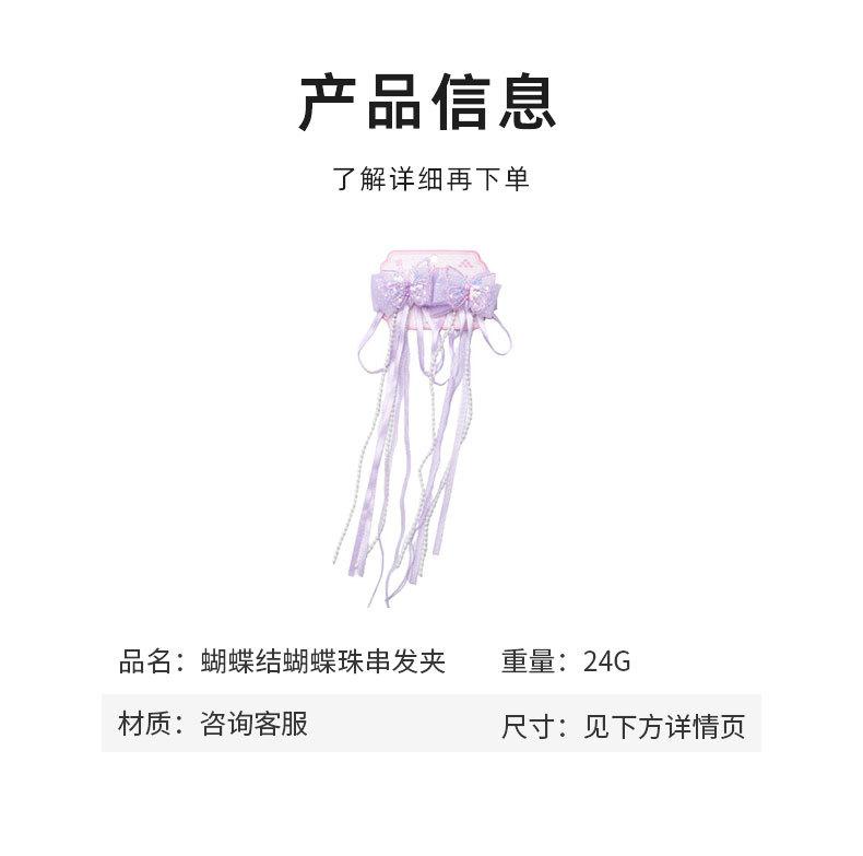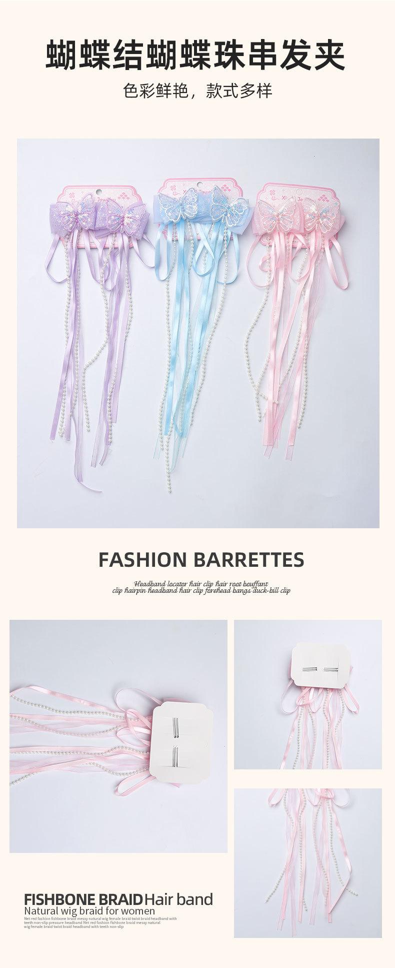 Horquilla con lazo de hada estilo coreano con forma de mariposa y cuentas para niña, accesorio para el cabello con cola de caballo dulce para niña, tocado