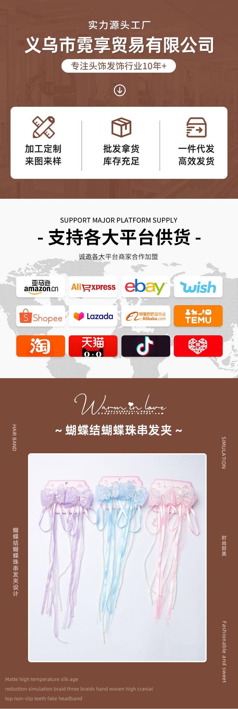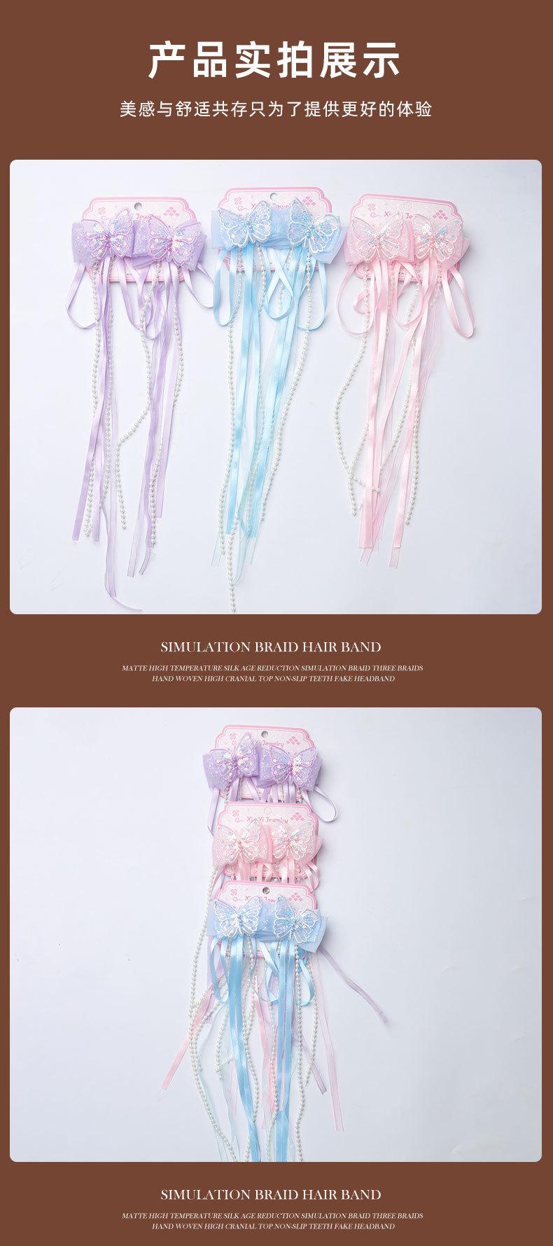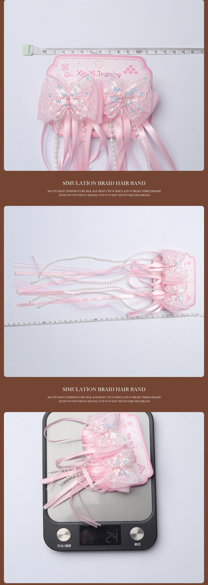 Horquilla con lazo de hada estilo coreano con forma de mariposa y cuentas para niña, accesorio para el cabello con cola de caballo dulce para niña, tocado