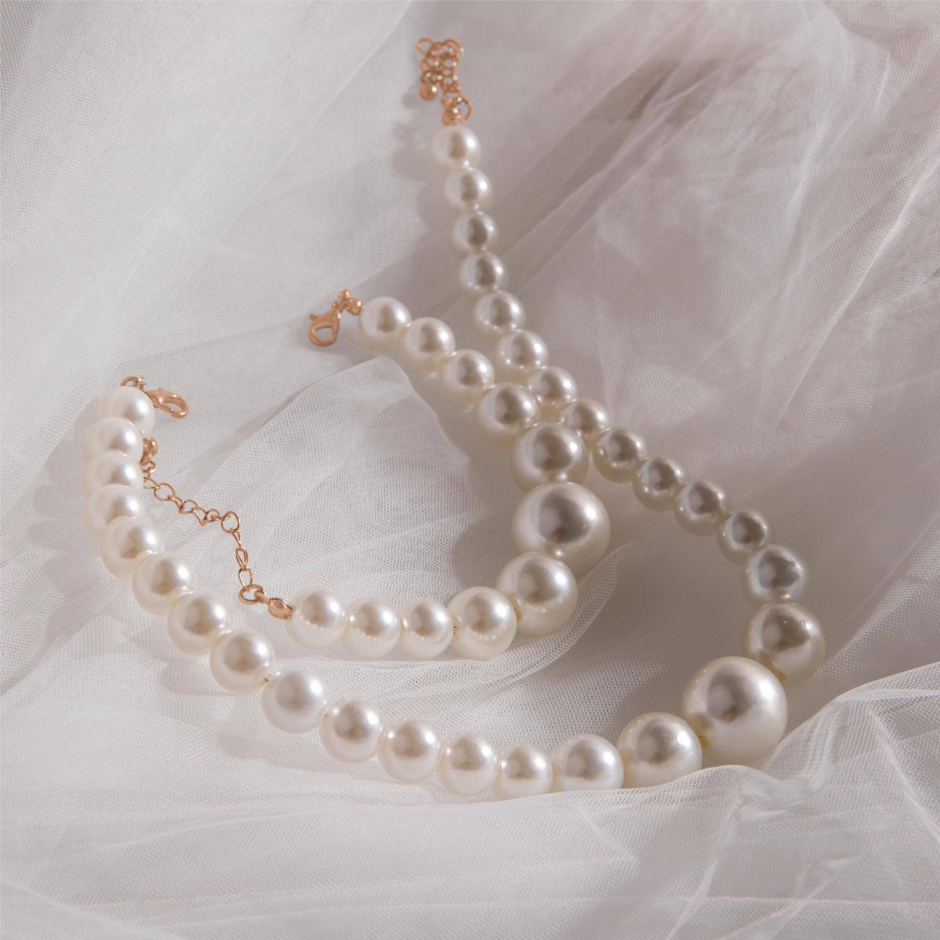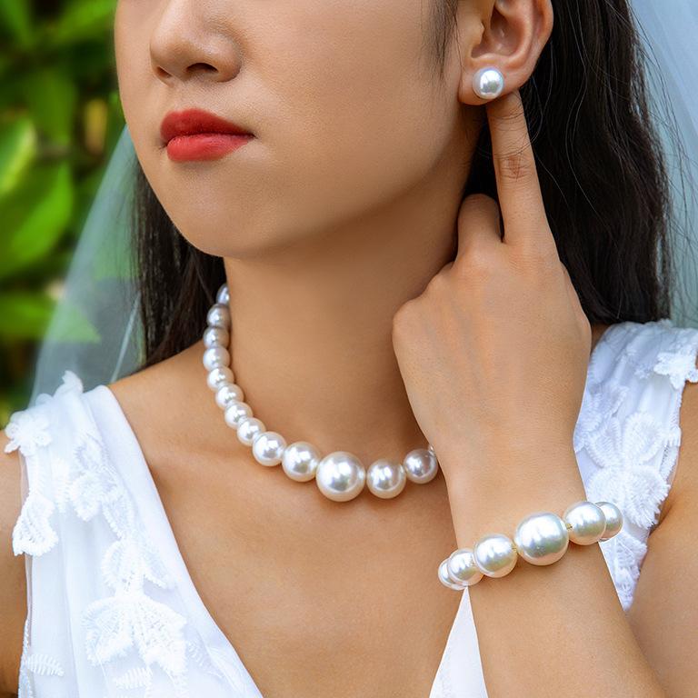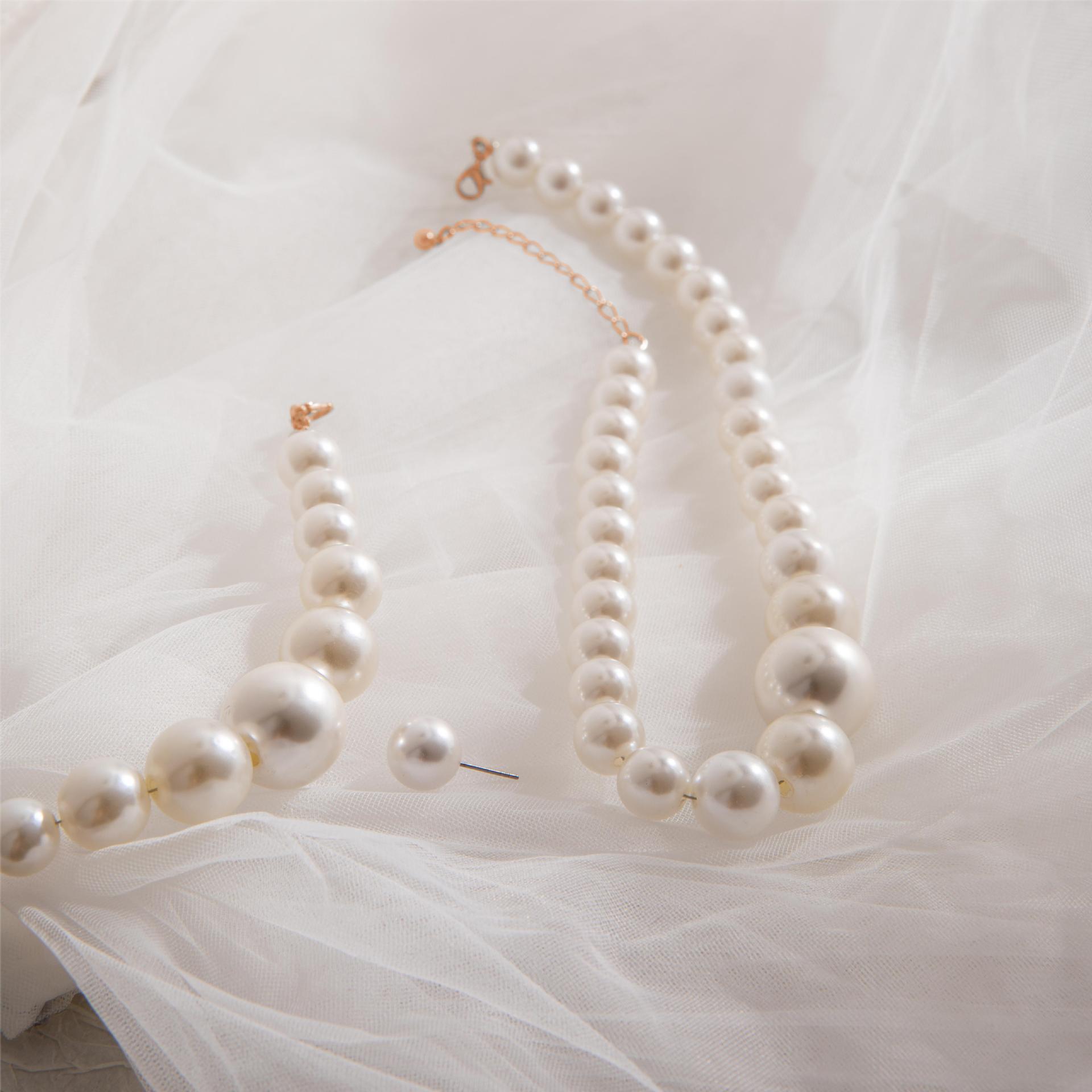 Elegante collar y pendientes de perlas de imitación para mujer, estilo transfronterizo de Amazon, joyería francesa de alta gama.