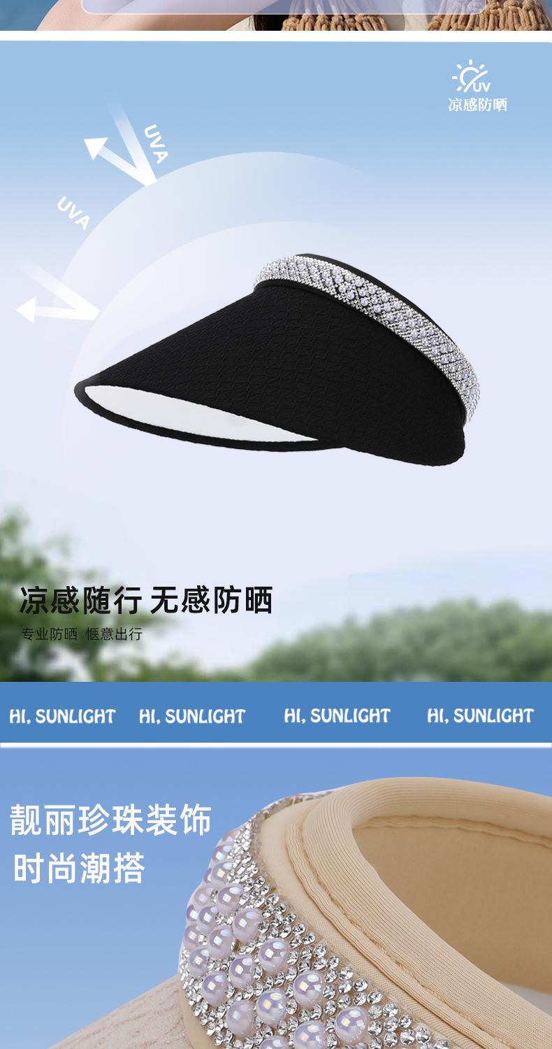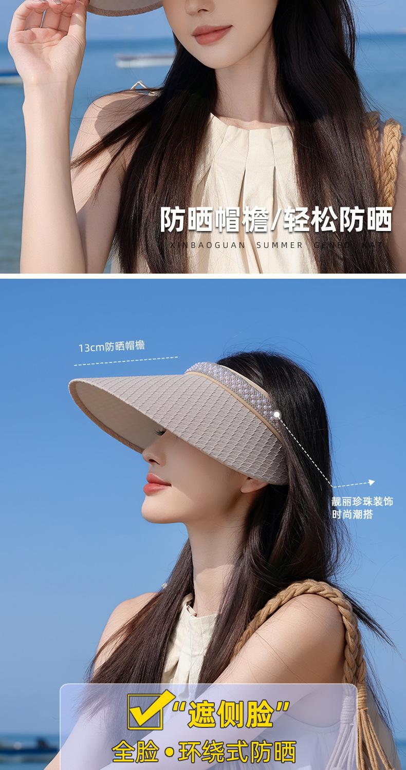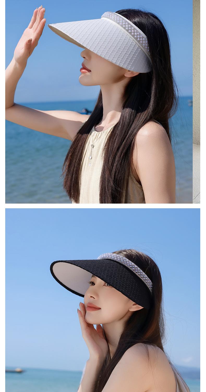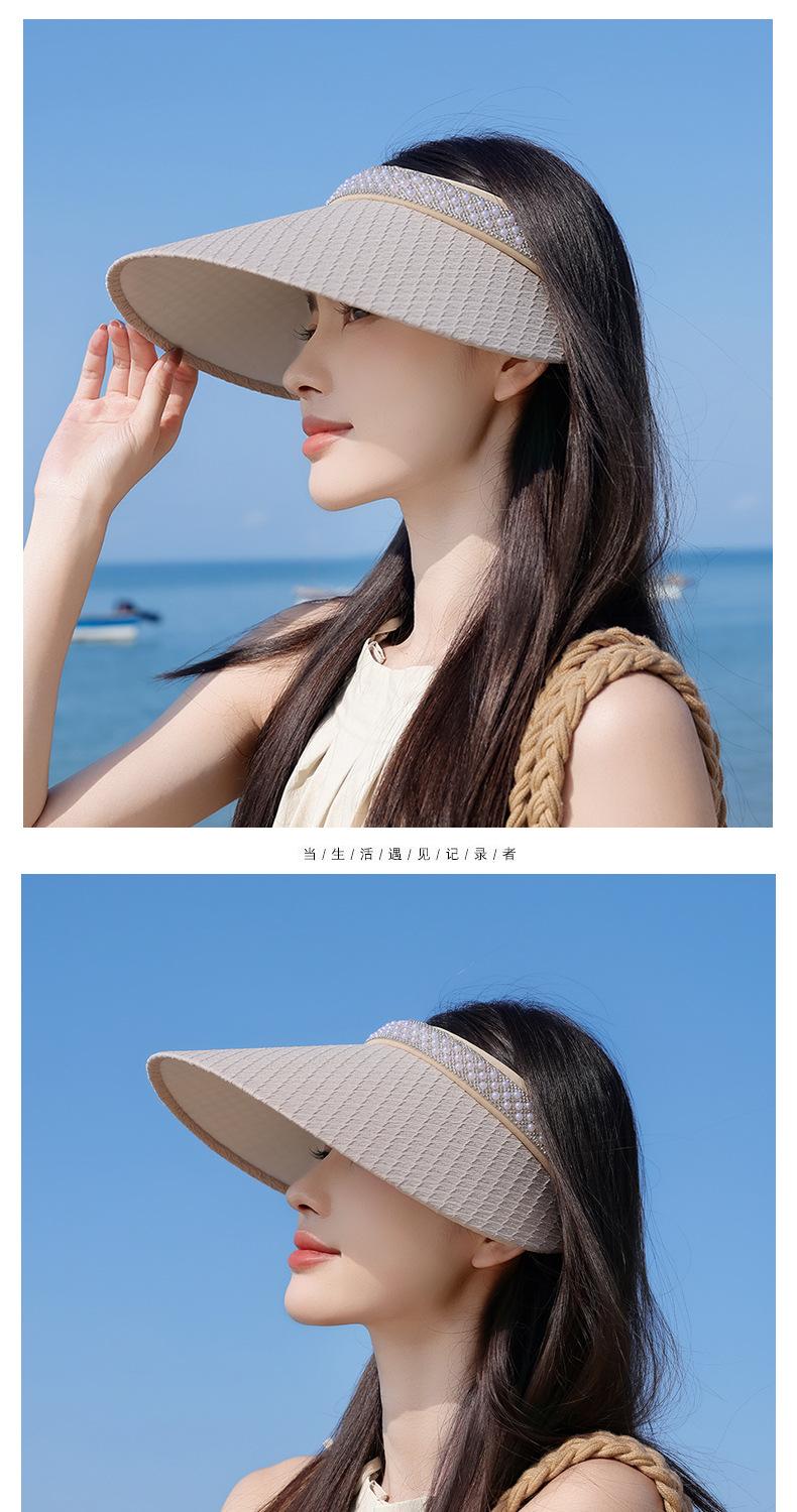 Sombrero de copa con protección solar y protección ultravioleta para mujer, sombrero de verano para ciclismo, sombrero para el sol con banda de pelo de perla para playa.