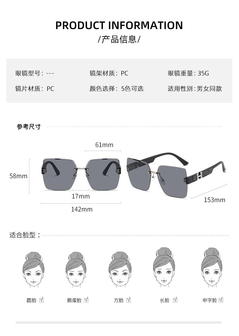Nuevas gafas de sol degradadas sin montura H para coche transfronterizas, cara grande delgada, moda, tendencia Joker, venta al por mayor