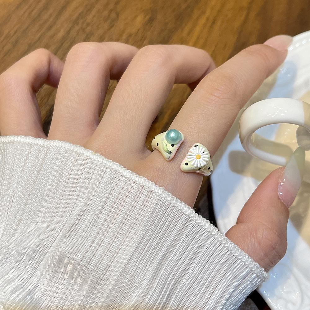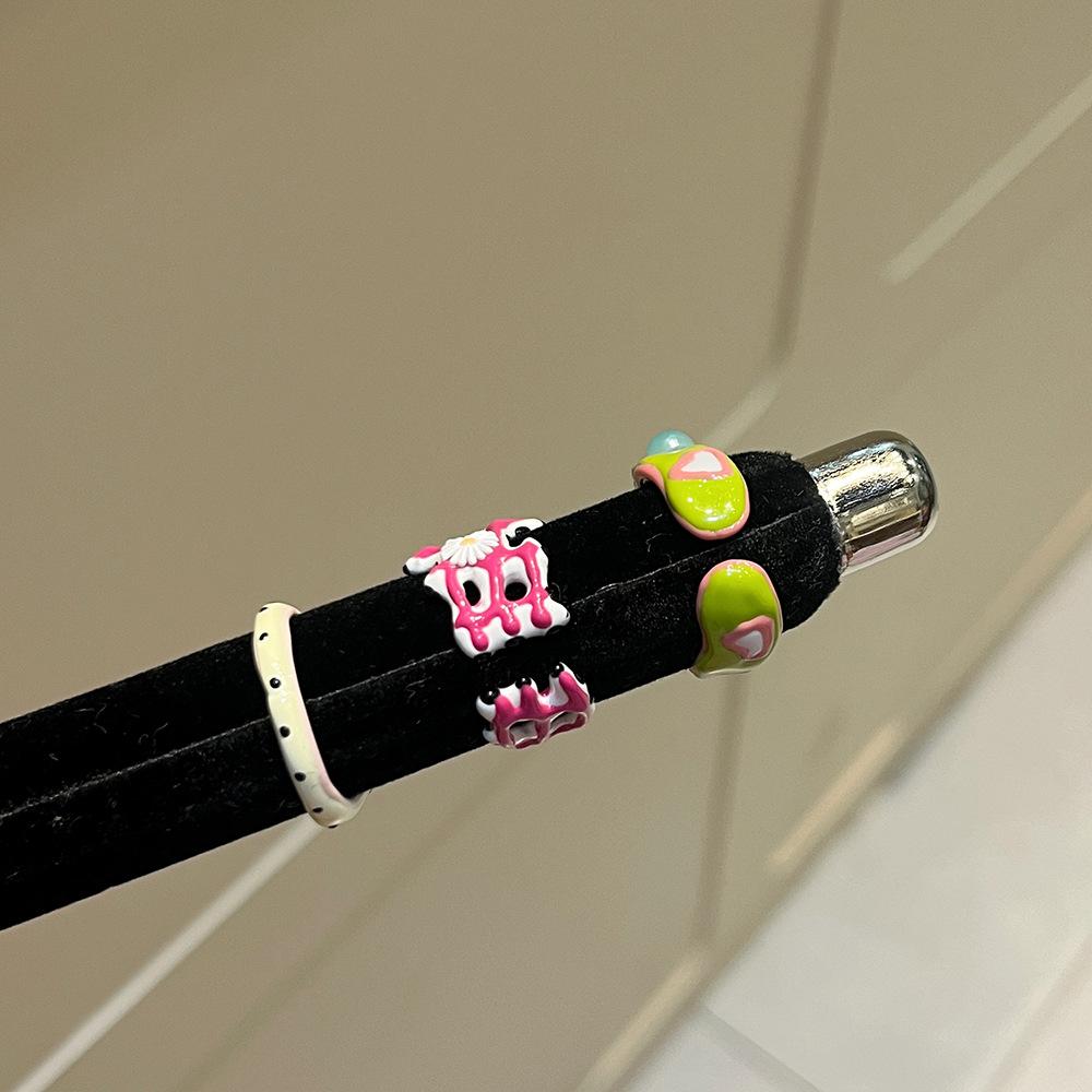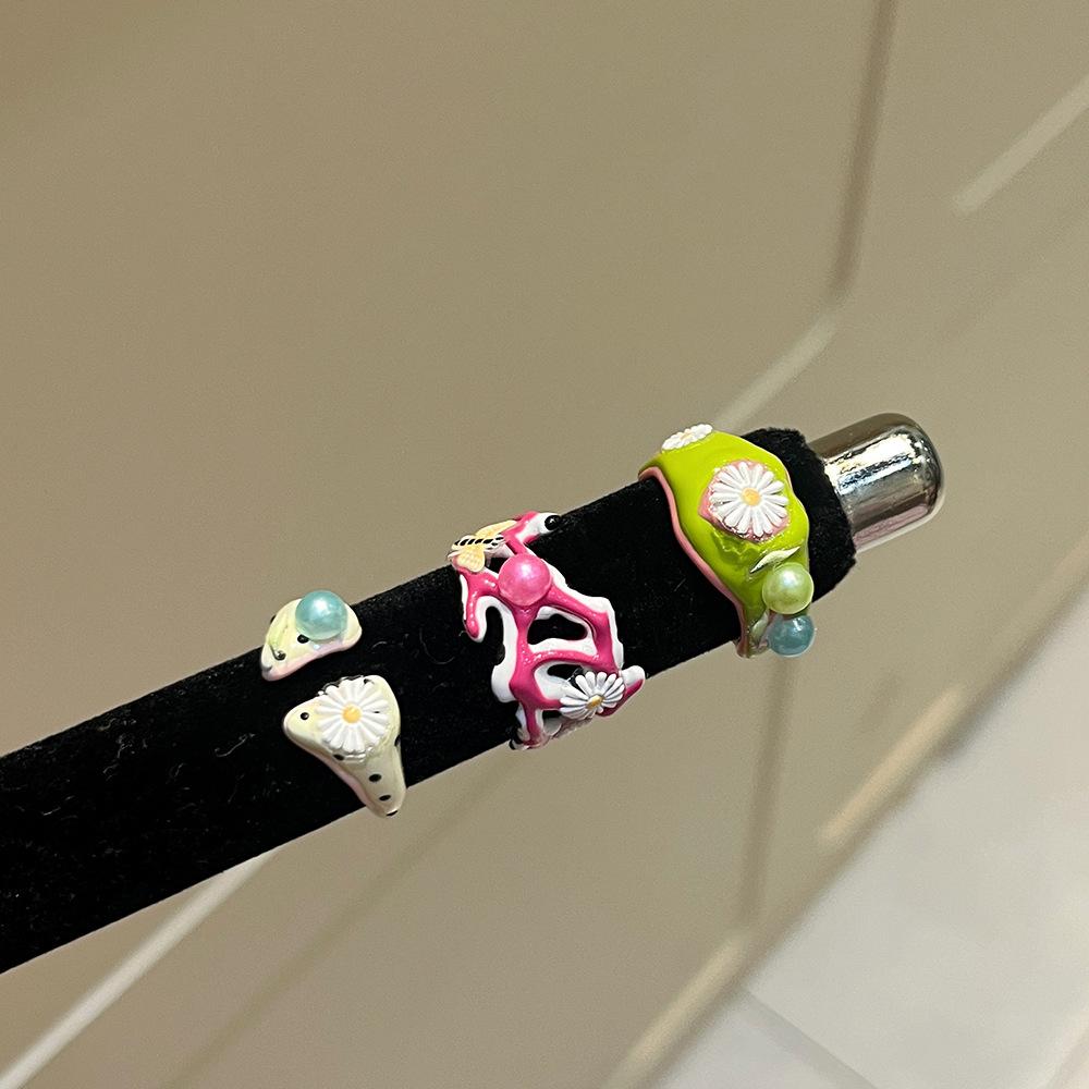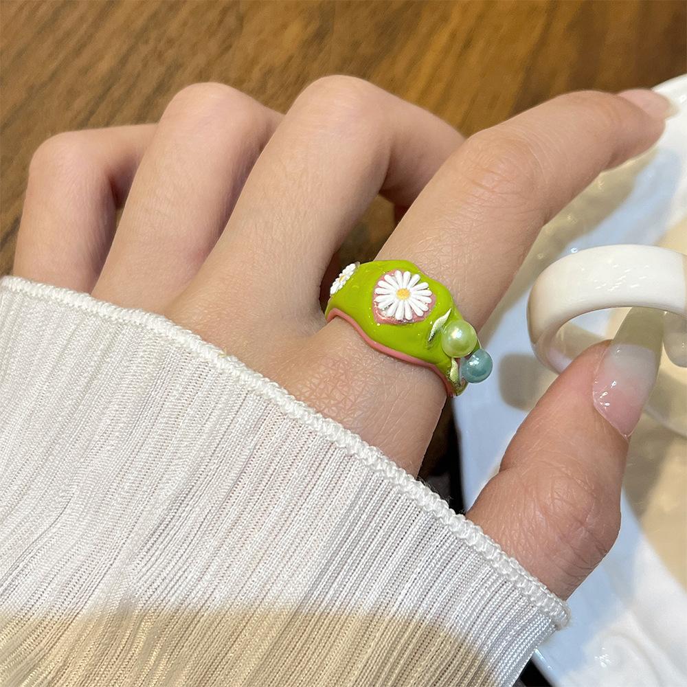 Anillo de Margarita Pintado Hecho a Mano con Goteo de Aceite para Mujer, Anillo de Dedo Índice Creativo Personalizado de Moda Hip-Hop Ins para Mujer
