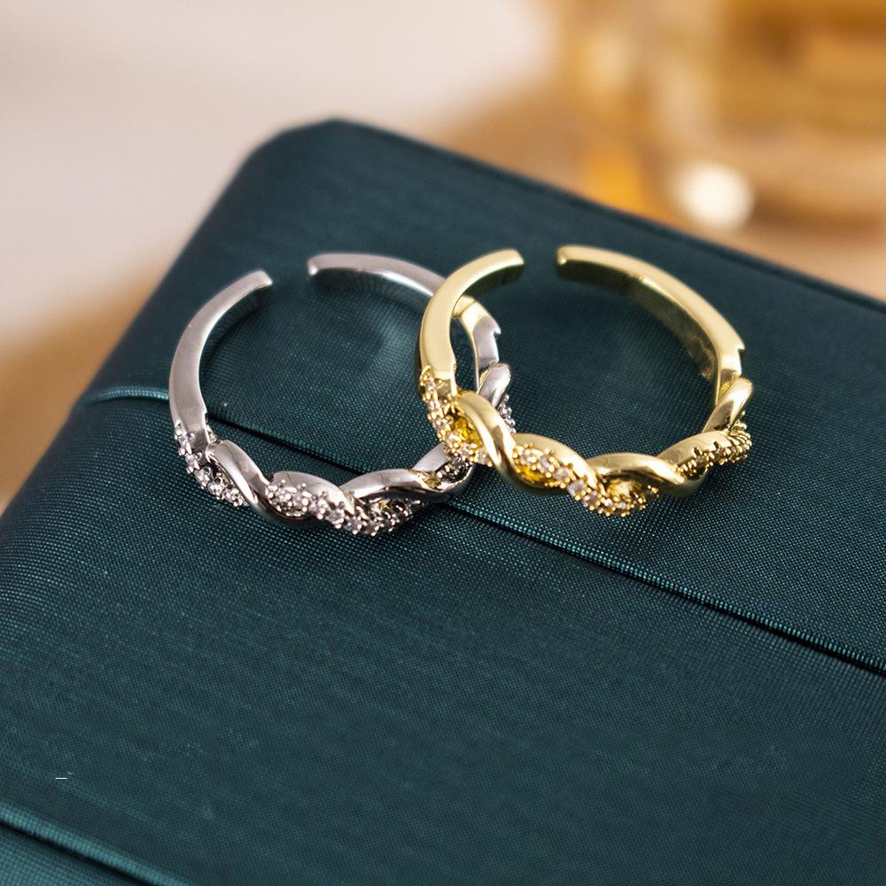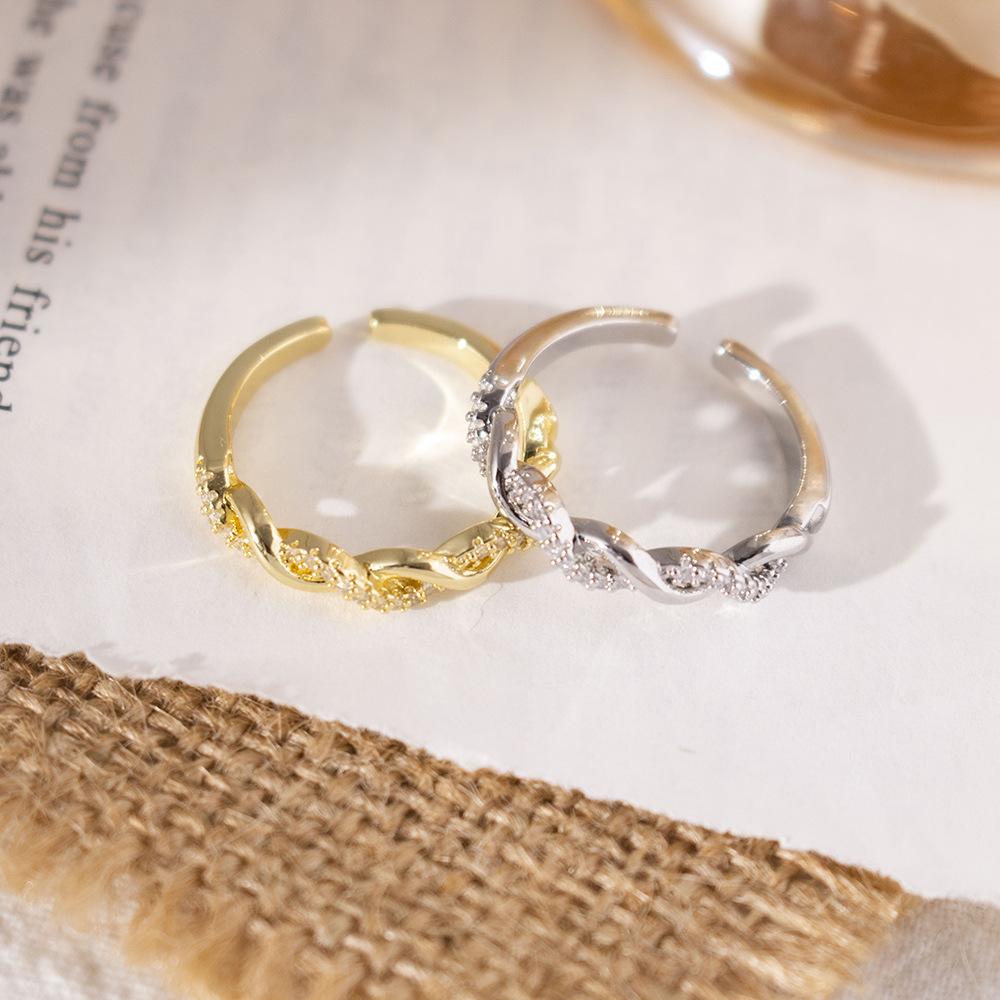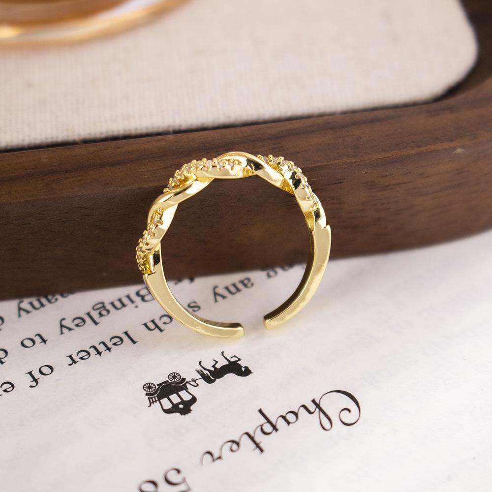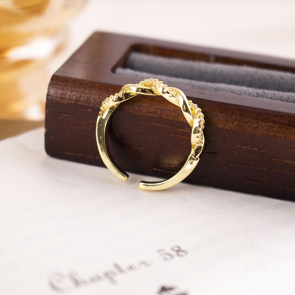 Anillo de Circonita Electrochapado en Oro Real Anillo Abierto Twist de Temperamento Elegante Francés Joyería Simple de Moda de Alta Gama