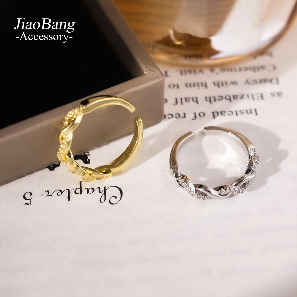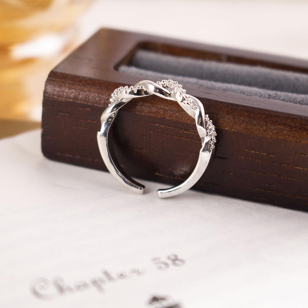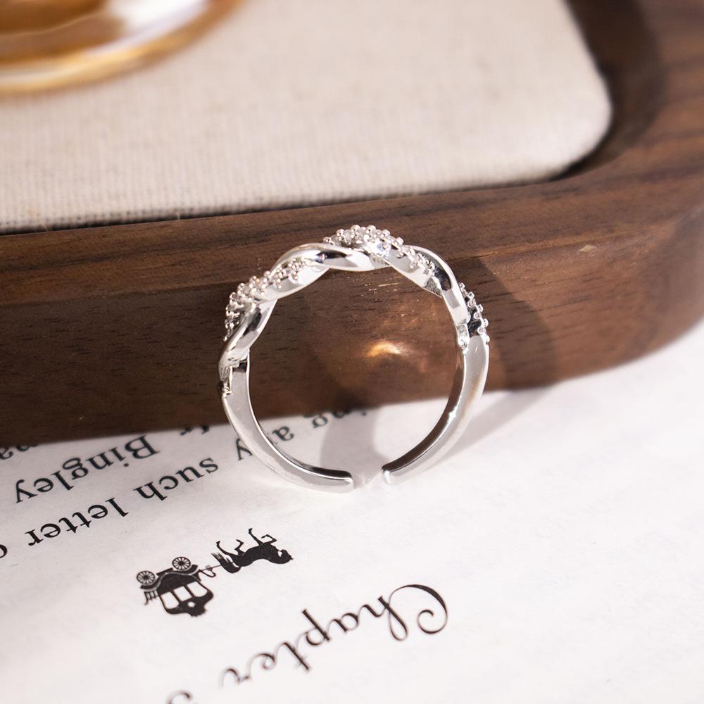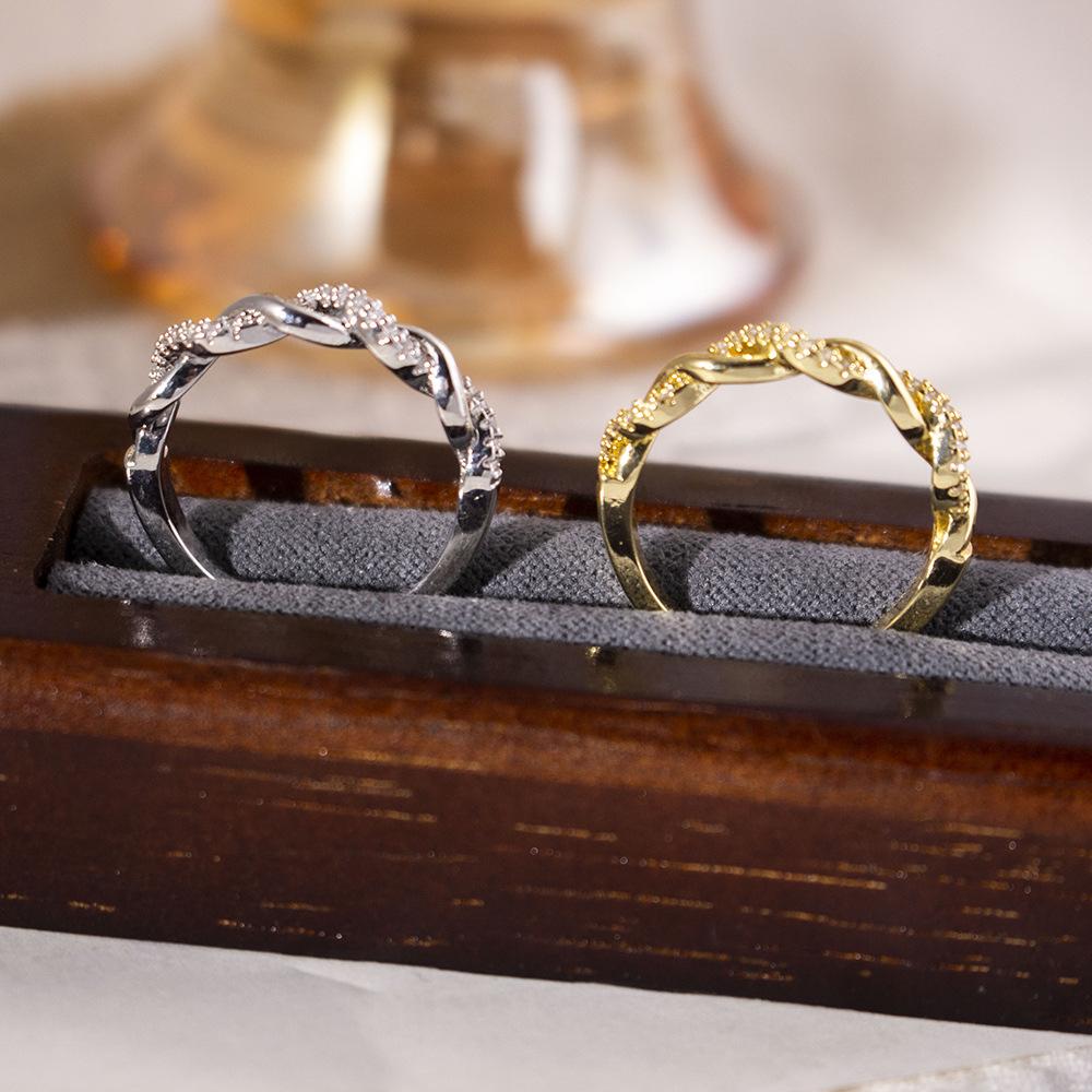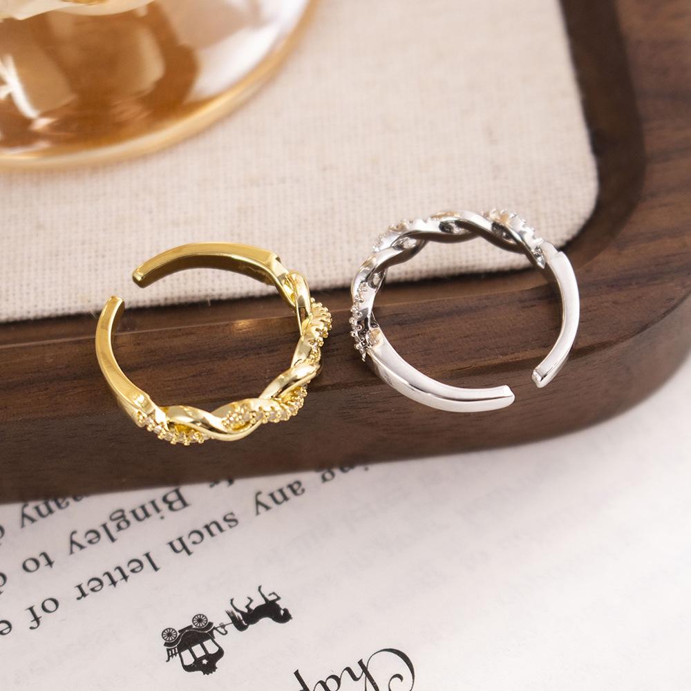 Anillo de Circonita Electrochapado en Oro Real Anillo Abierto Twist de Temperamento Elegante Francés Joyería Simple de Moda de Alta Gama