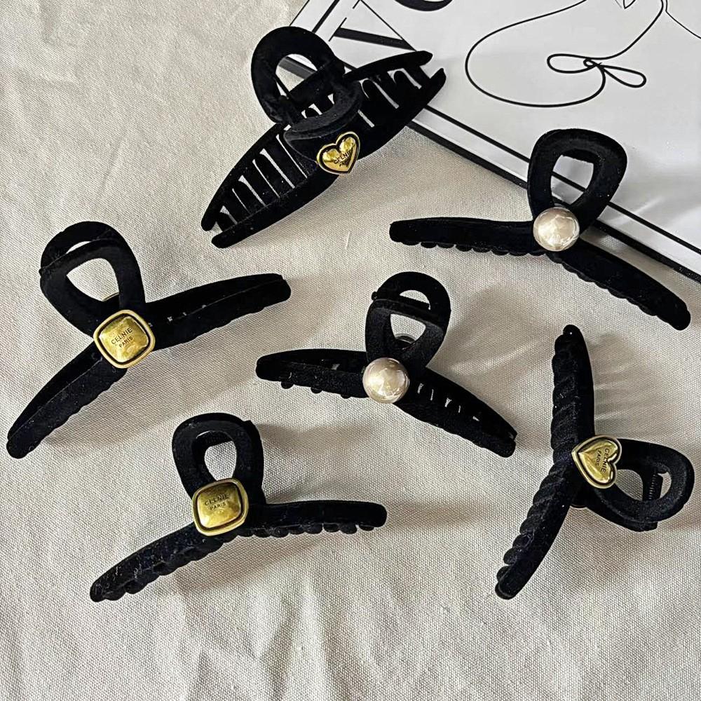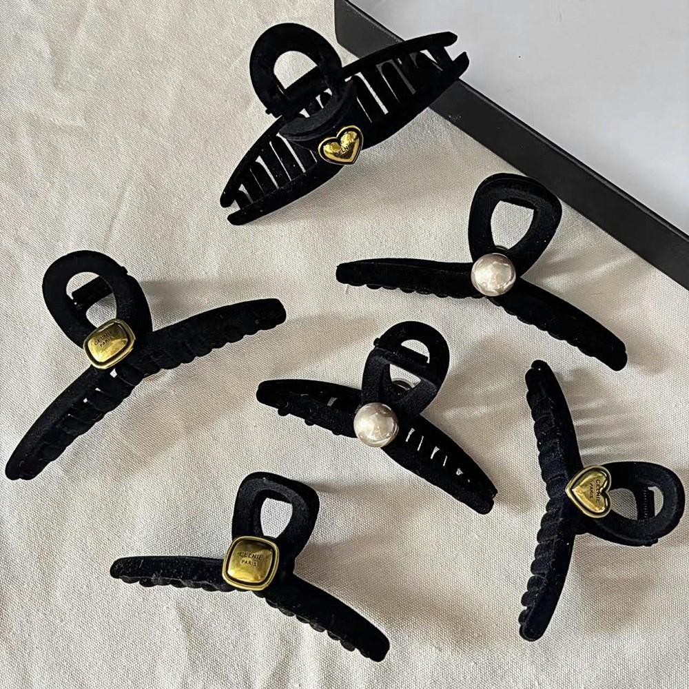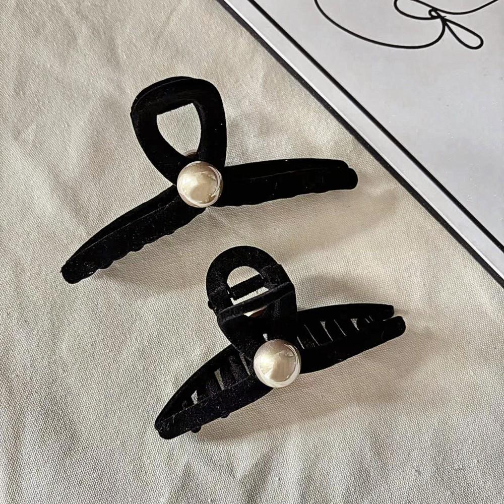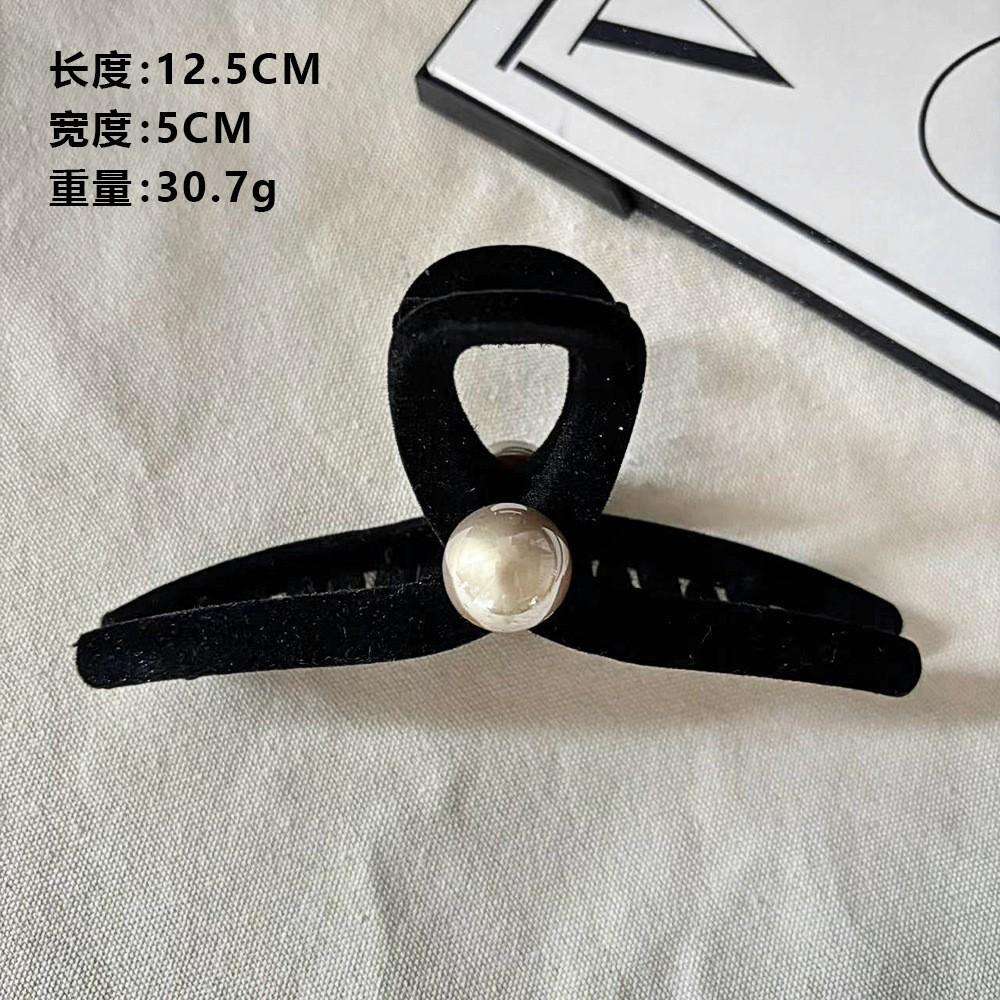 Horquilla de terciopelo negra para mujer, nueva moda de alta gama, gran horquilla para el pelo, con clip de tiburón y perla