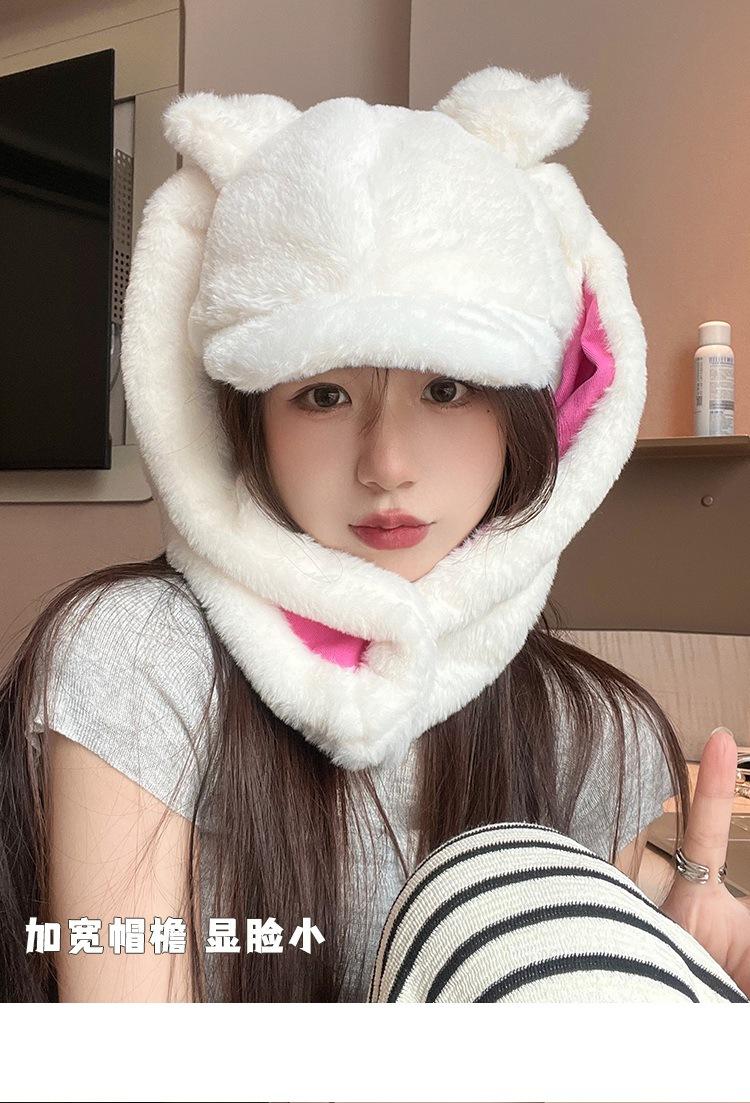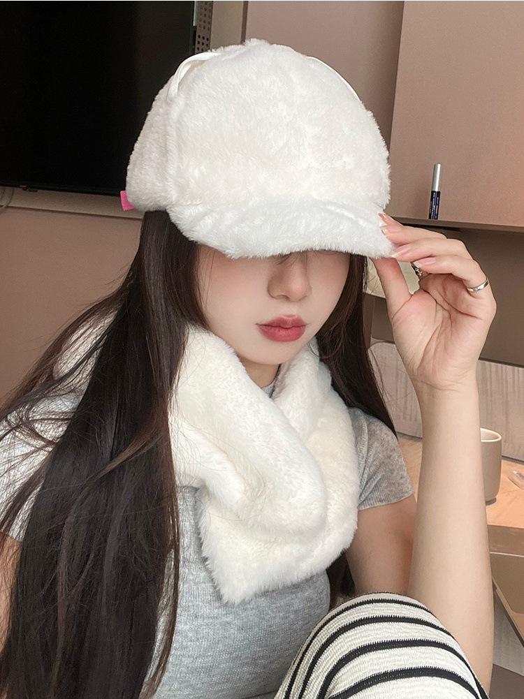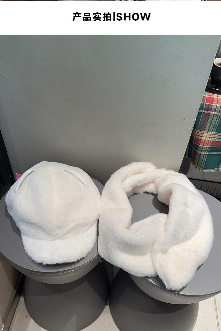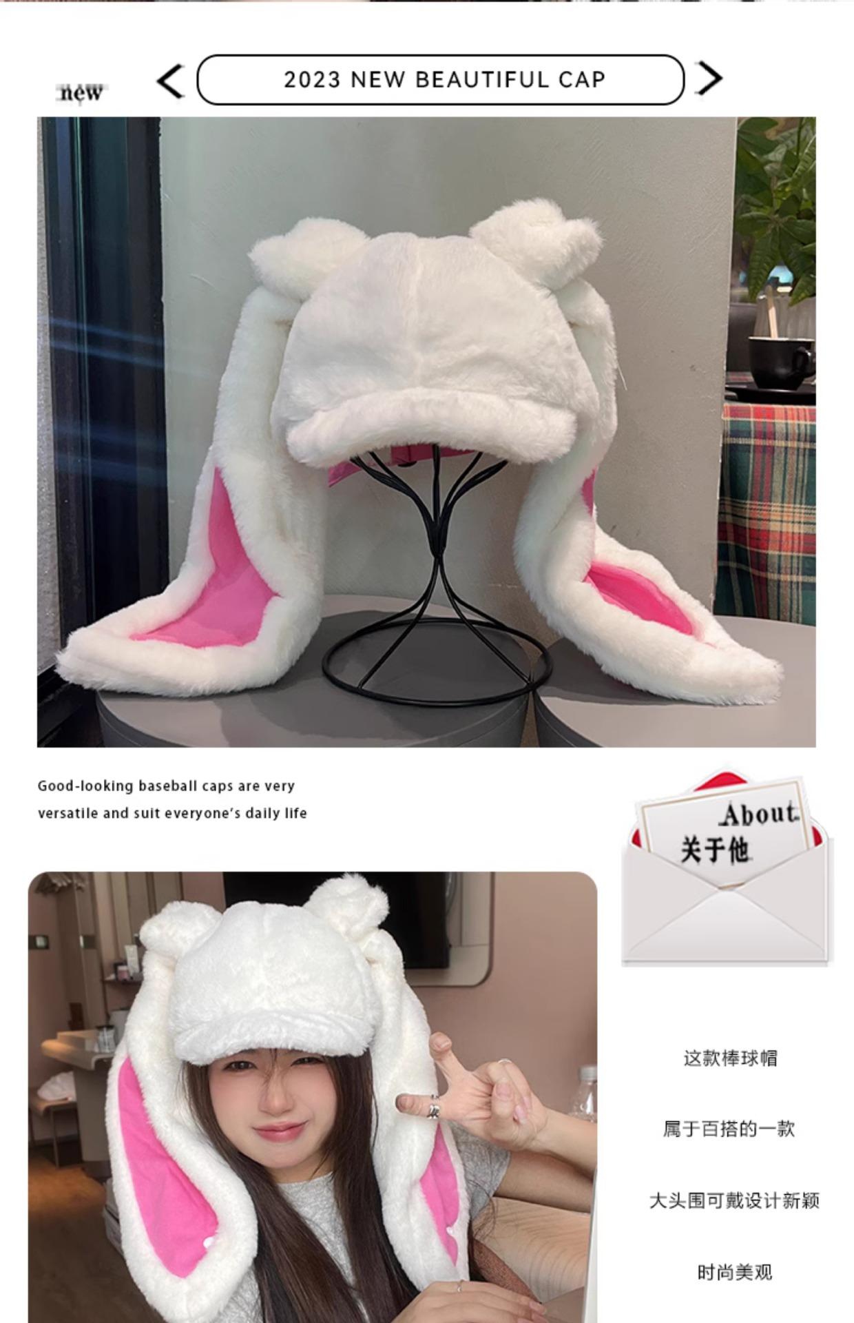 Gorra de Béisbol Gruesa de Felpa Cálida de Invierno para Mujer Desmontable con Orejas de Conejo para Cuello Sombrero de Doble Uso Dulce Lindo Conjunto de Dos Piezas