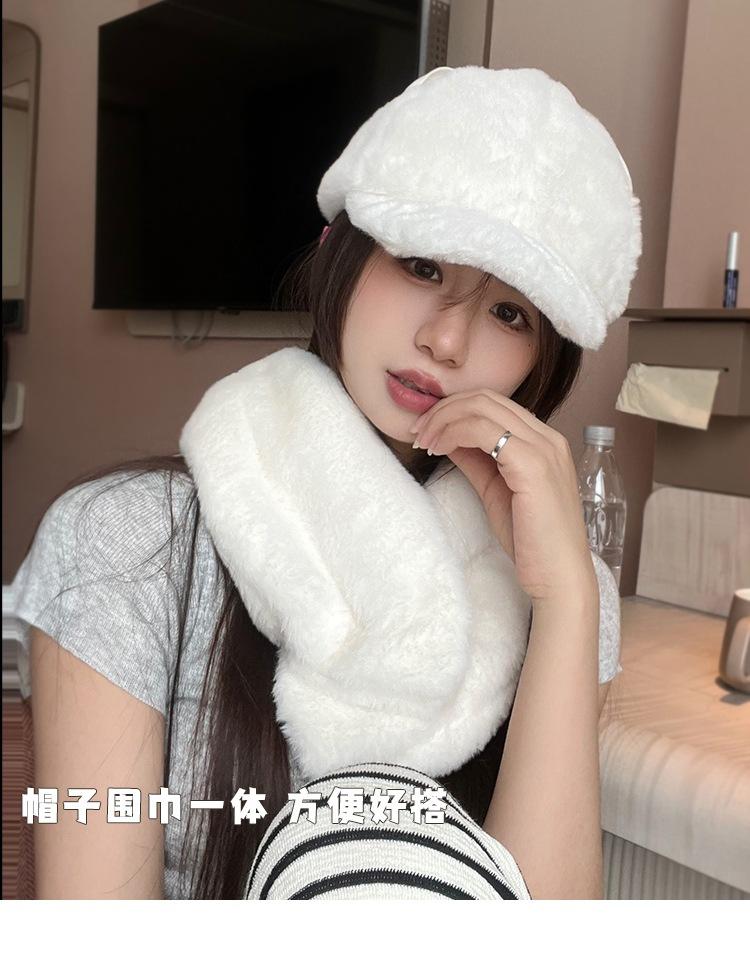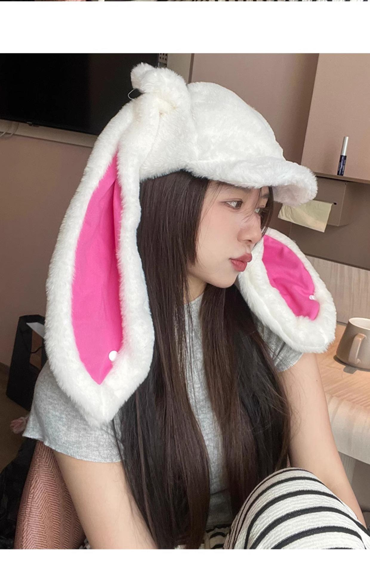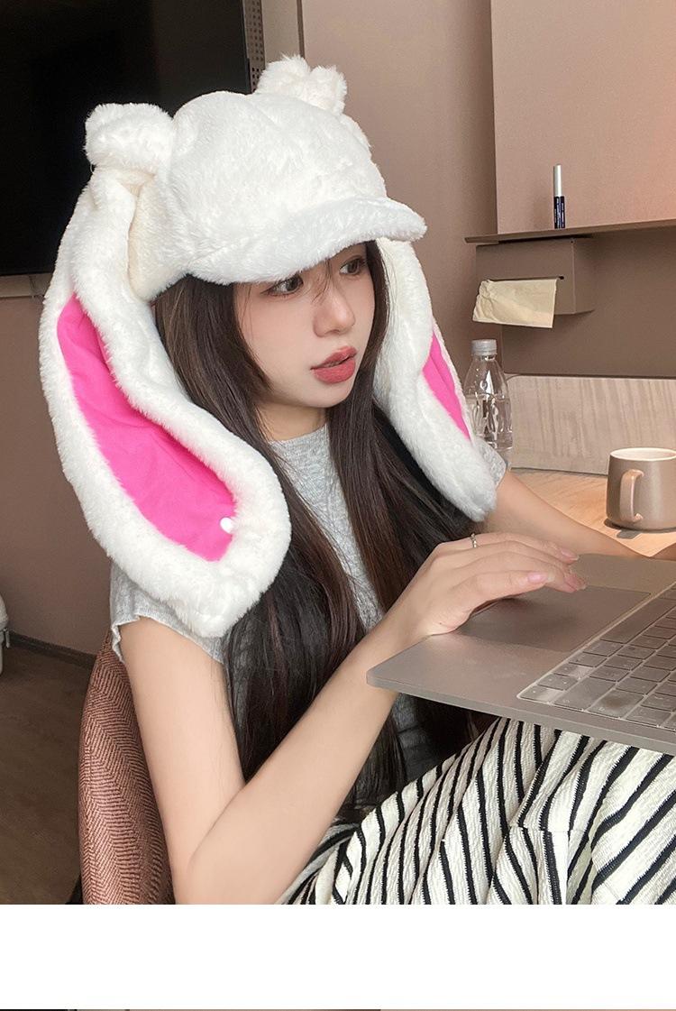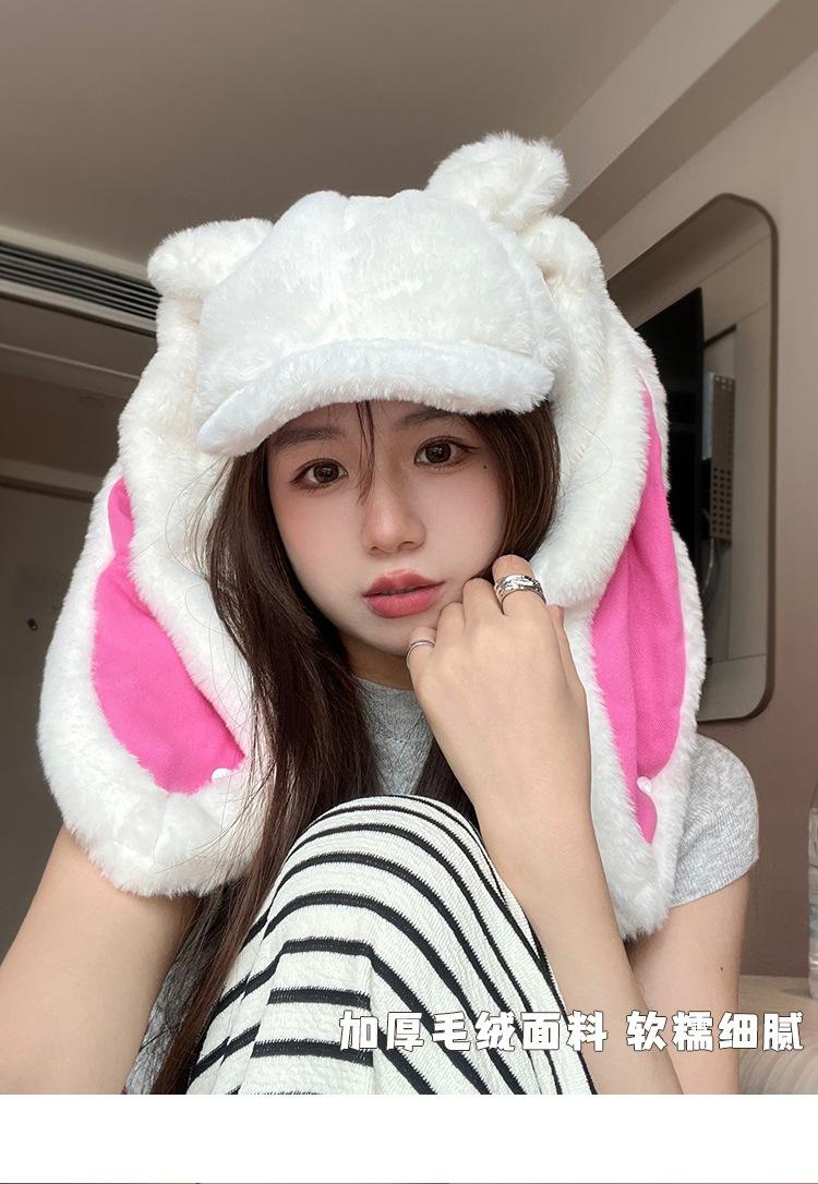 Gorra de Béisbol Gruesa de Felpa Cálida de Invierno para Mujer Desmontable con Orejas de Conejo para Cuello Sombrero de Doble Uso Dulce Lindo Conjunto de Dos Piezas