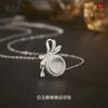 Collar con lazo de calcedonia en plata de ley 925, colgante de lazo de nicho de moda nacional, cadena de clavícula sencilla y ligera de lujo.