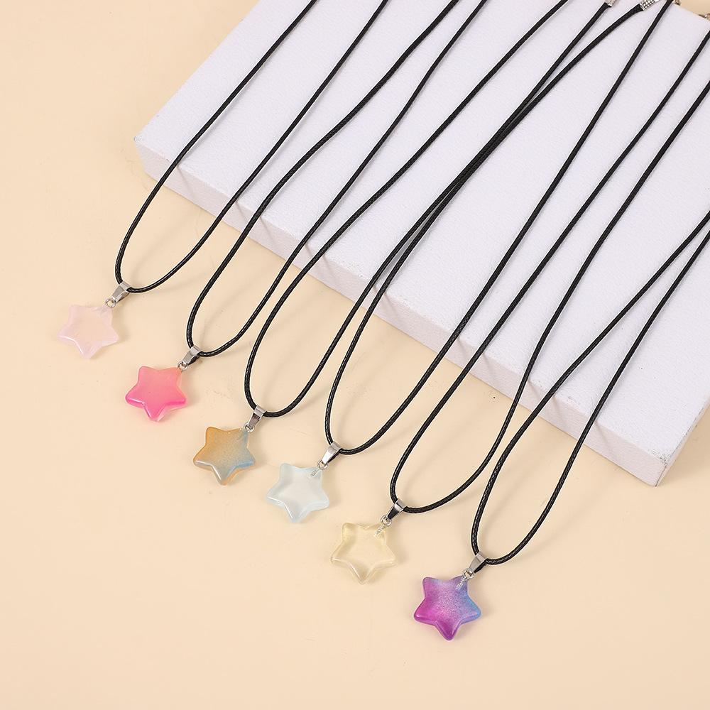 Collar de estrella de cinco puntas transfronterizo, cadena de clavícula de color multicolor, colgante de piedra natural de cristal al por mayor, collar de personalidad de estrella