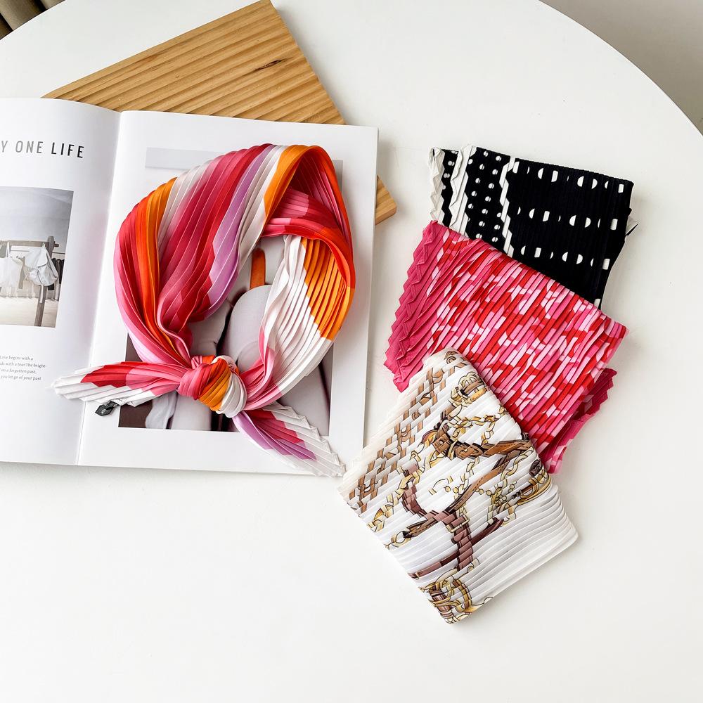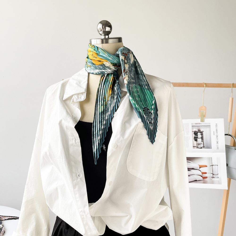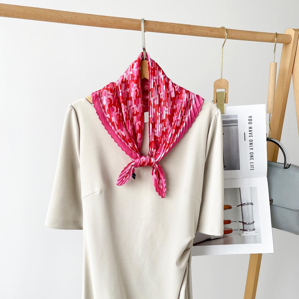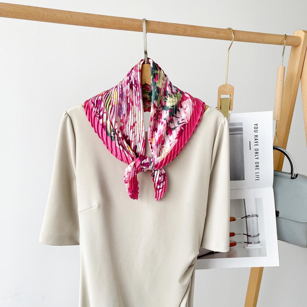 Nuevo Pañuelo de Seda Plisado Pañuelo Cuadrado Pequeño 70cm Pañuelo de Seda Pequeño Estampado Nuevo Pañuelo de Mujer Pañuelo de Satén Plisado Venta al por Mayor