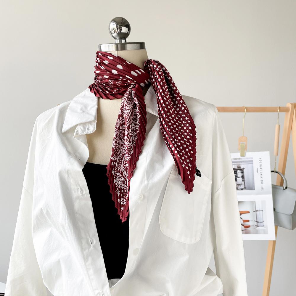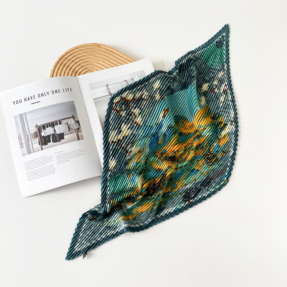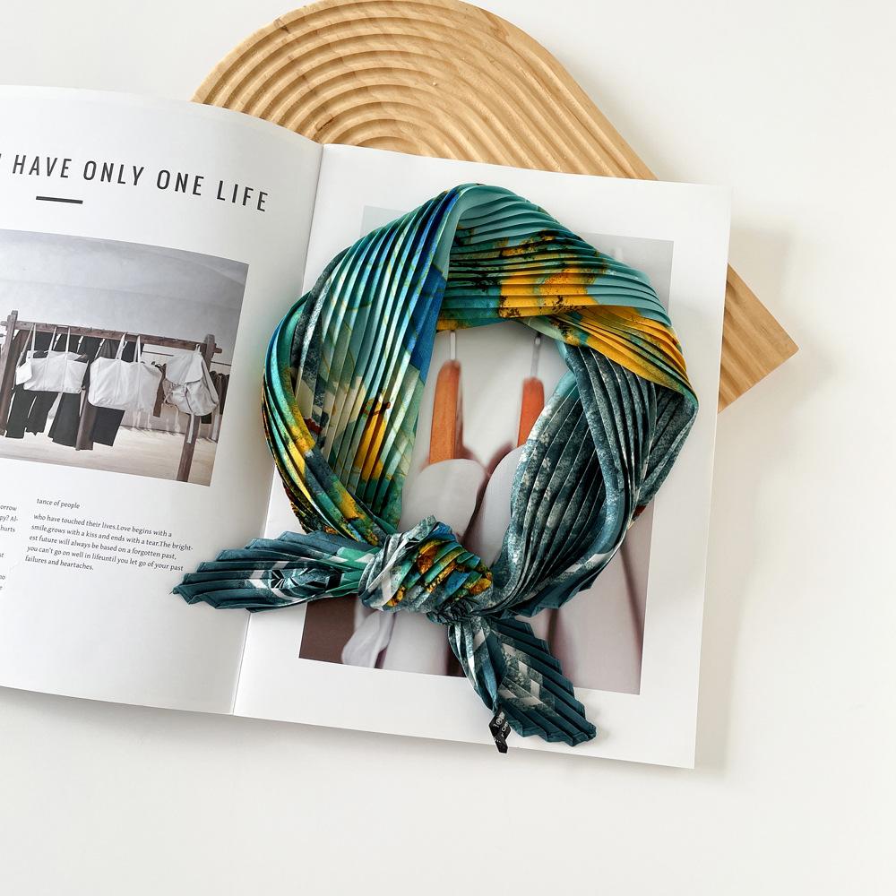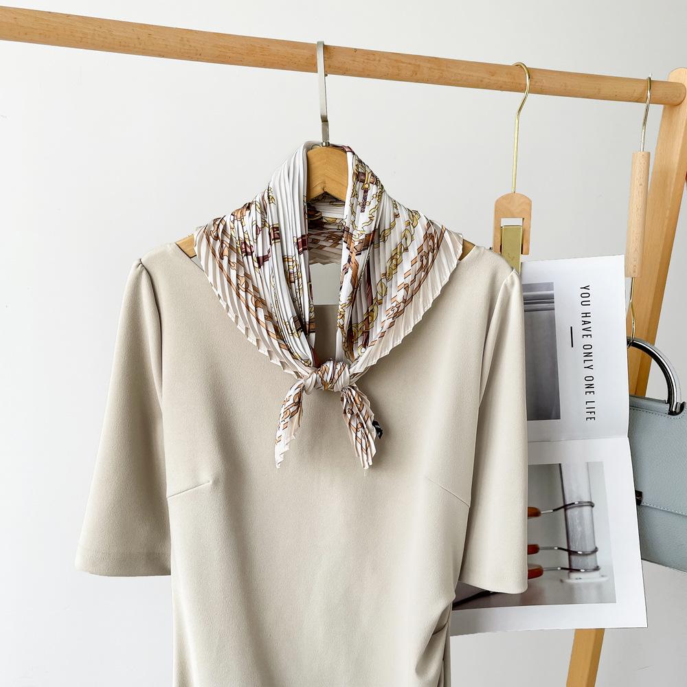 Nuevo Pañuelo de Seda Plisado Pañuelo Cuadrado Pequeño 70cm Pañuelo de Seda Pequeño Estampado Nuevo Pañuelo de Mujer Pañuelo de Satén Plisado Venta al por Mayor