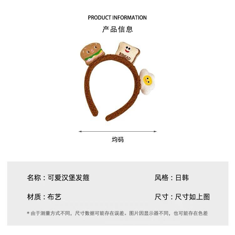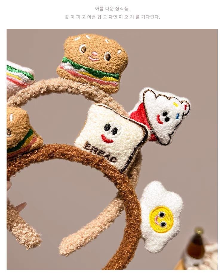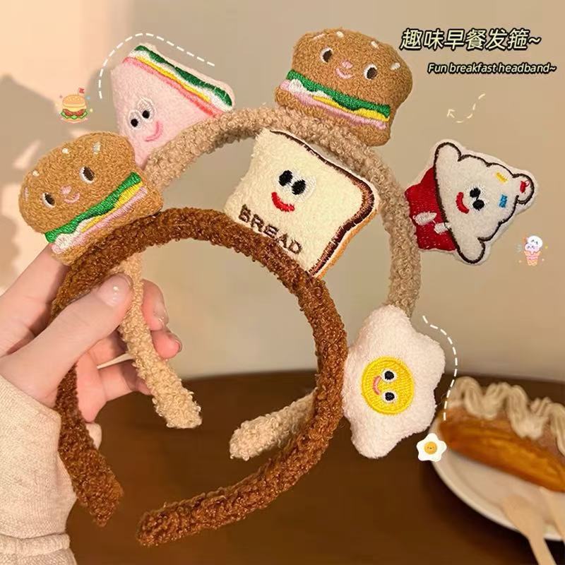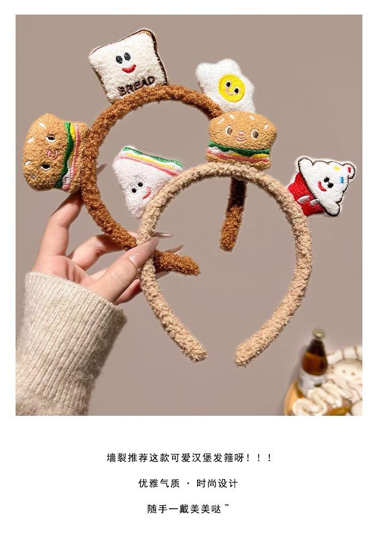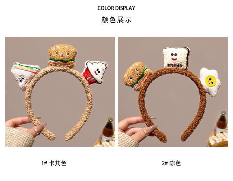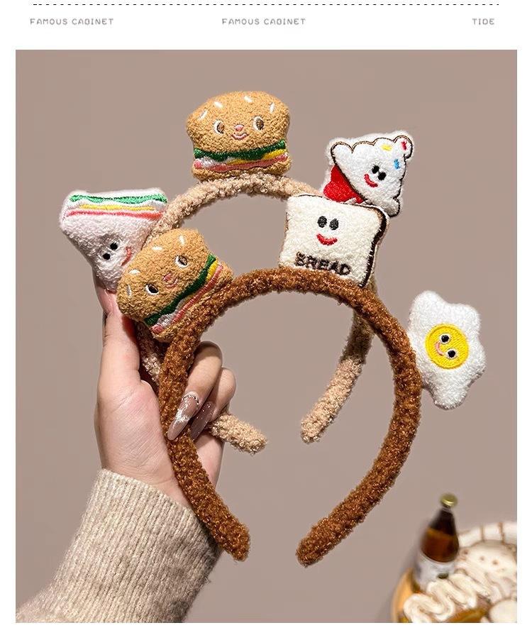 Diadema profesional para lavarse la cara de otoño e invierno para mujer 2025, nueva y linda diadema de felpa con forma de hamburguesa y sándwich, diadema de felpa antideslizante