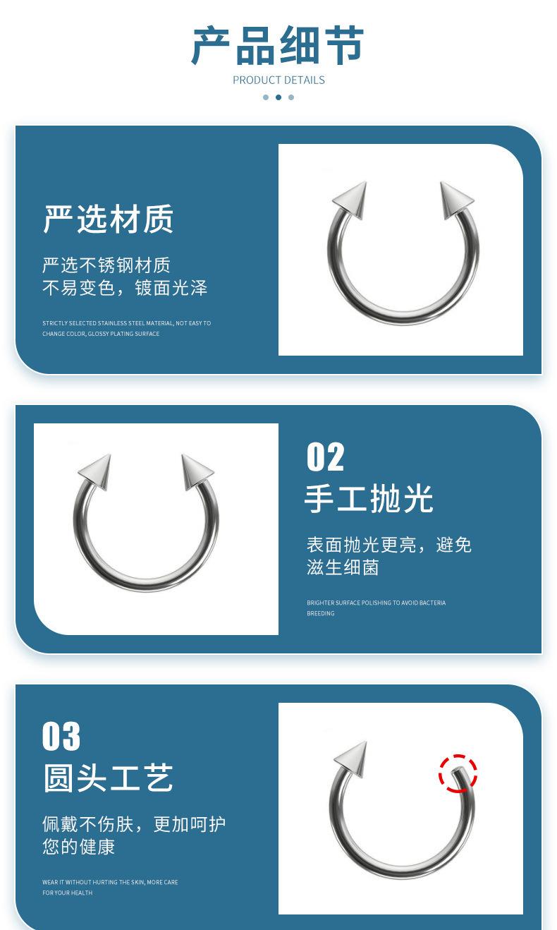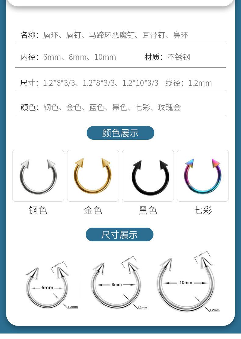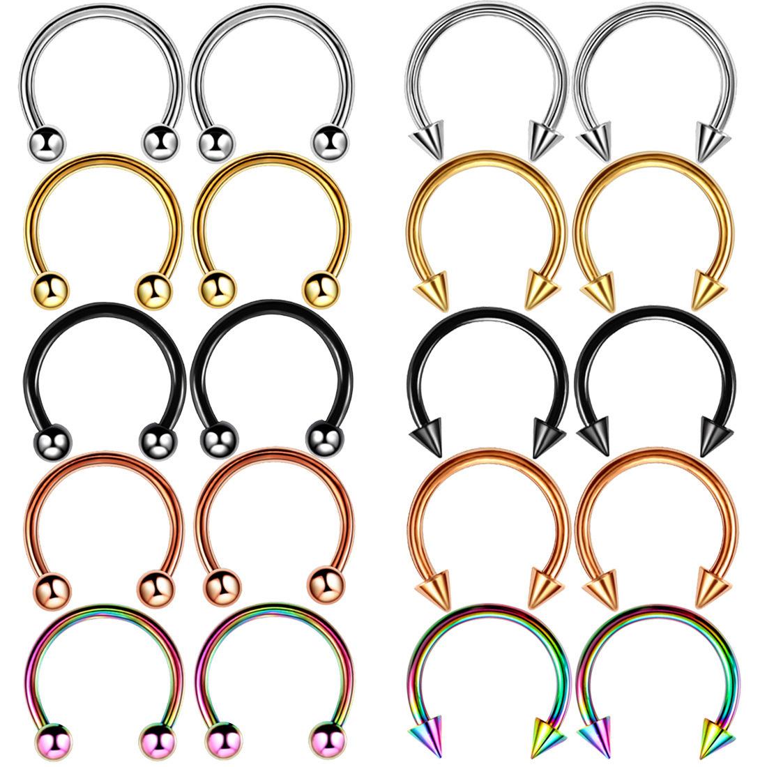 Piercing estilo europeo y americano acero inoxidable básico anillo labial en U anillo para la nariz anillo de herradura para chica hot uña de diablo uña para hueso de la oreja punk