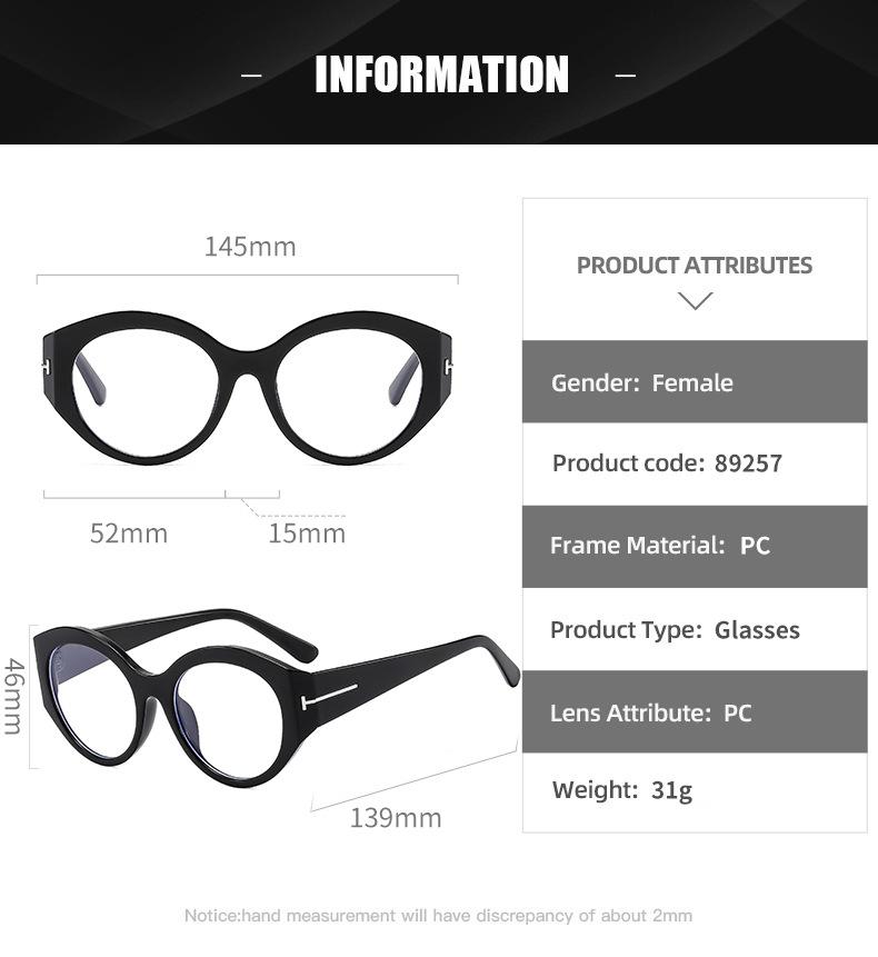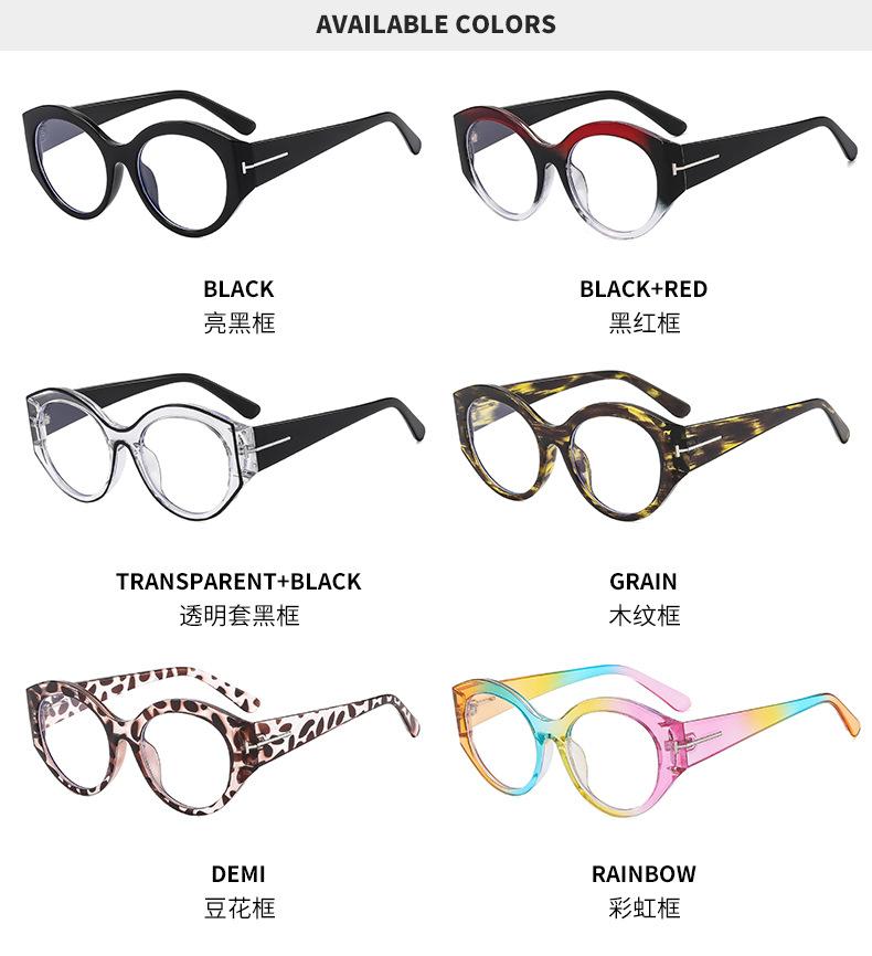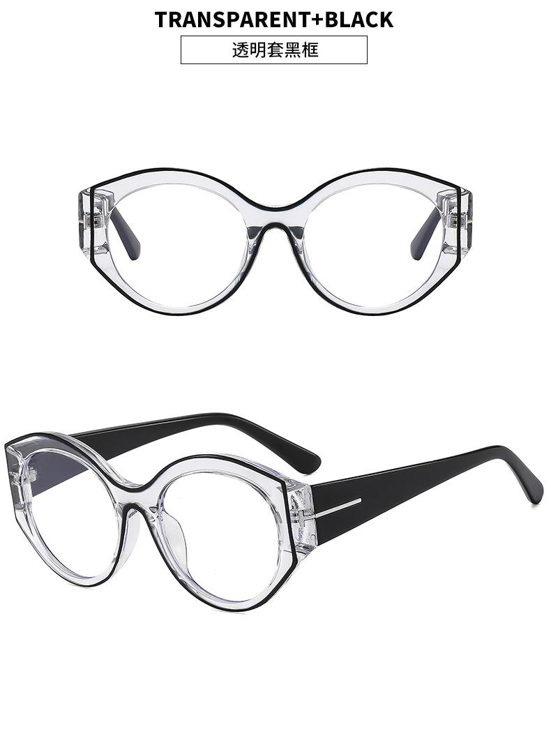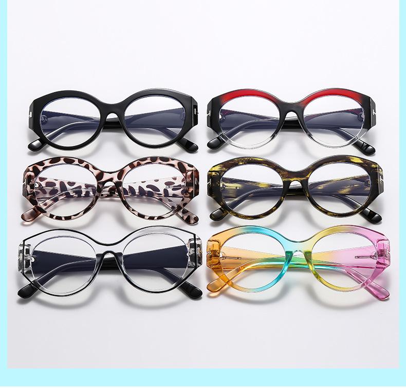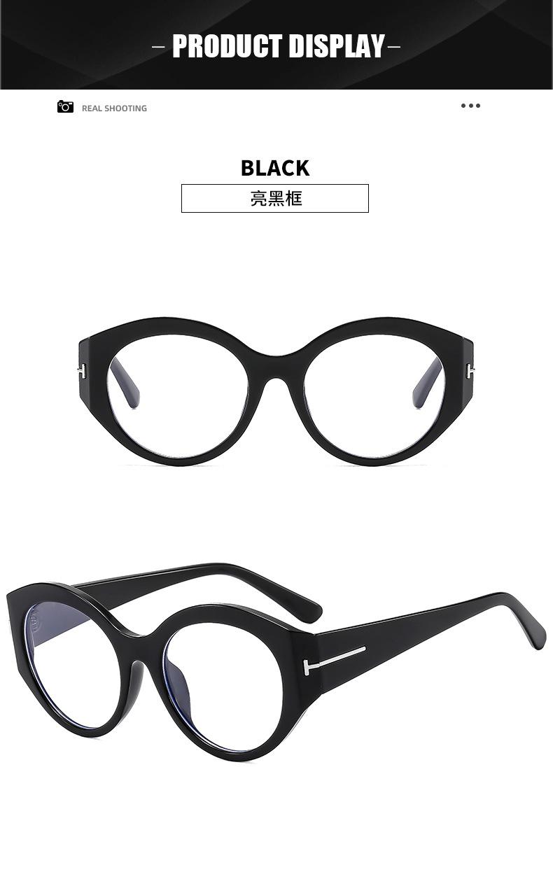 Gafas antiazules transfronterizas para mujer, montura ovalada, montura negra, montura de gafas, moda, combina con todo, internet, gafas planas populares europeas y americanas.