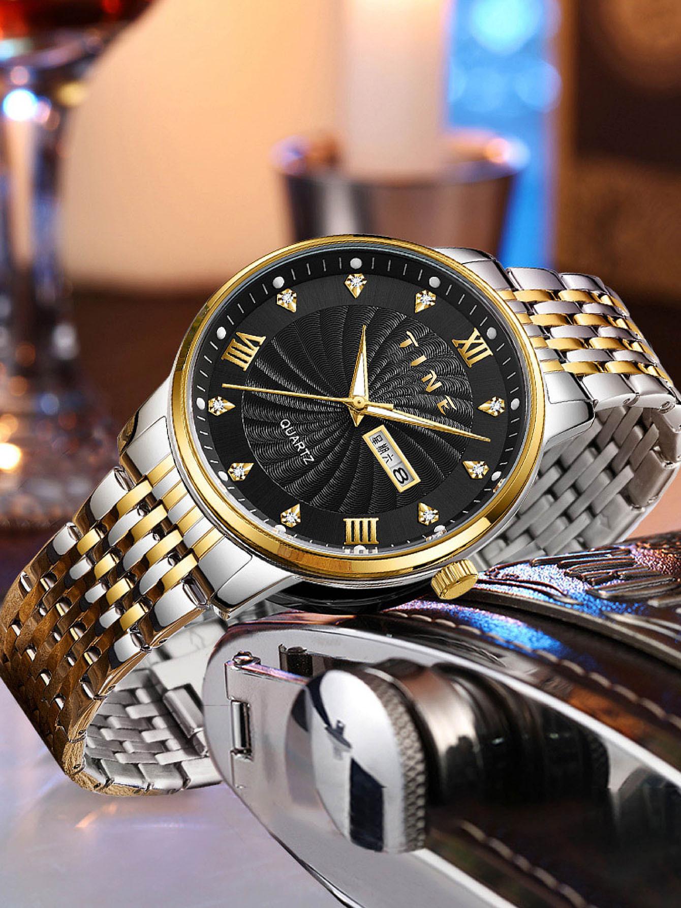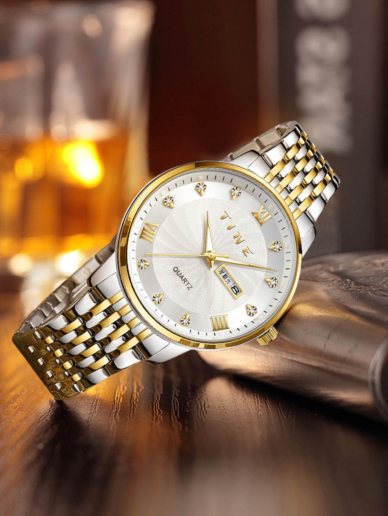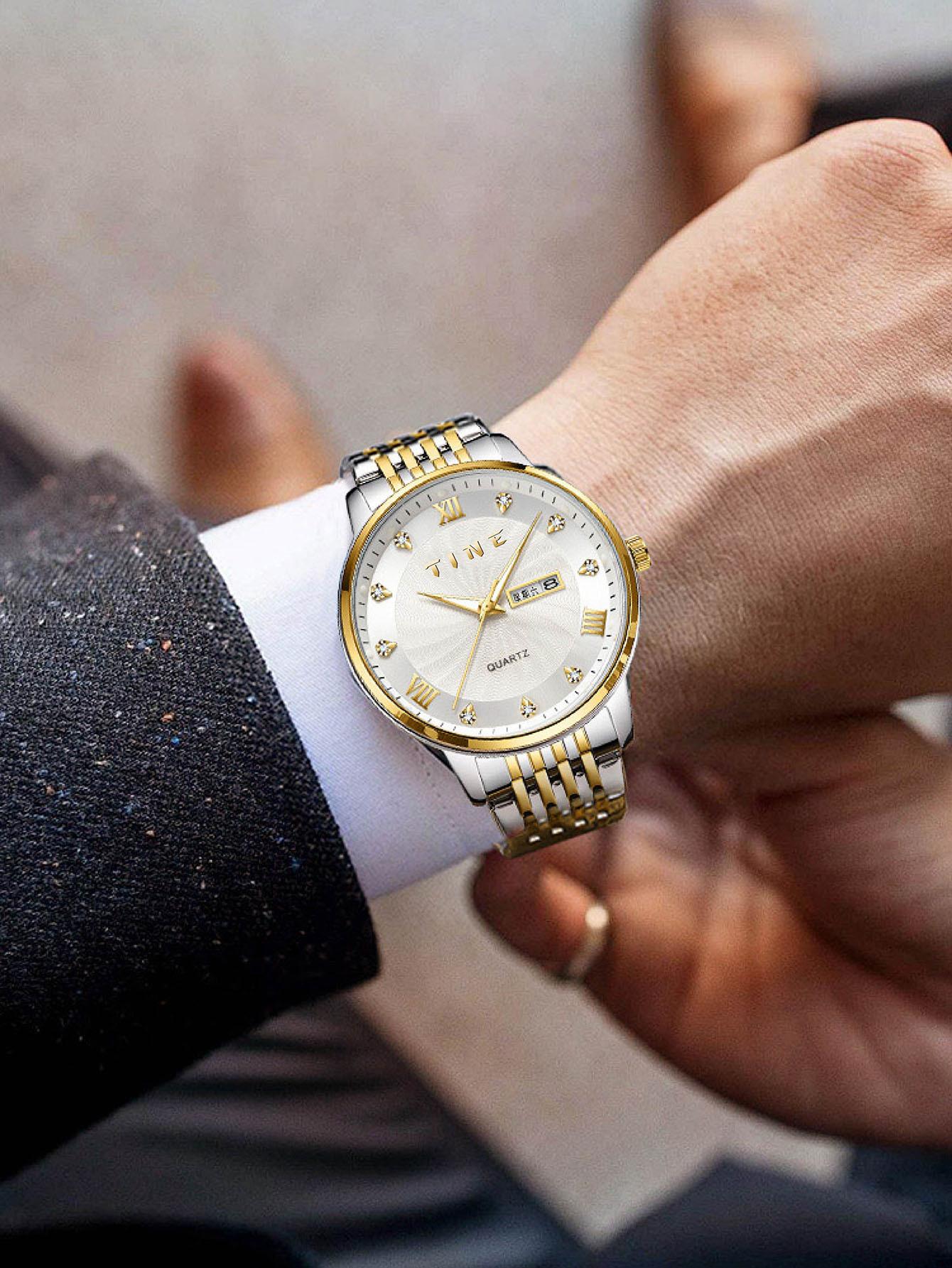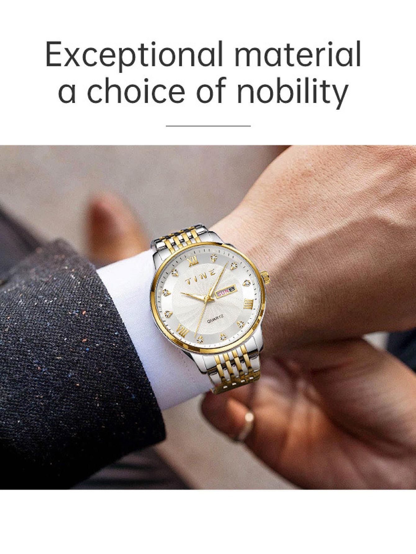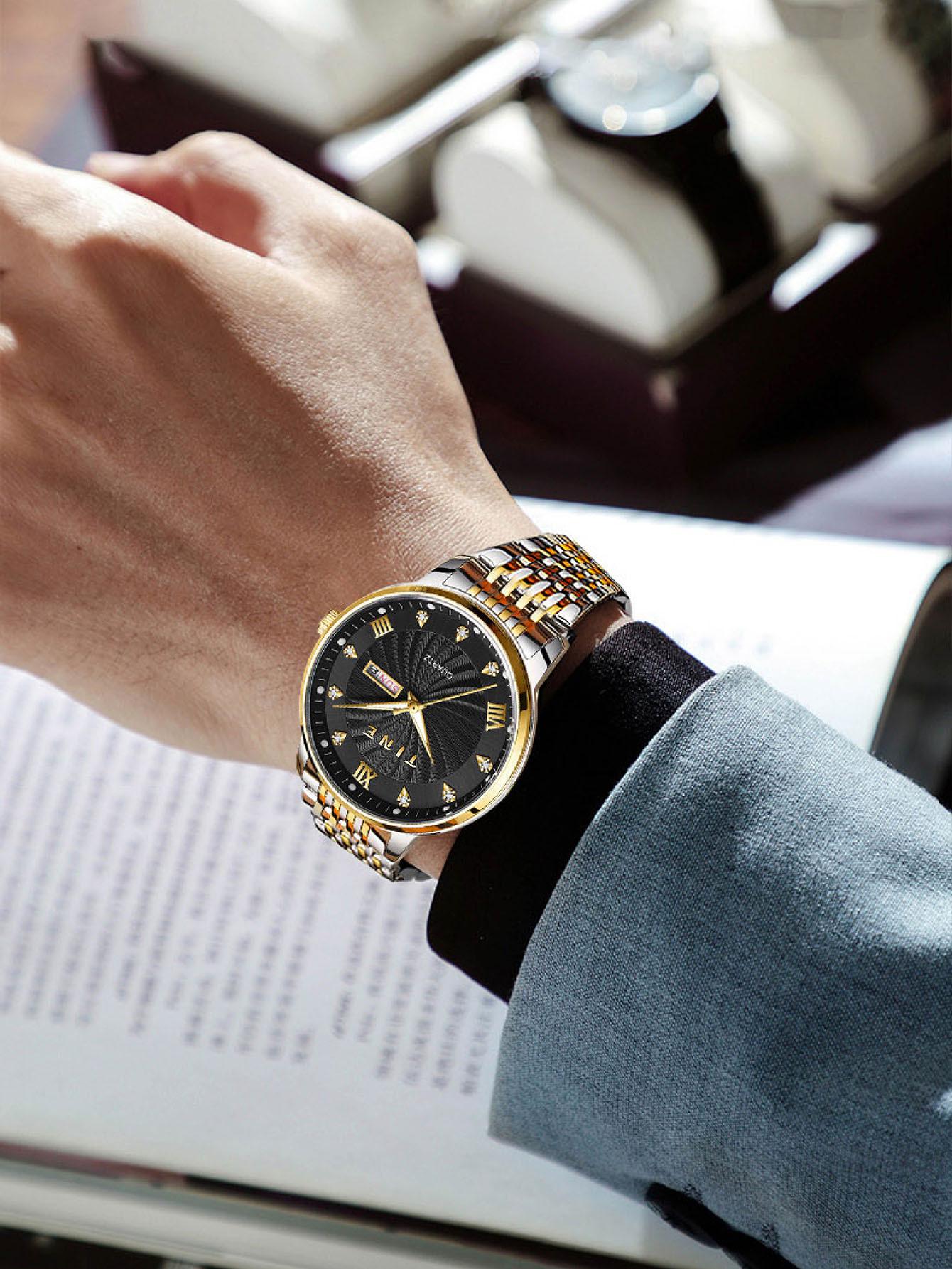 Reloj de Cuarzo con Cadena de Metal de Marca Moda de Negocios Cuarzo para Hombre Calendario Impermeable Luminoso Banda de Acero Reloj de Esfera Grande