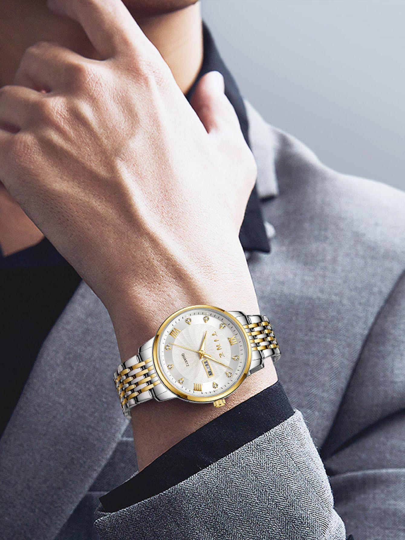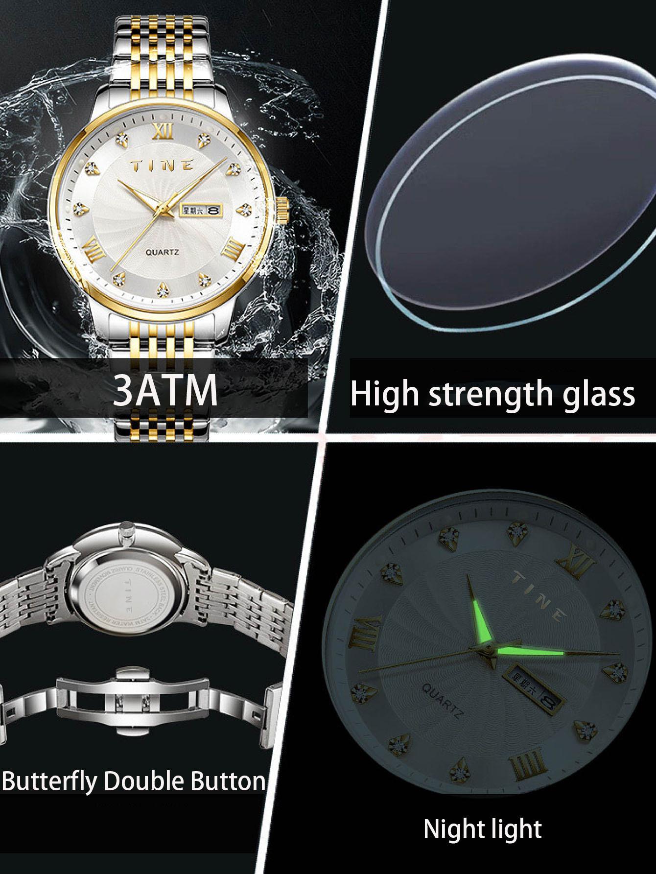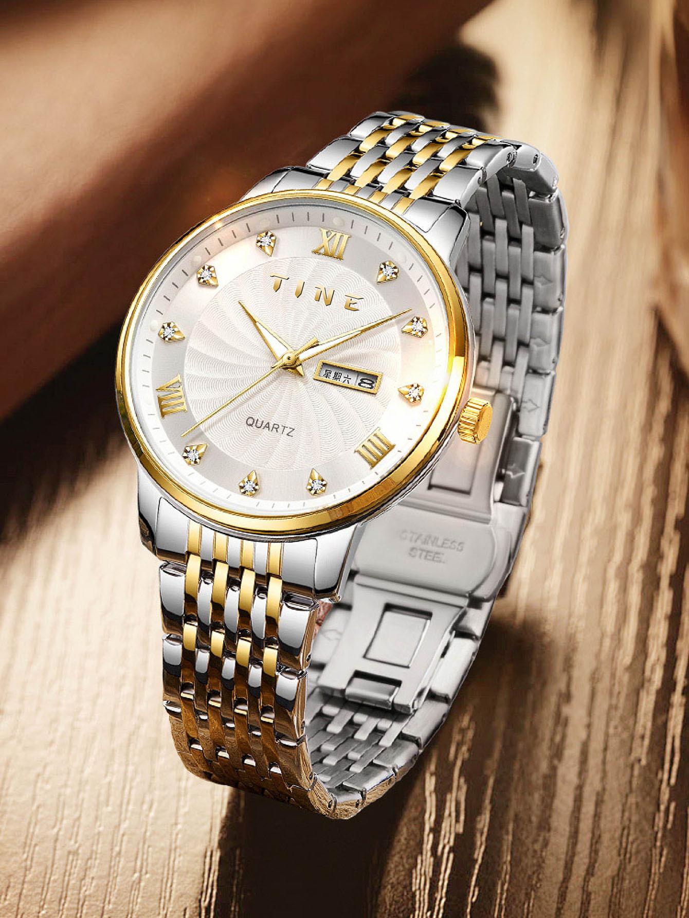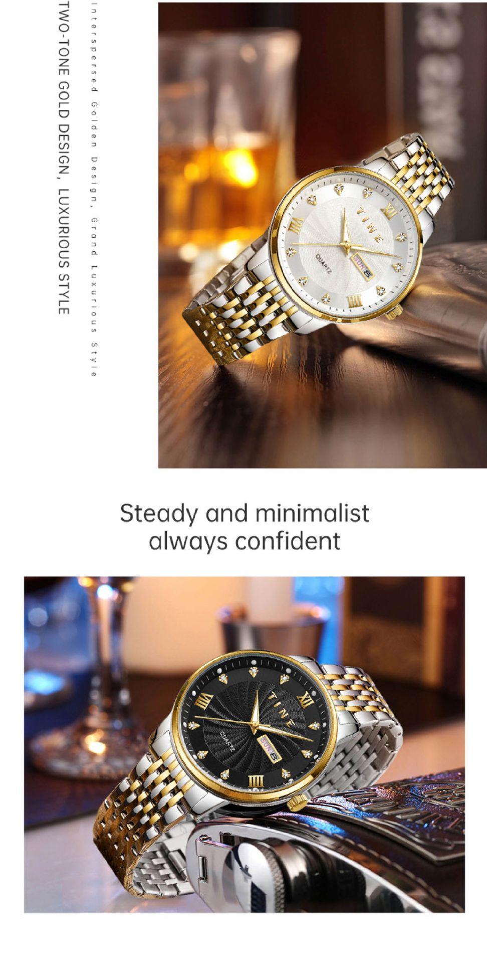 Reloj de Cuarzo con Cadena de Metal de Marca Moda de Negocios Cuarzo para Hombre Calendario Impermeable Luminoso Banda de Acero Reloj de Esfera Grande