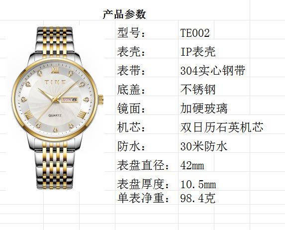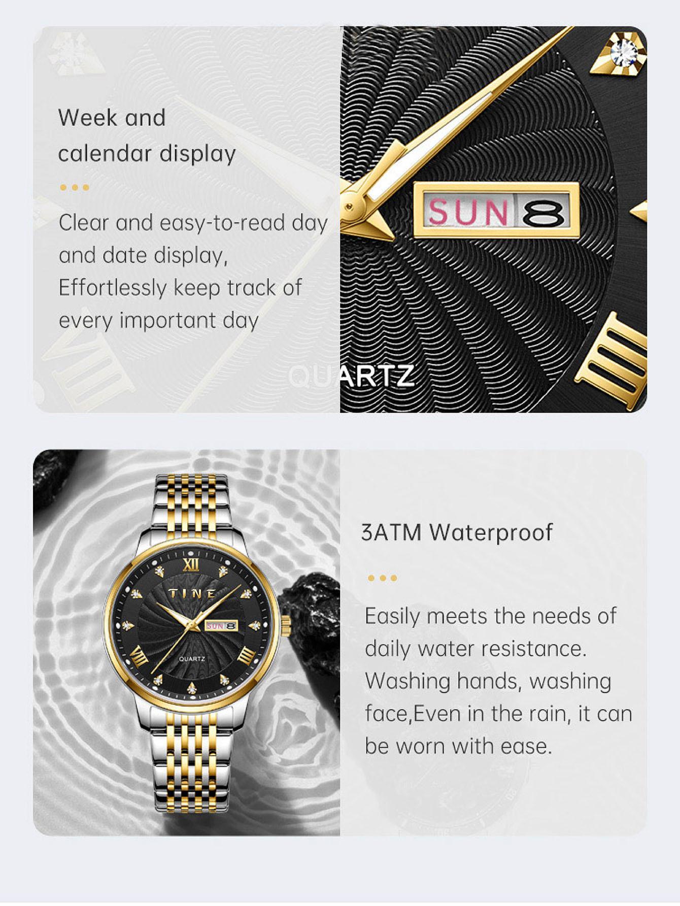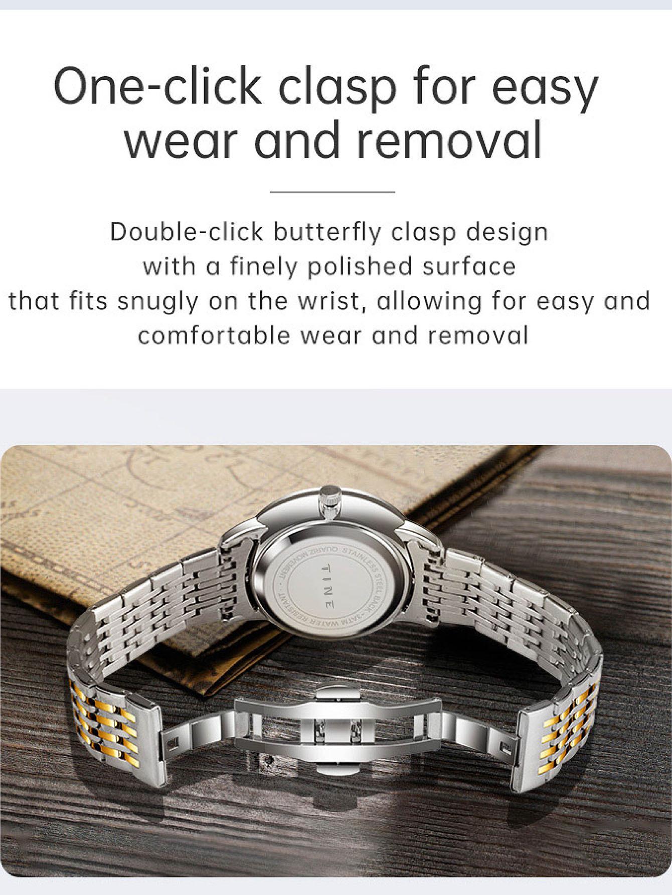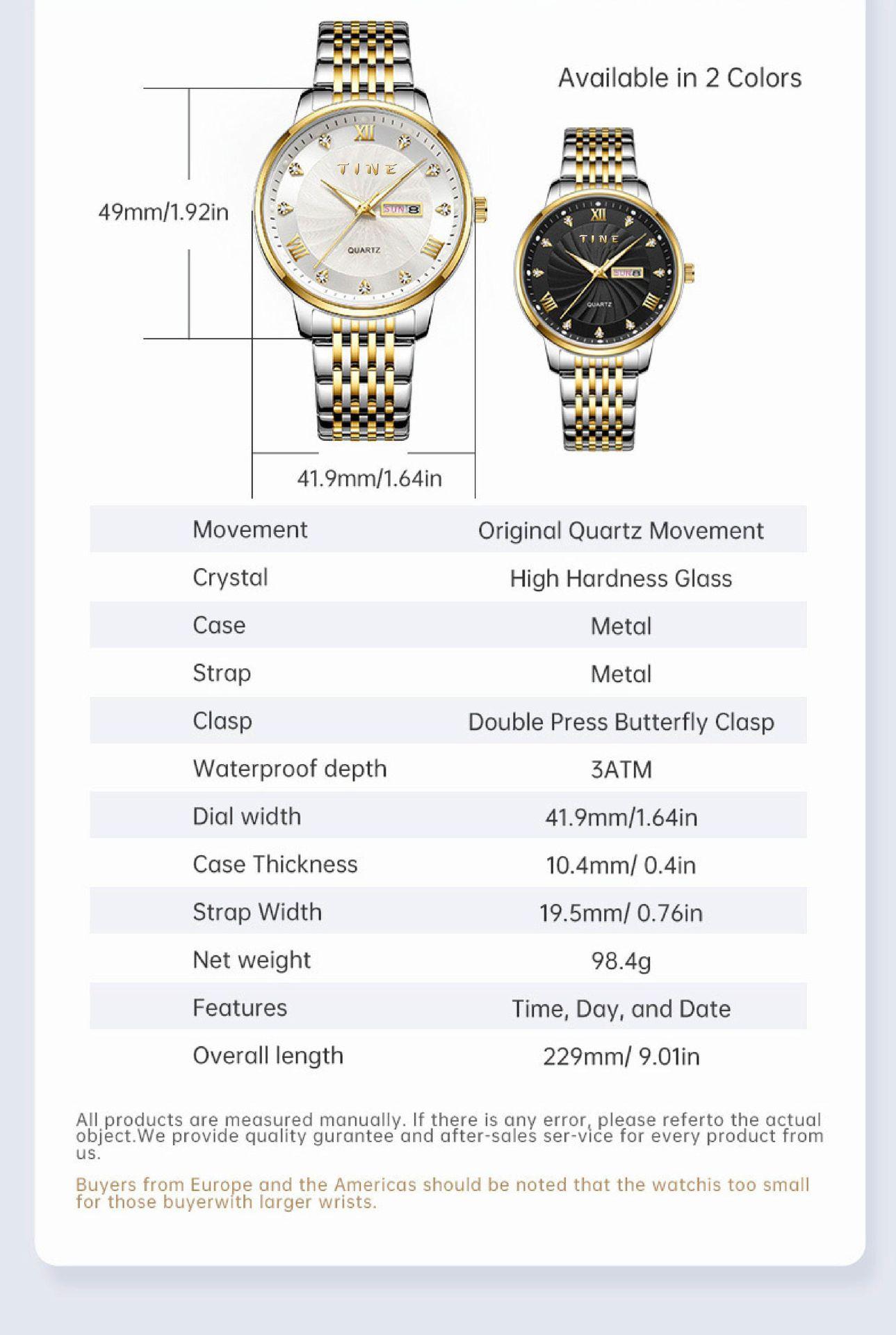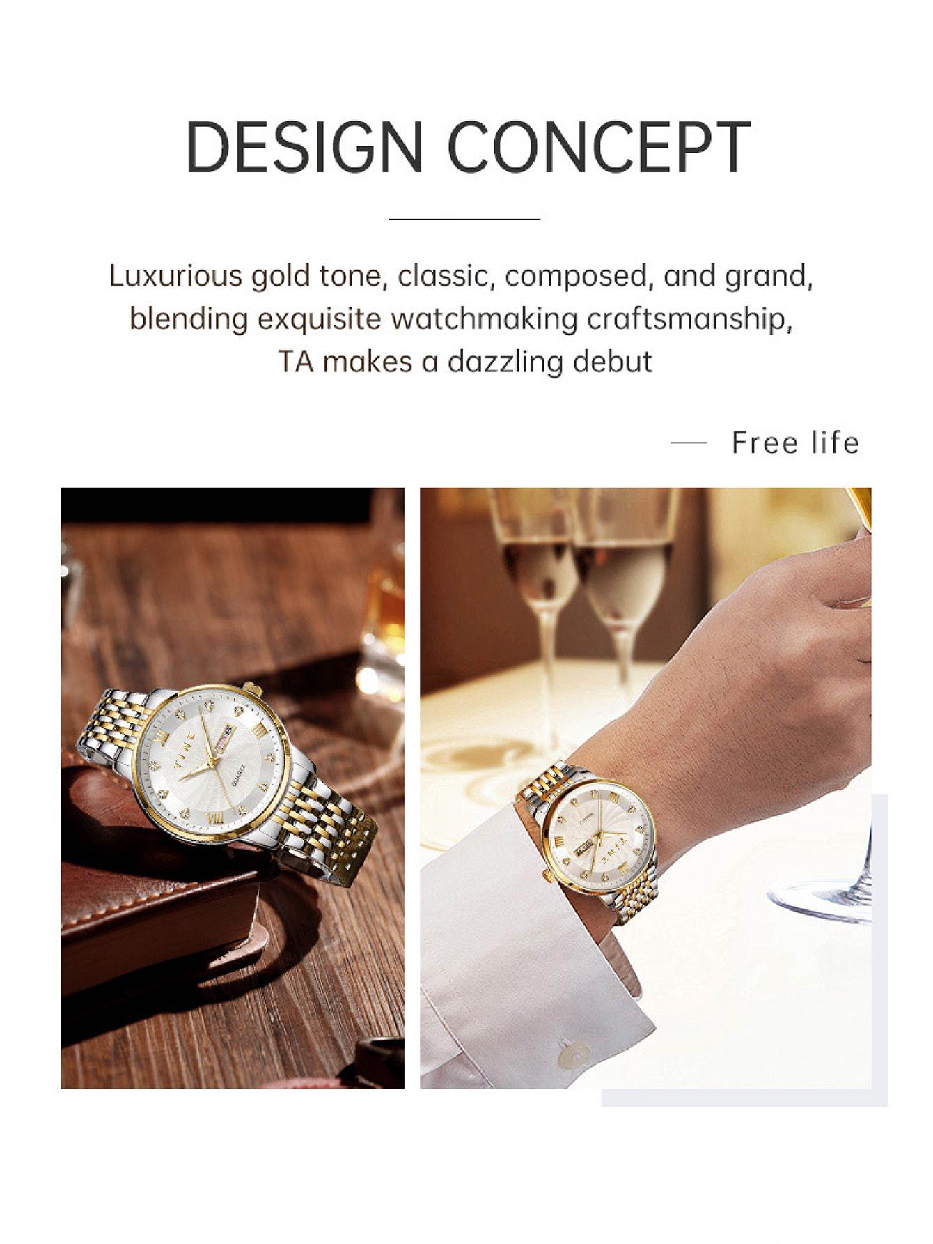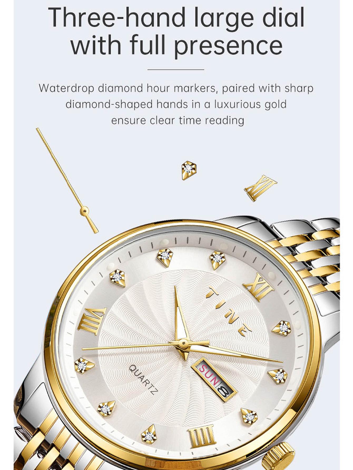Reloj de Cuarzo con Cadena de Metal de Marca Moda de Negocios Cuarzo para Hombre Calendario Impermeable Luminoso Banda de Acero Reloj de Esfera Grande