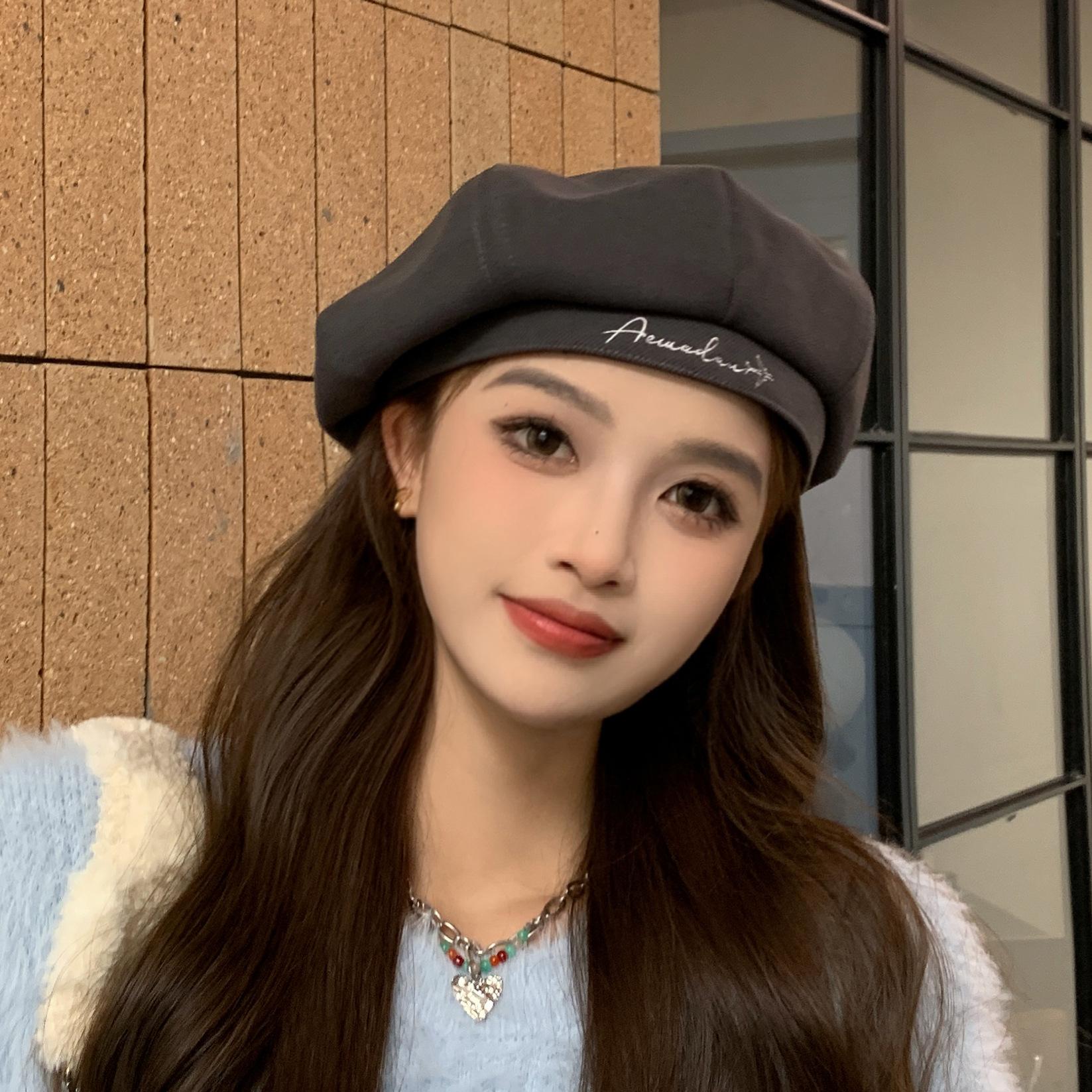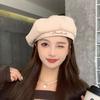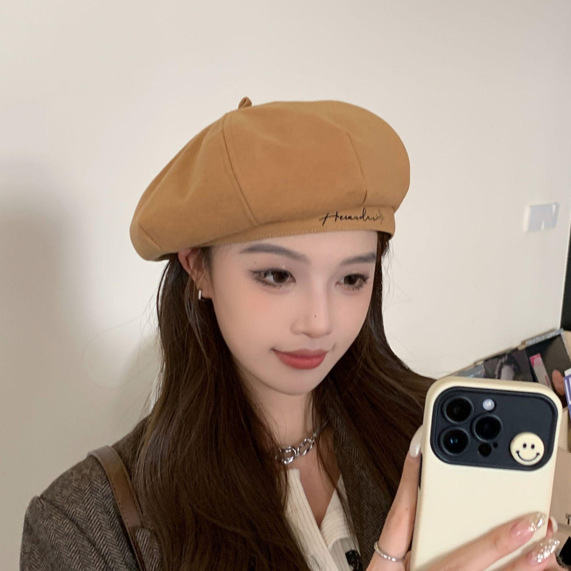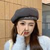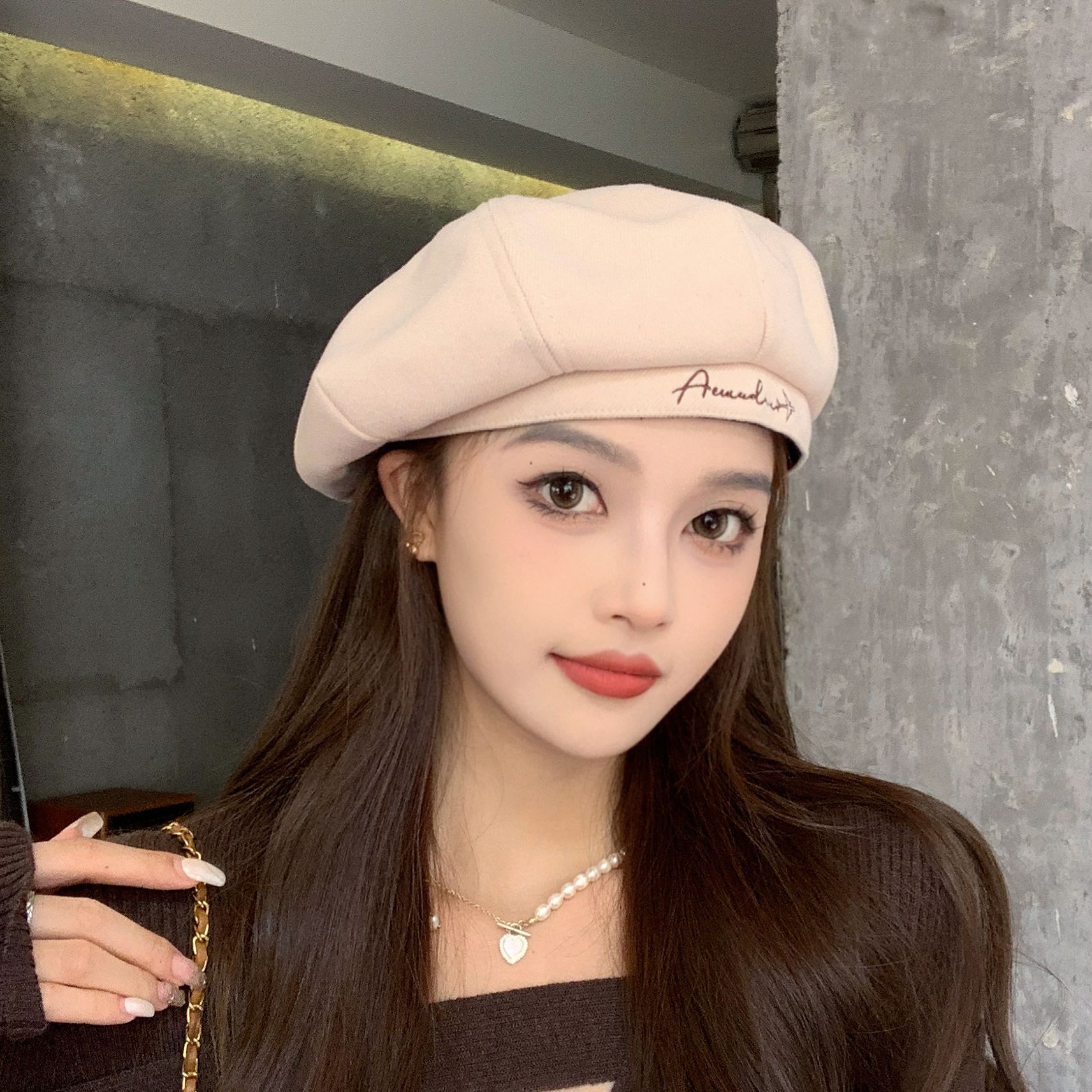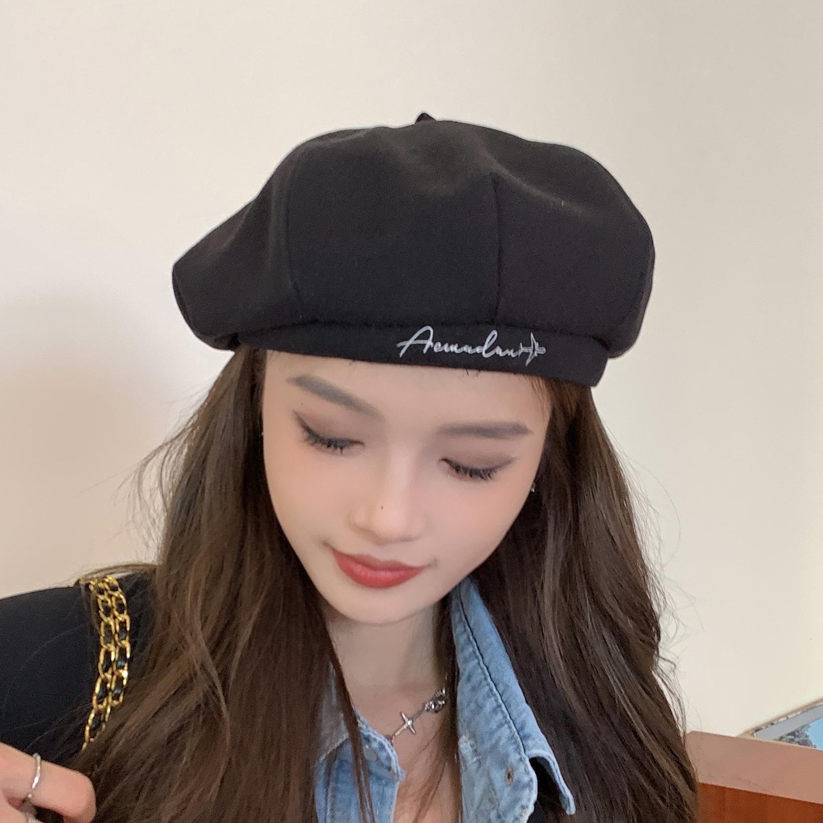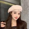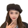Boina de lana bordada con letras de estilo japonés para mujer, gorro de pintor informal, combinable con todo, elegante, para invierno