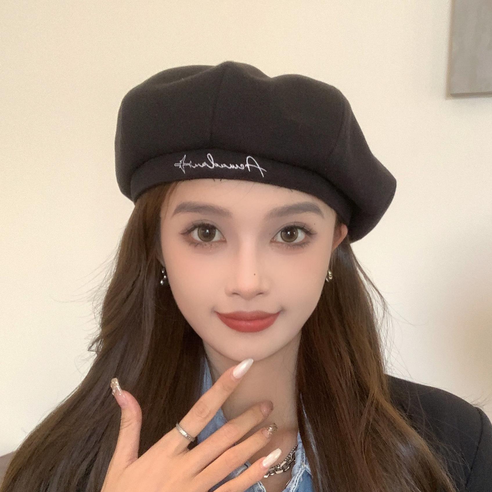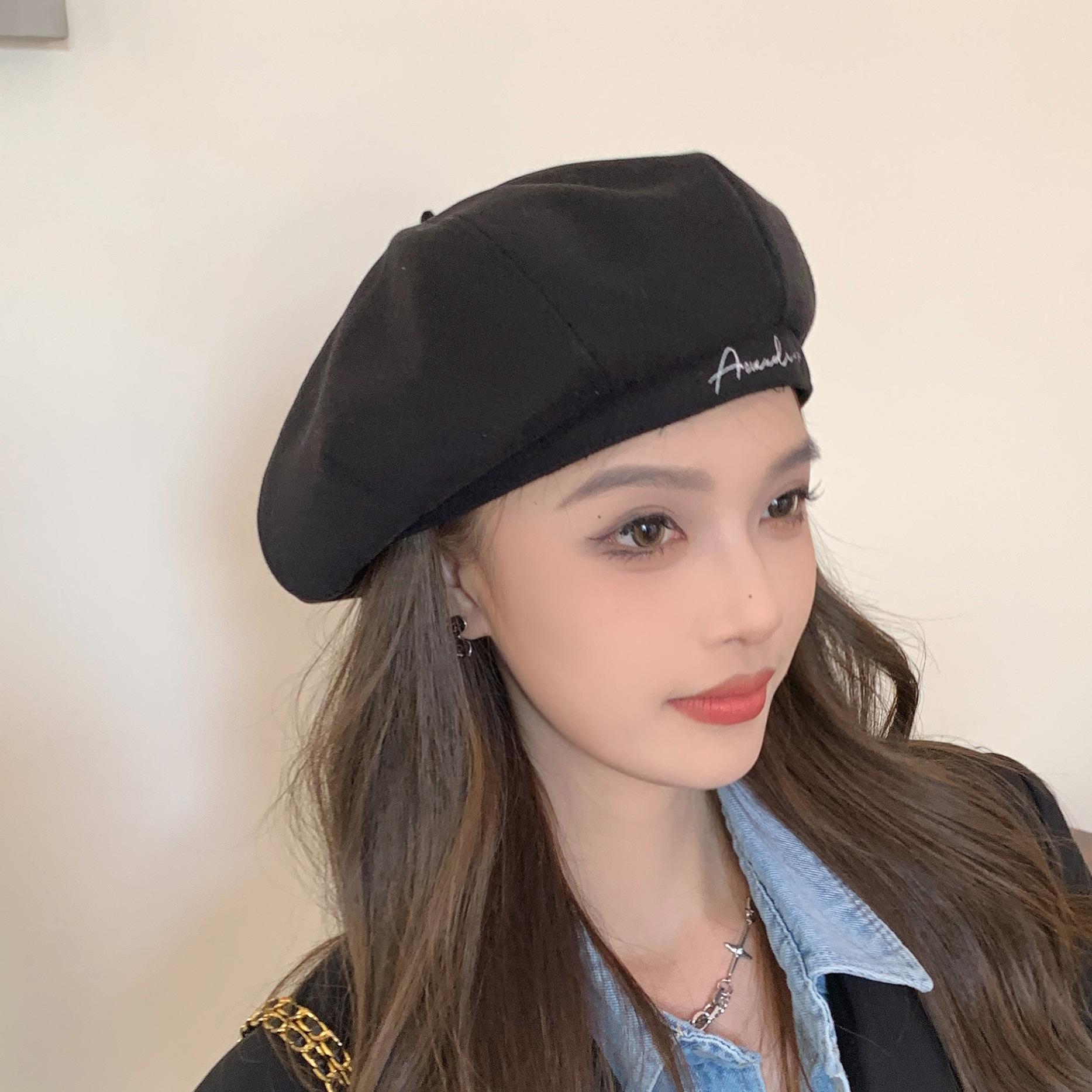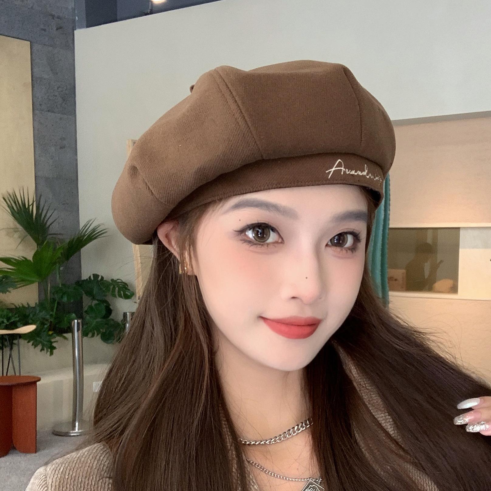 Boina de lana bordada con letras de estilo japonés para mujer, gorro de pintor informal, combinable con todo, elegante, para invierno