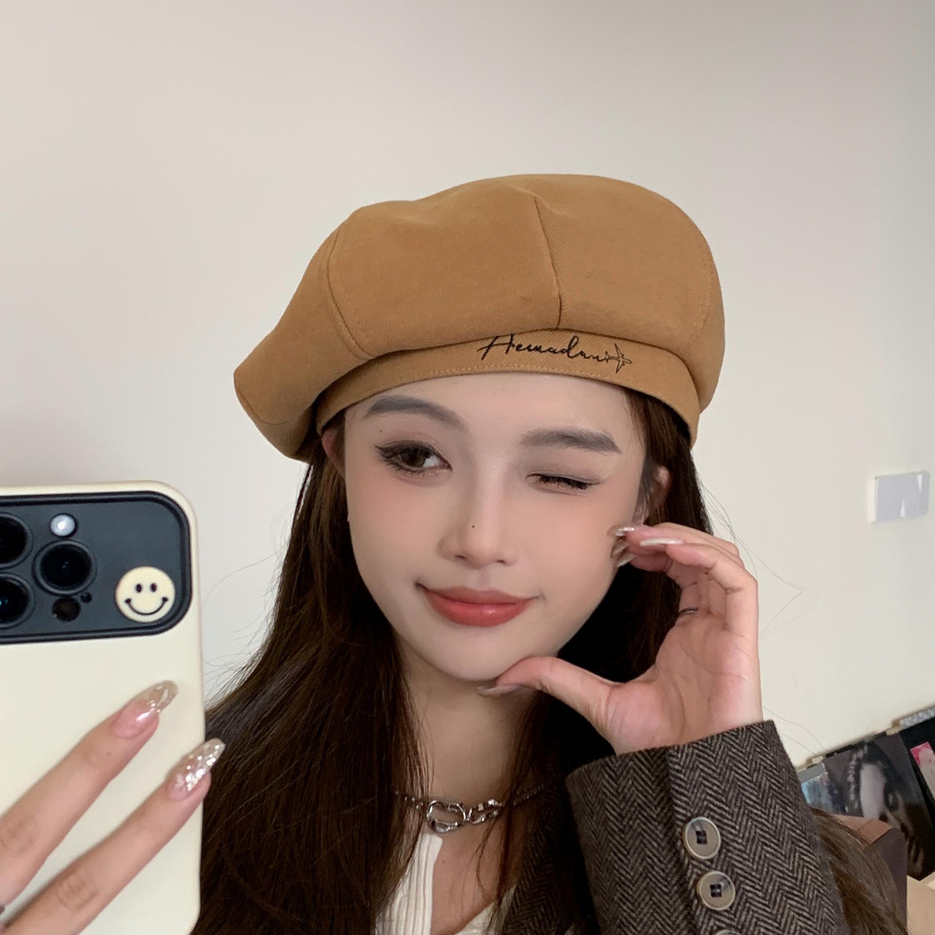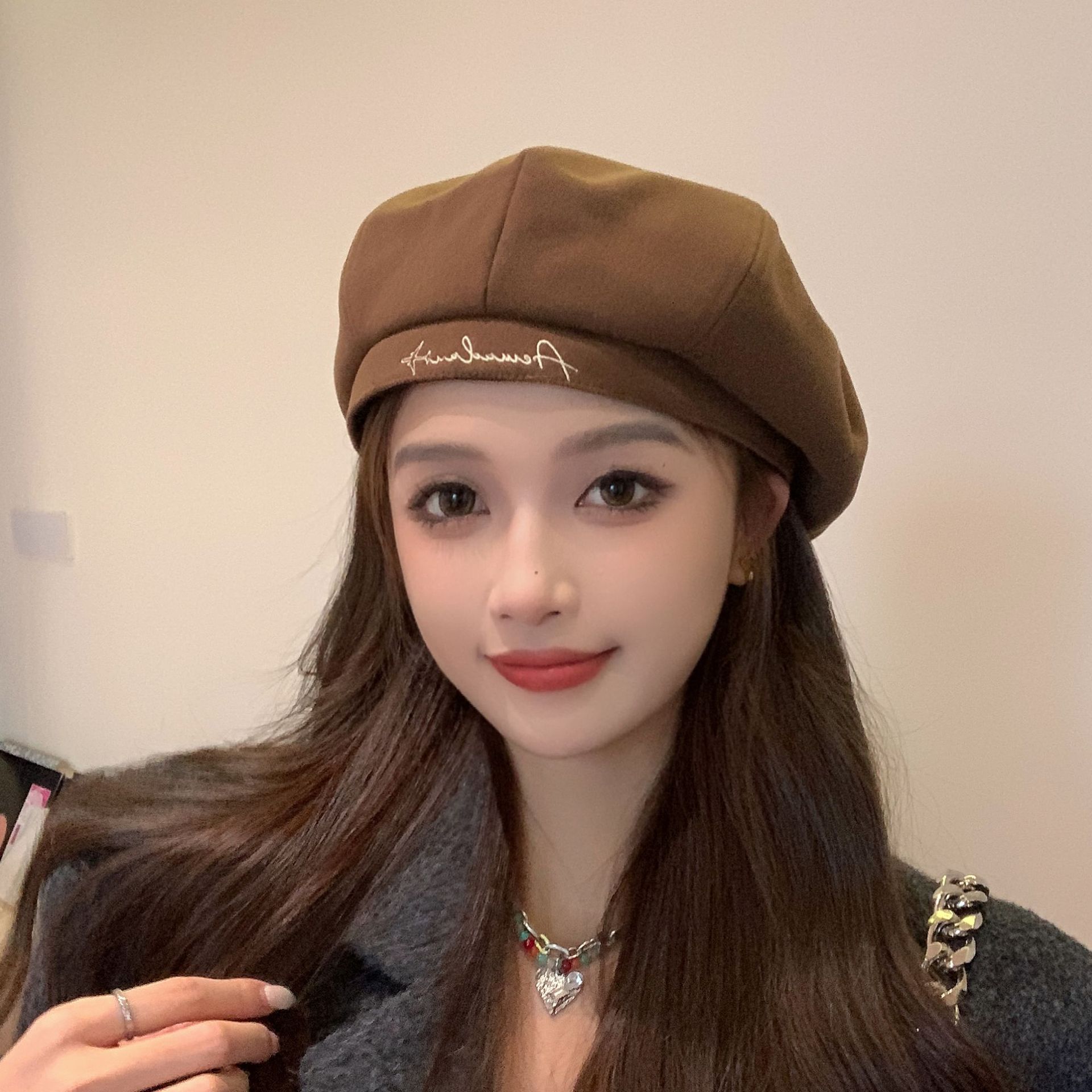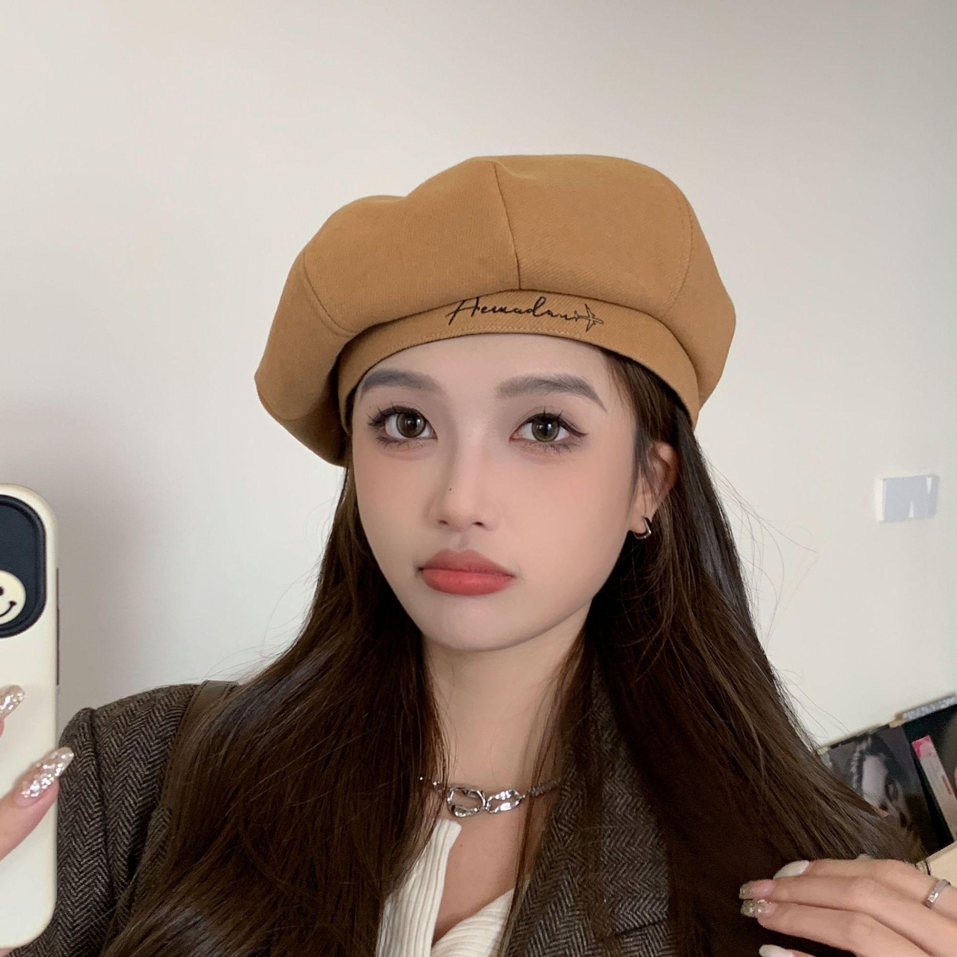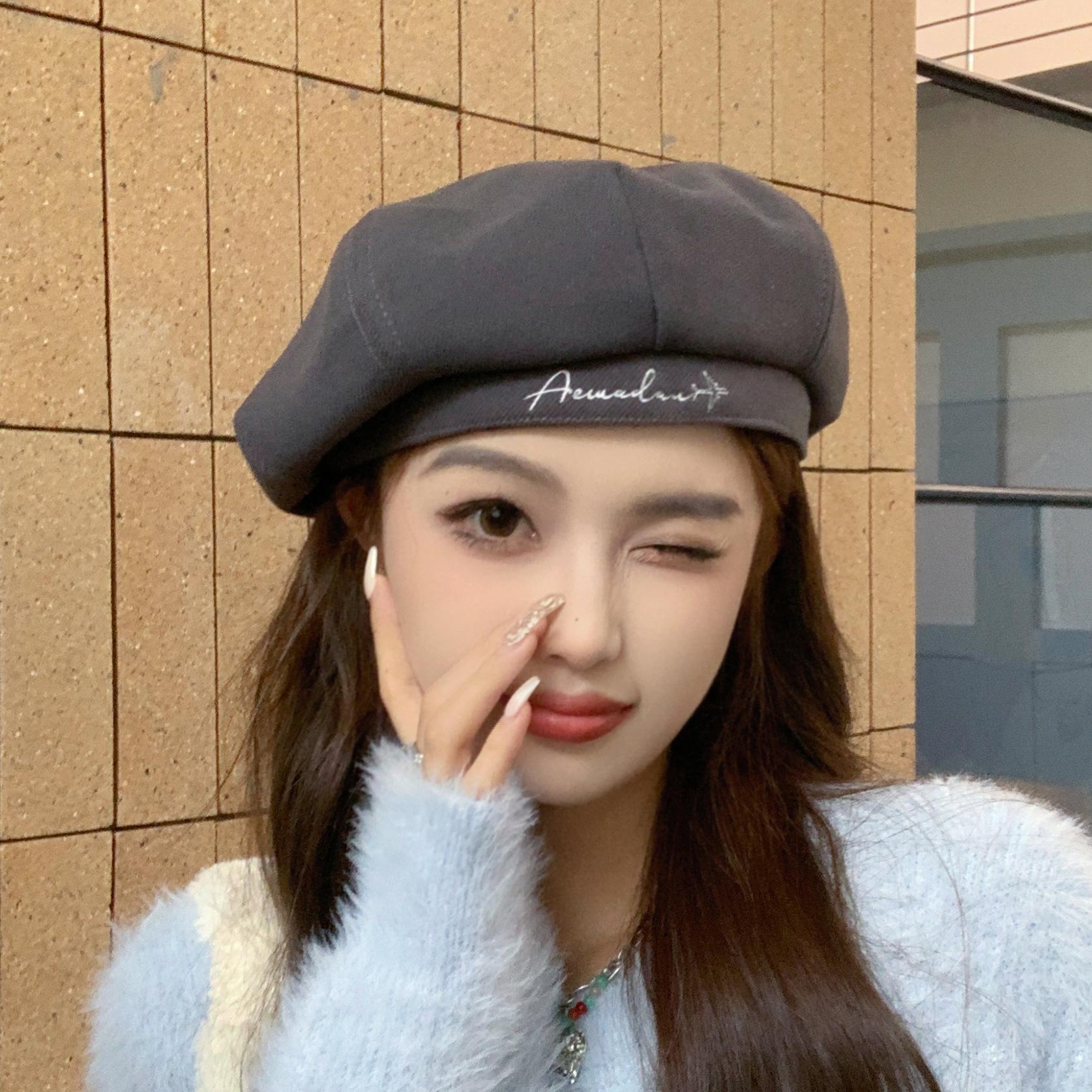 Boina de lana bordada con letras de estilo japonés para mujer, gorro de pintor informal, combinable con todo, elegante, para invierno