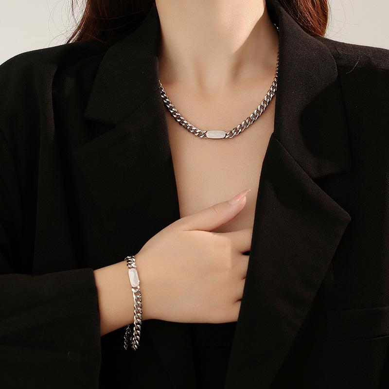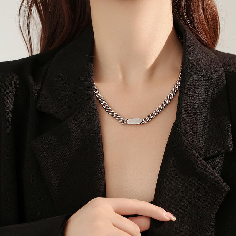 Collares Transfronterizos de Acero de Titanio que No se Desvanecen, Joyería Europea y Americana de Acero Inoxidable para Mujer, Versátiles Accesorios de Collar Cubano, de Alta Gama