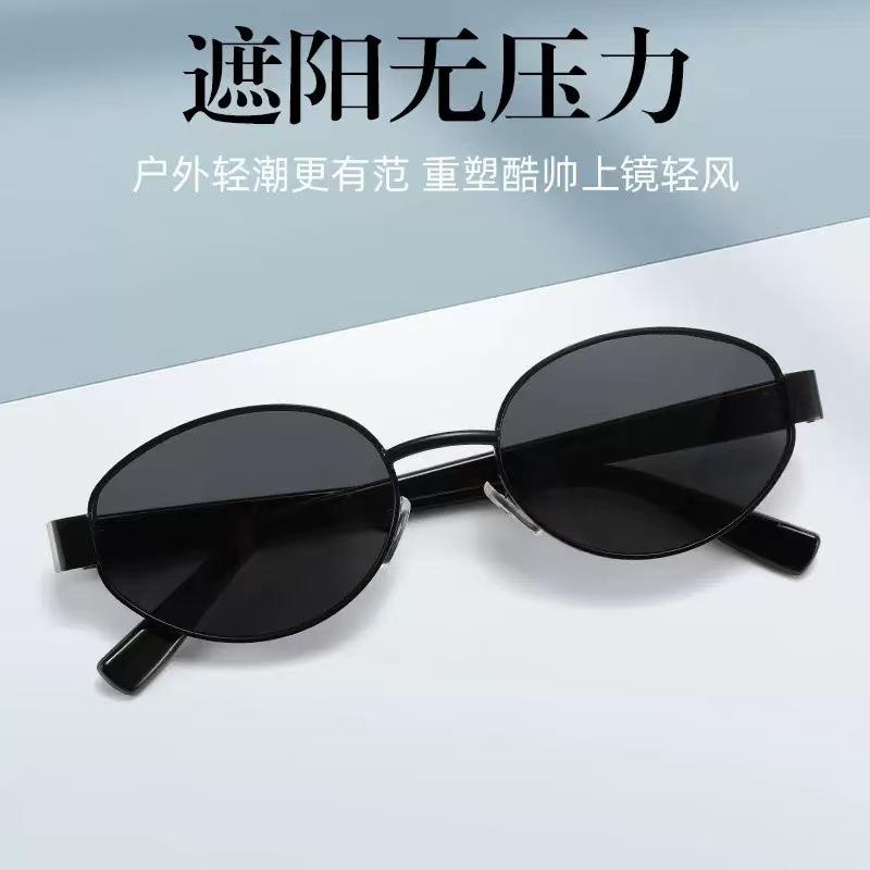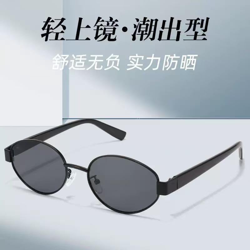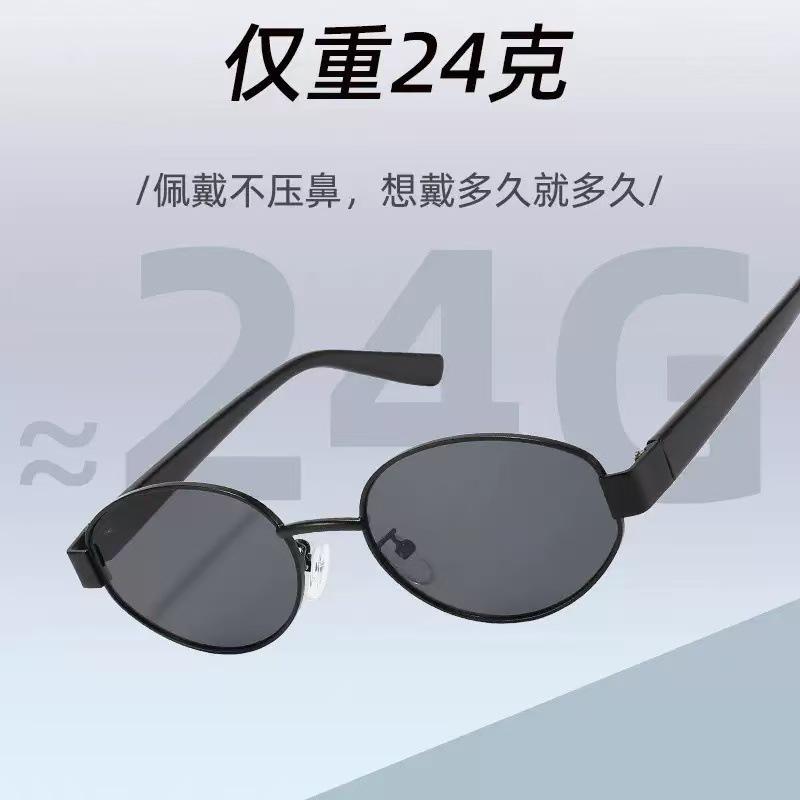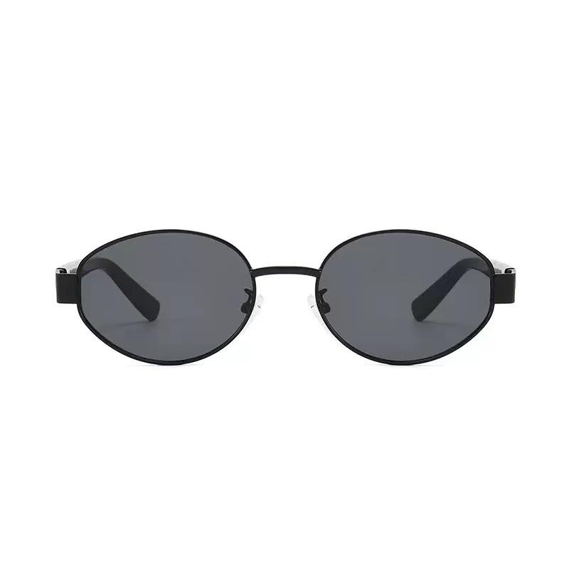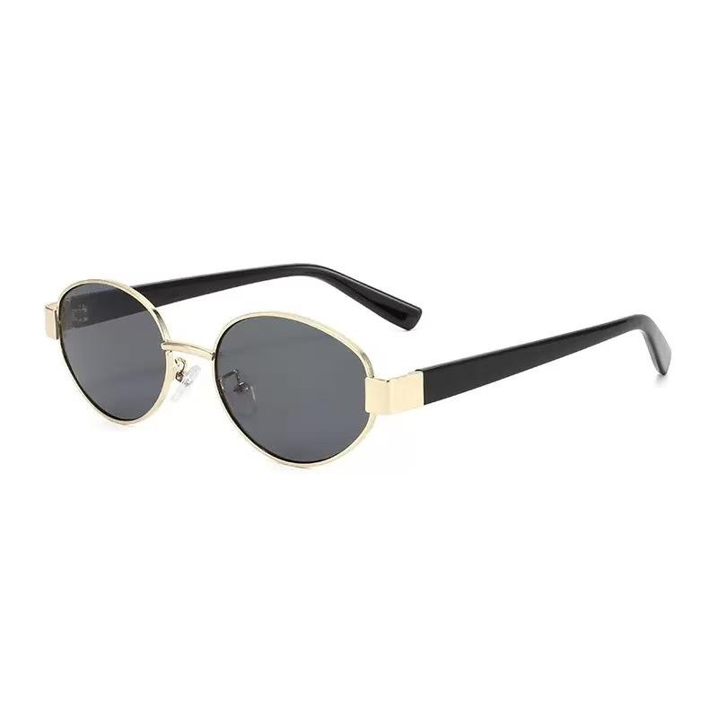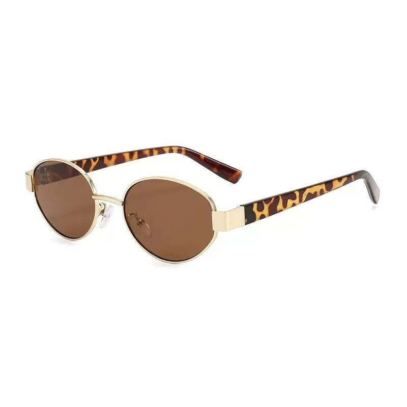 2025 nuevas gafas de sol de metal con montura pequeña ovalada, gafas de sol europeas y americanas retro de alto sentido transfronterizo para mujer