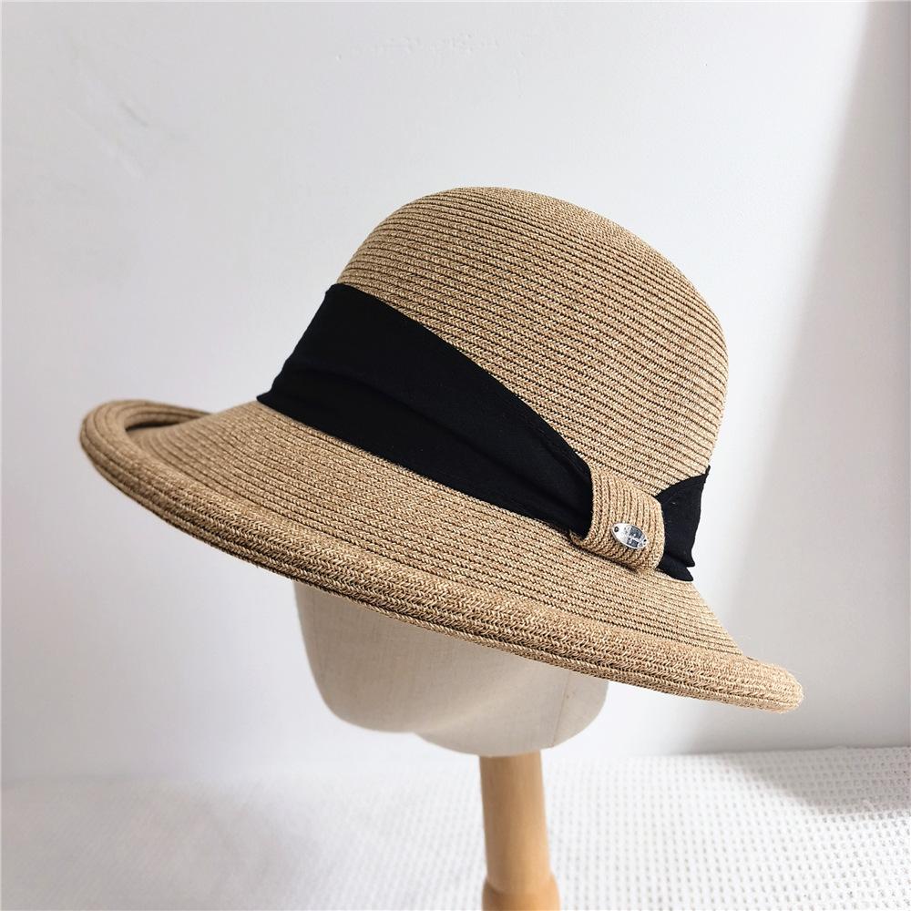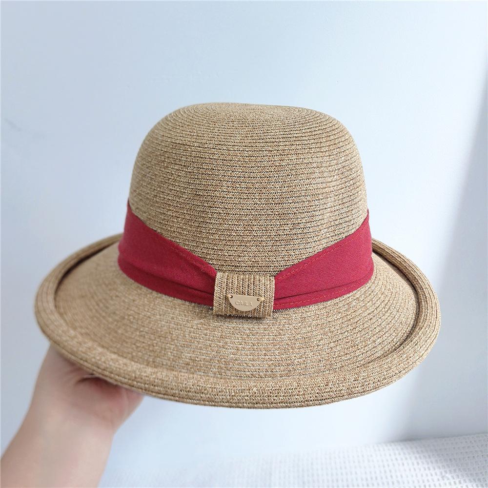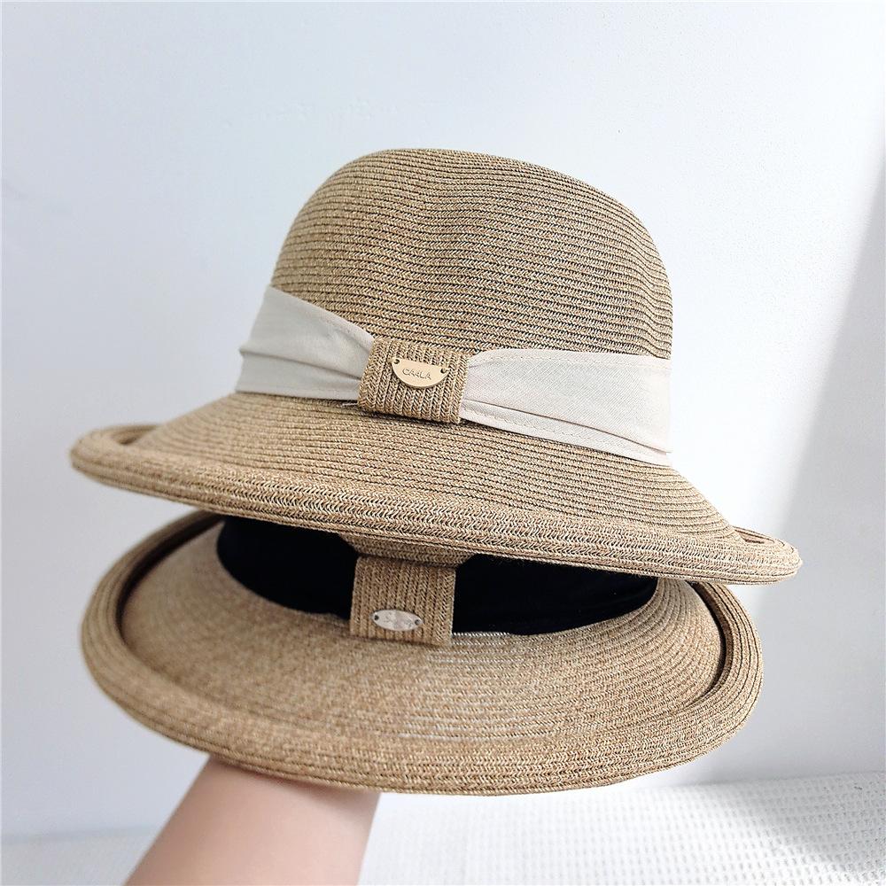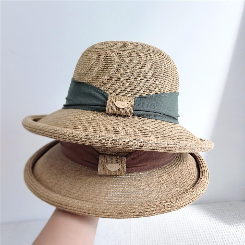 Sombrero de paja estilo vacaciones para mujer, nuevo sombrero pequeño enrollable estilo francés de 2025, ideal para viajes al aire libre y protección solar.