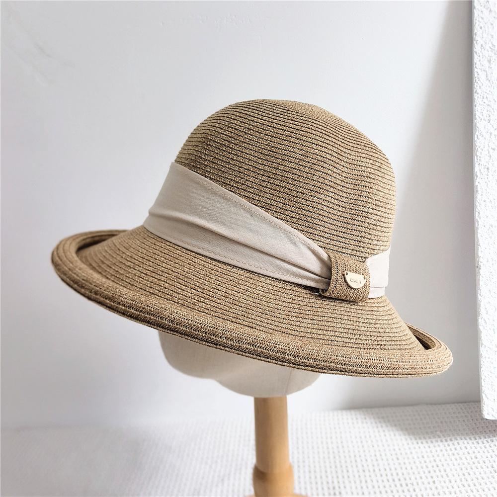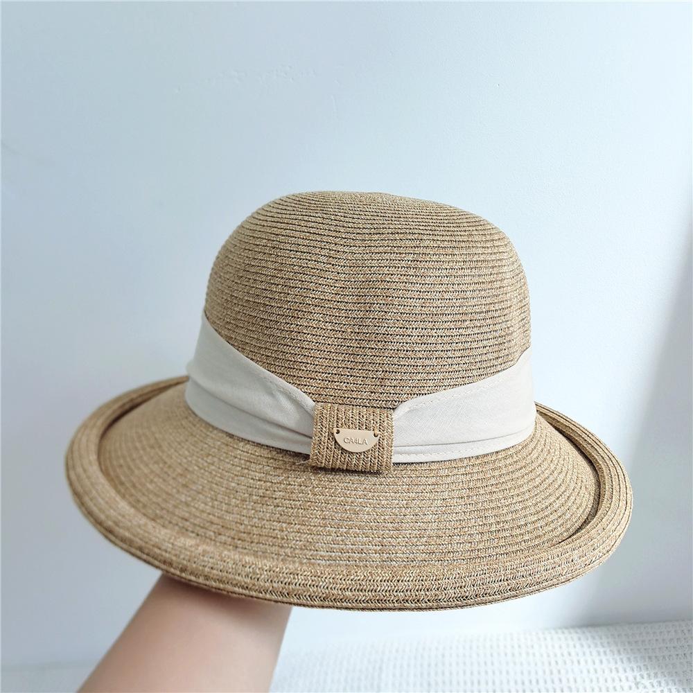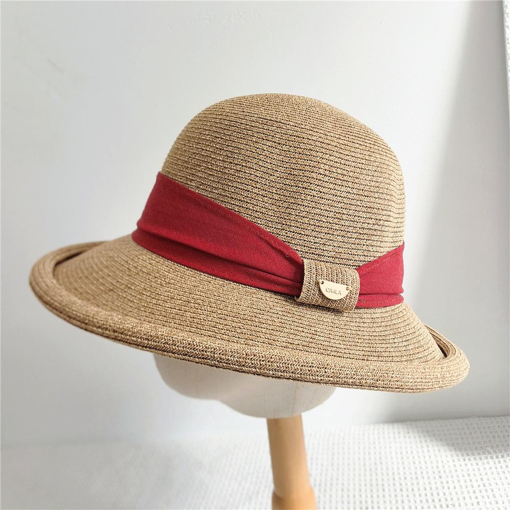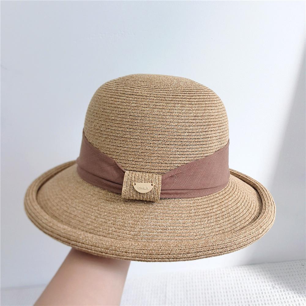 Sombrero de paja estilo vacaciones para mujer, nuevo sombrero pequeño enrollable estilo francés de 2025, ideal para viajes al aire libre y protección solar.
