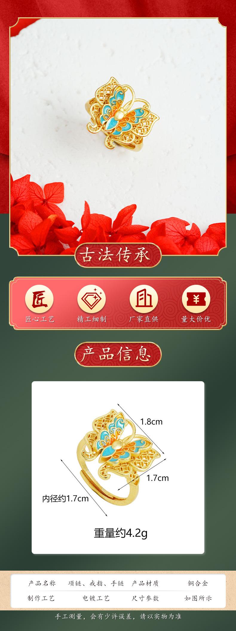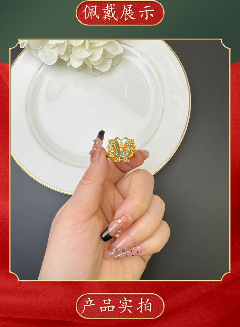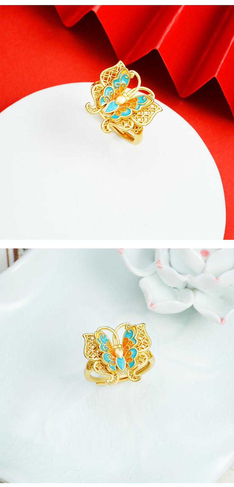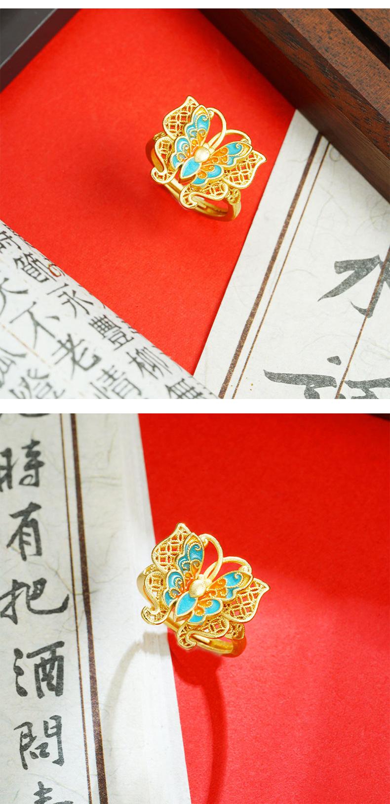 Anillo vintage de oro arena de Vietnam viento de corte gota de aceite hueco mariposa de seda boca viva anillo ajustable fabricantes de joyería